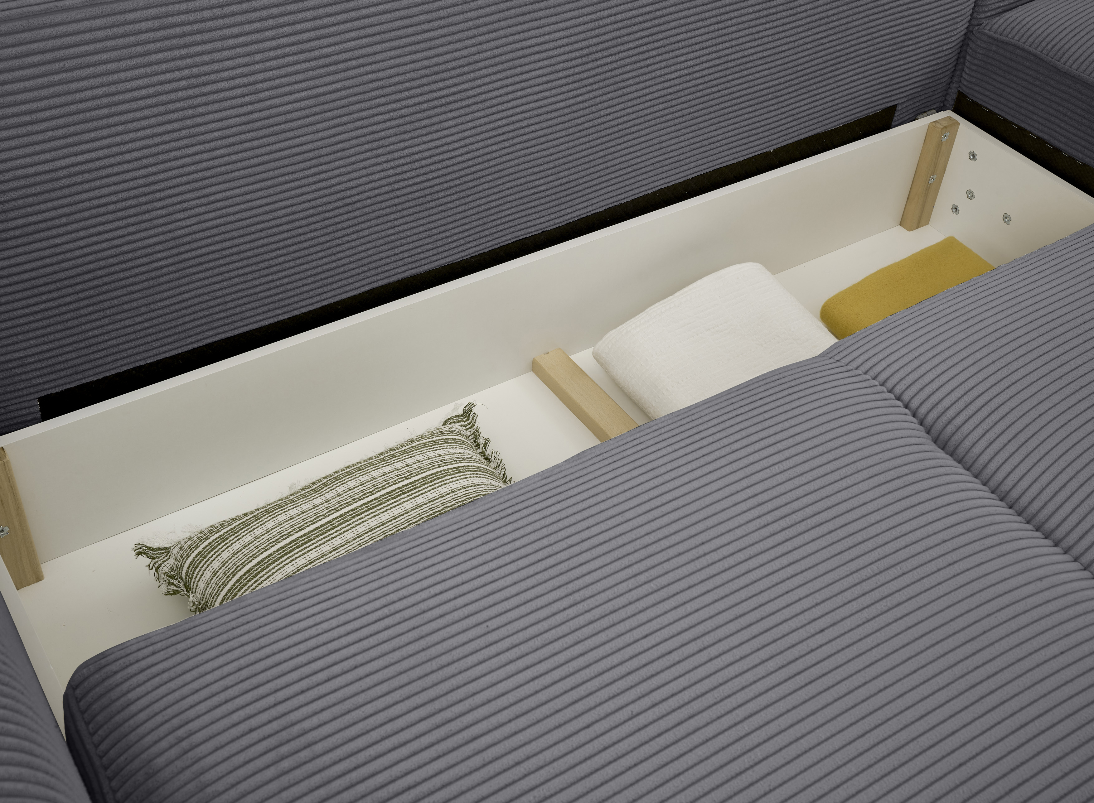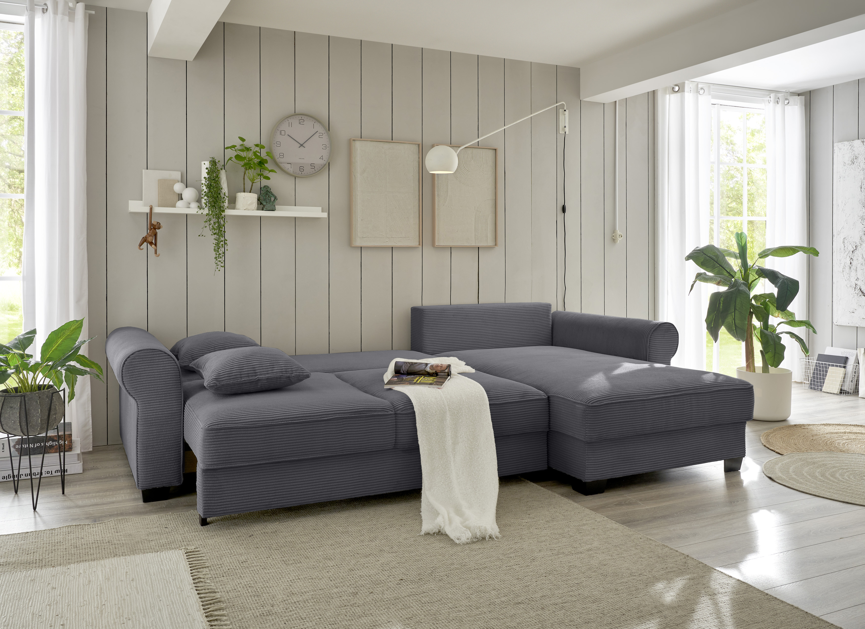 Equipement canapés: | Dos habillé, Méridienne à droite ou à gauche, incl. coffre de lit, incl. coussins |
