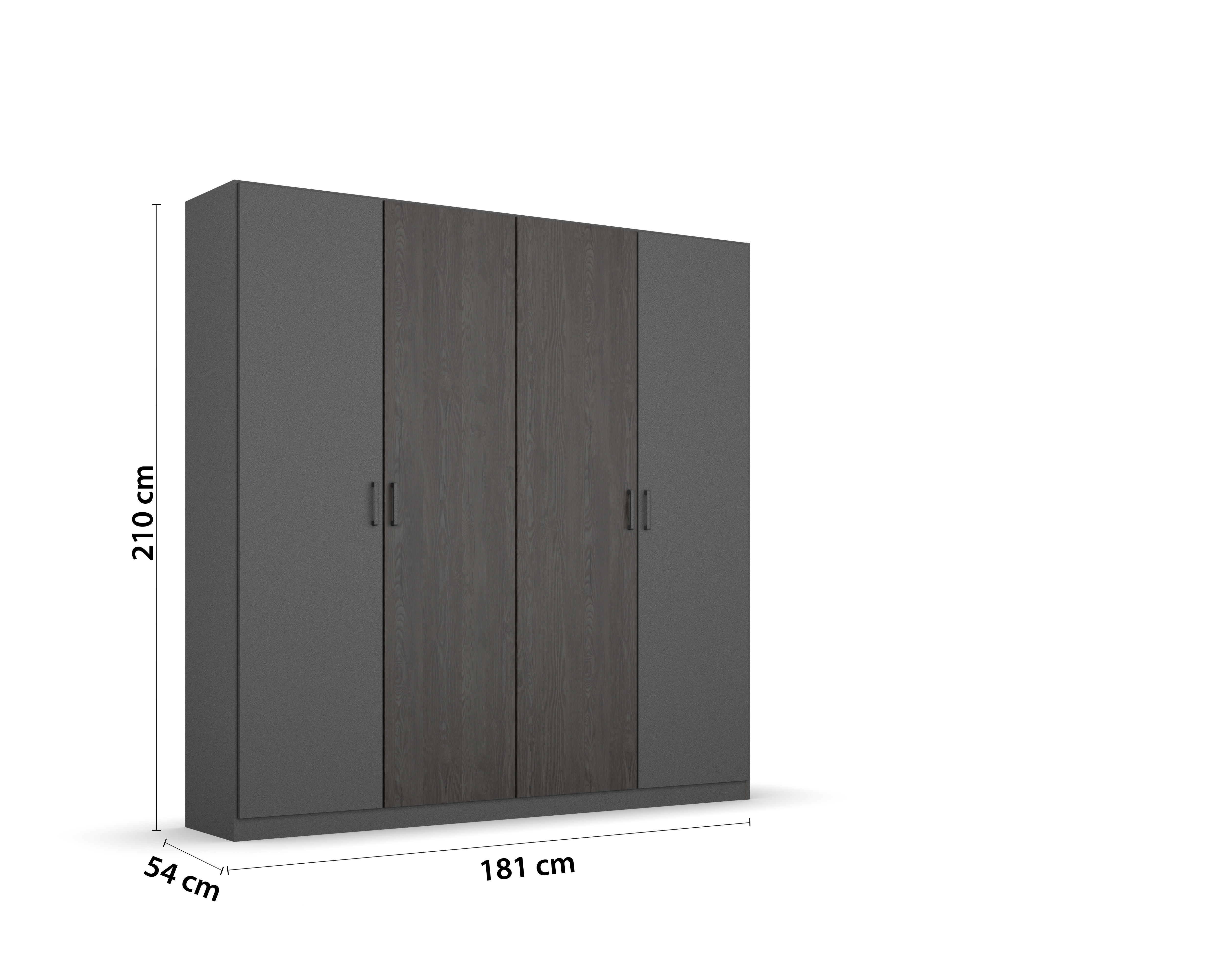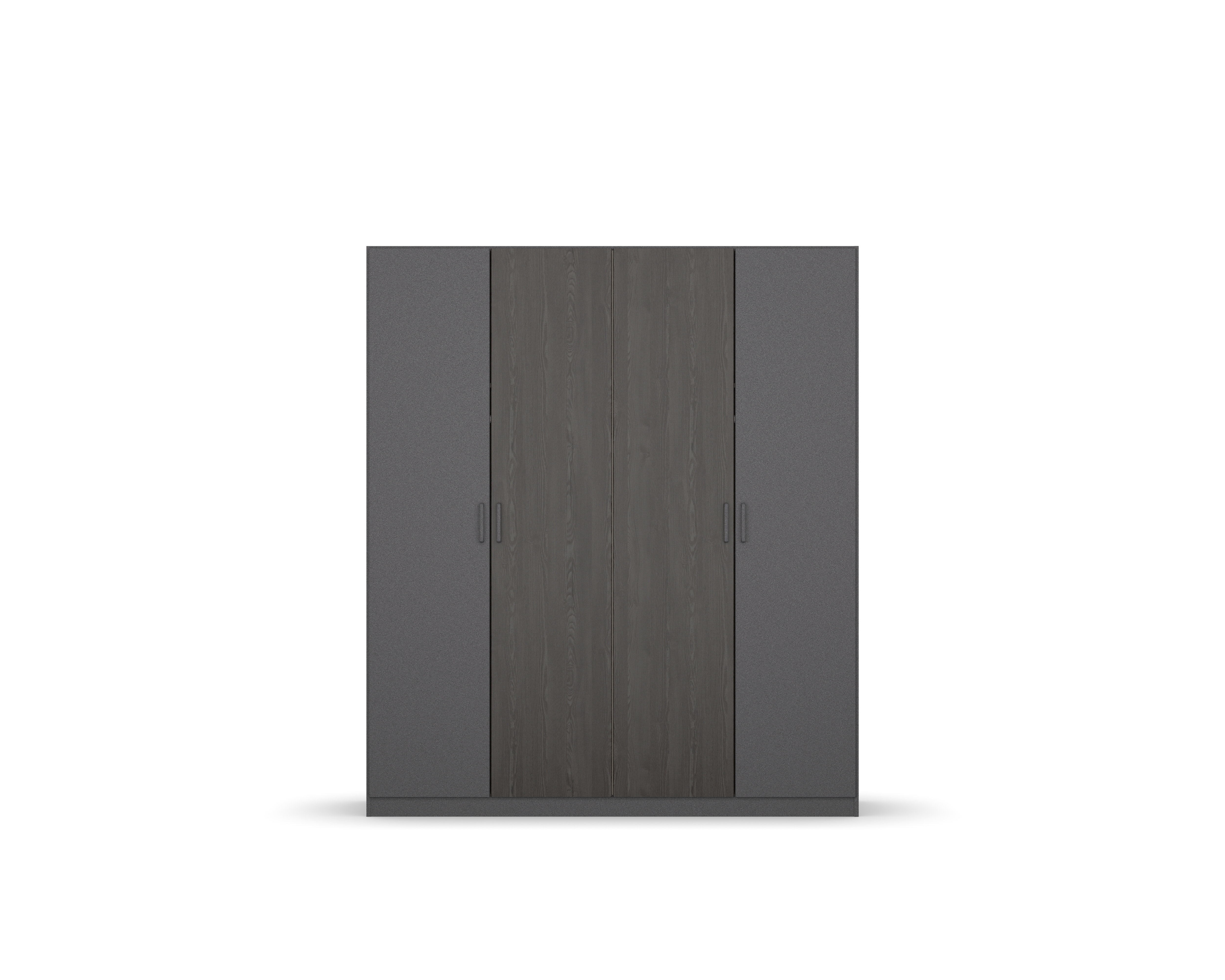Façade et caisson : ton gris métallisé avec contrastes décor chêne noir