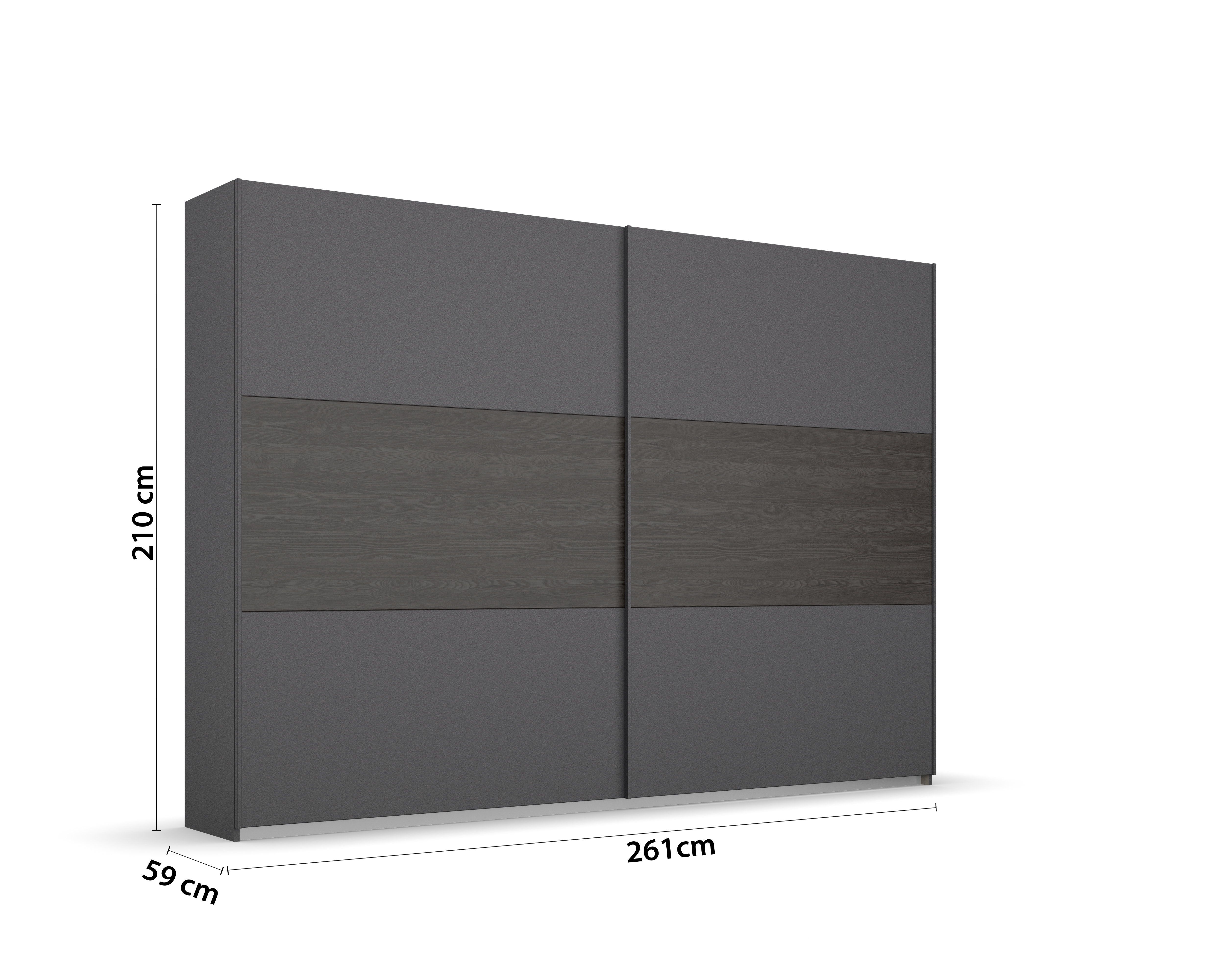 Façade et caisson : ton gris métallisé avec contrastes décor chêne noir