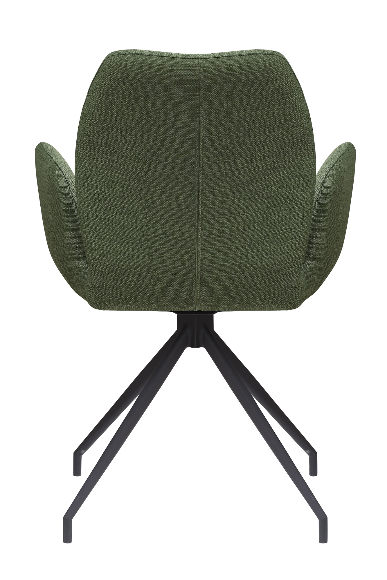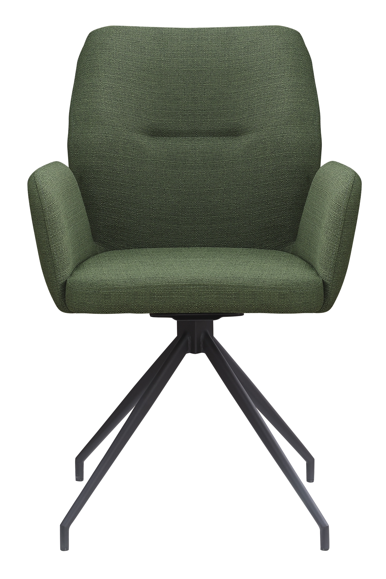 Un modèle qui séduit par son aspect tendance et l'excellente qualité des finitions : grâce à son design moderne, la chaise à accoudoirs pivotante à 180° s'intégrera facilement dans votre intérieur. Elle peut en effet s'utiliser de façon polyvalente comme chaise de salle à manger, pour la coiffeuse ou le télétravail. La chaise rembourrée séduit par ses formes tendance avec un dossier ergonomique pourvu d'une couture décorative, une assise droite et des accoudoirs légèrement évasés. Elle dispose d'un garnissage agréable pour un excellent confort d'assise. Le siège est revêtu d'un élégant tissu texturé robuste proposé dans de nombreux coloris unis au choix. Le piètement design tout en finesse en métal finition époxy est un autre point fort de cette chaise. Grâce au mécanisme pivotant intégré, le fauteuil permet une assise dynamique.