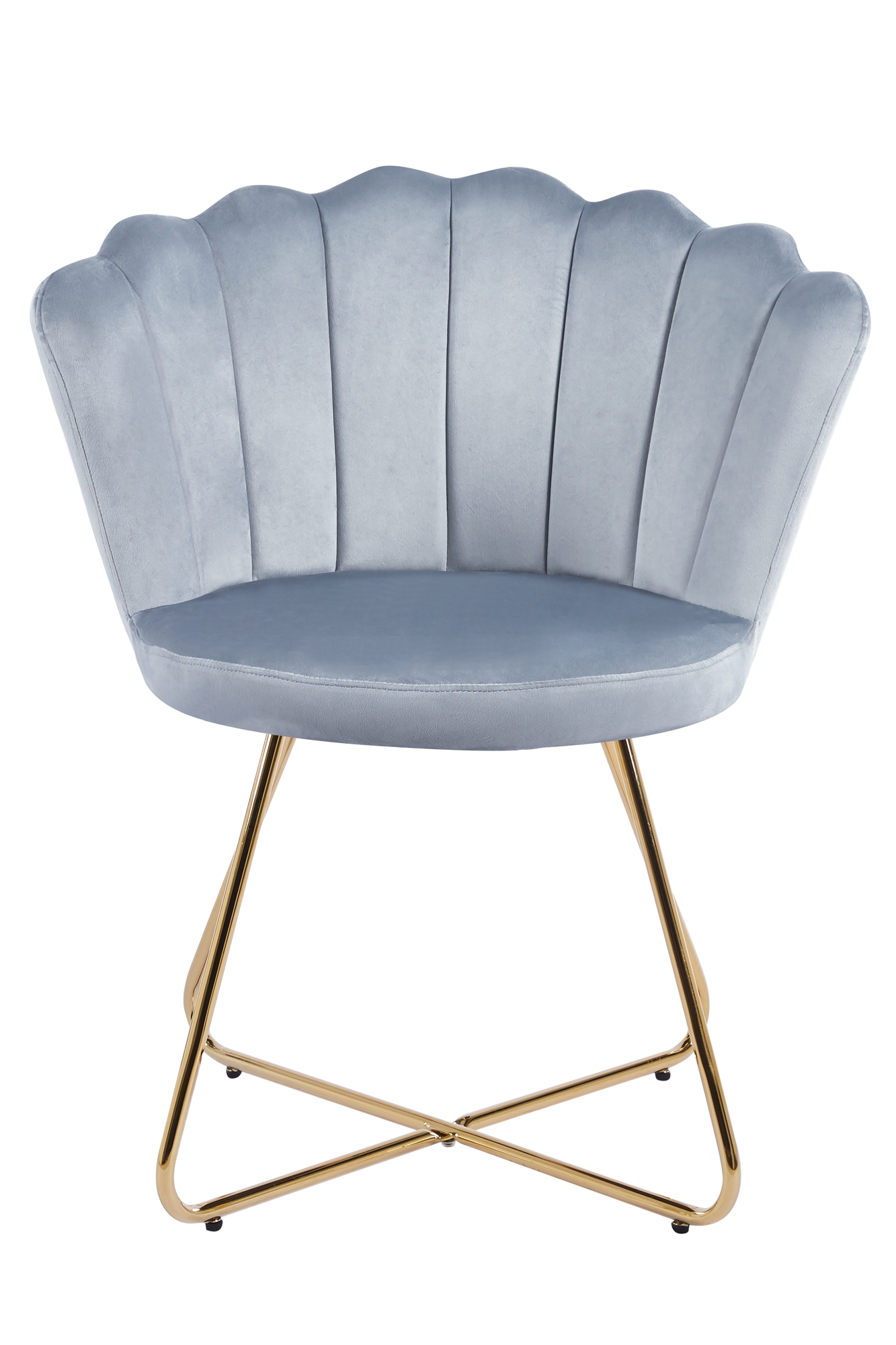 Fuyez le quotidien et profitez d'une petite pause. Ce lot de chaises tendance dans un design coquillage séduit par son revêtement en velours et par son assise et son dossier arrondis. Le piètement au design croisé en métal doré garantit une excellente stabilité tout en offrant un superbe contraste avec le revêtement de la chaise. Grâce au rembourrage de l'assise et du dossier et à la forme stylée de ce fauteuil, vous profiterez d'un confort d'assise exceptionnel. Sa forme arrondie lui donne un look tout en douceur. La chaise peut être positionnée dans le séjour en guise de chaise de salle à manger ou servir de siège, par exemple, pour compléter une coiffeuse. Peu importe où vous la placerez, cette chaise coquillage attirera tous les regards dans votre intérieur.