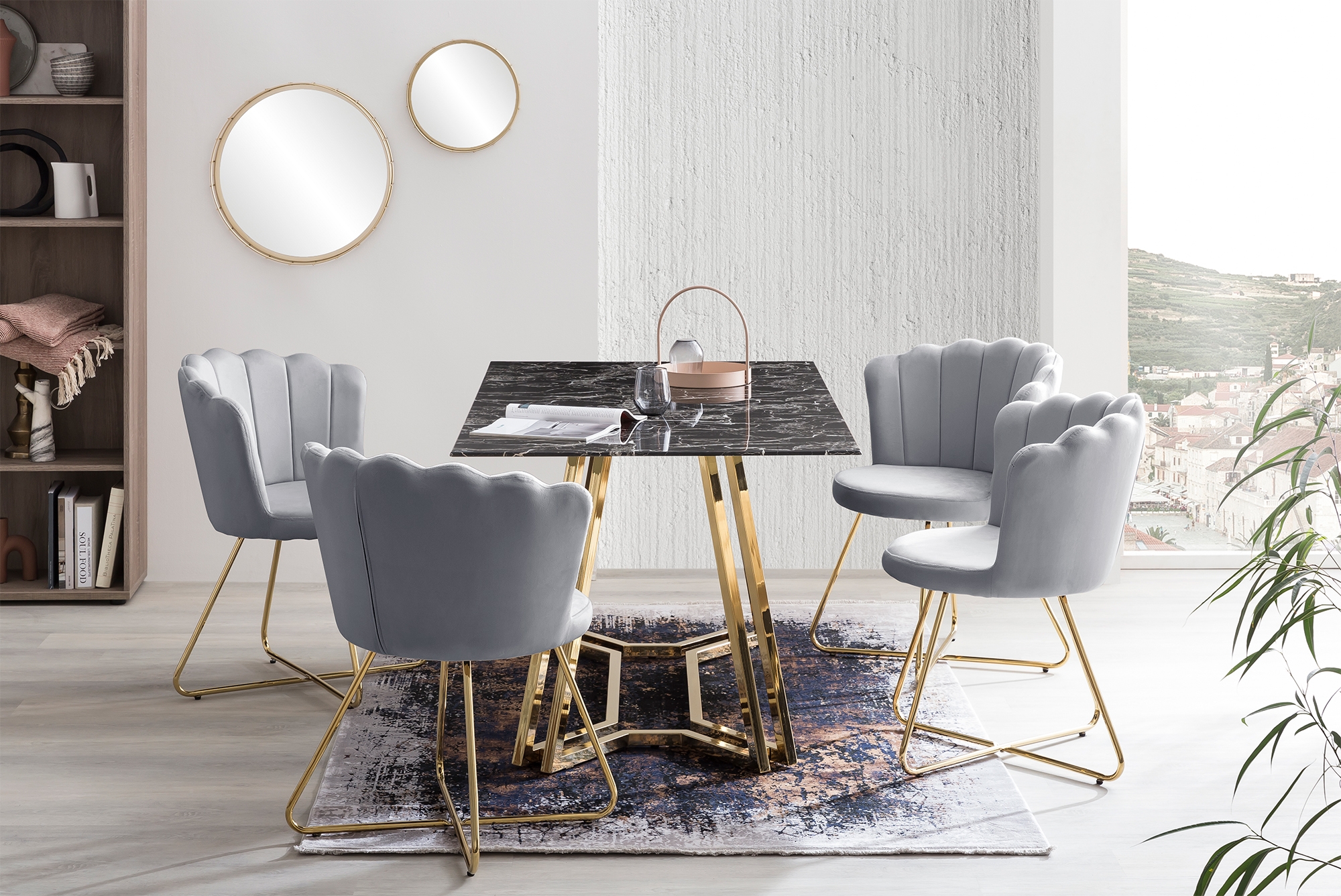 - Le piètement croisé en chrome doré garantit un look tout en finesse