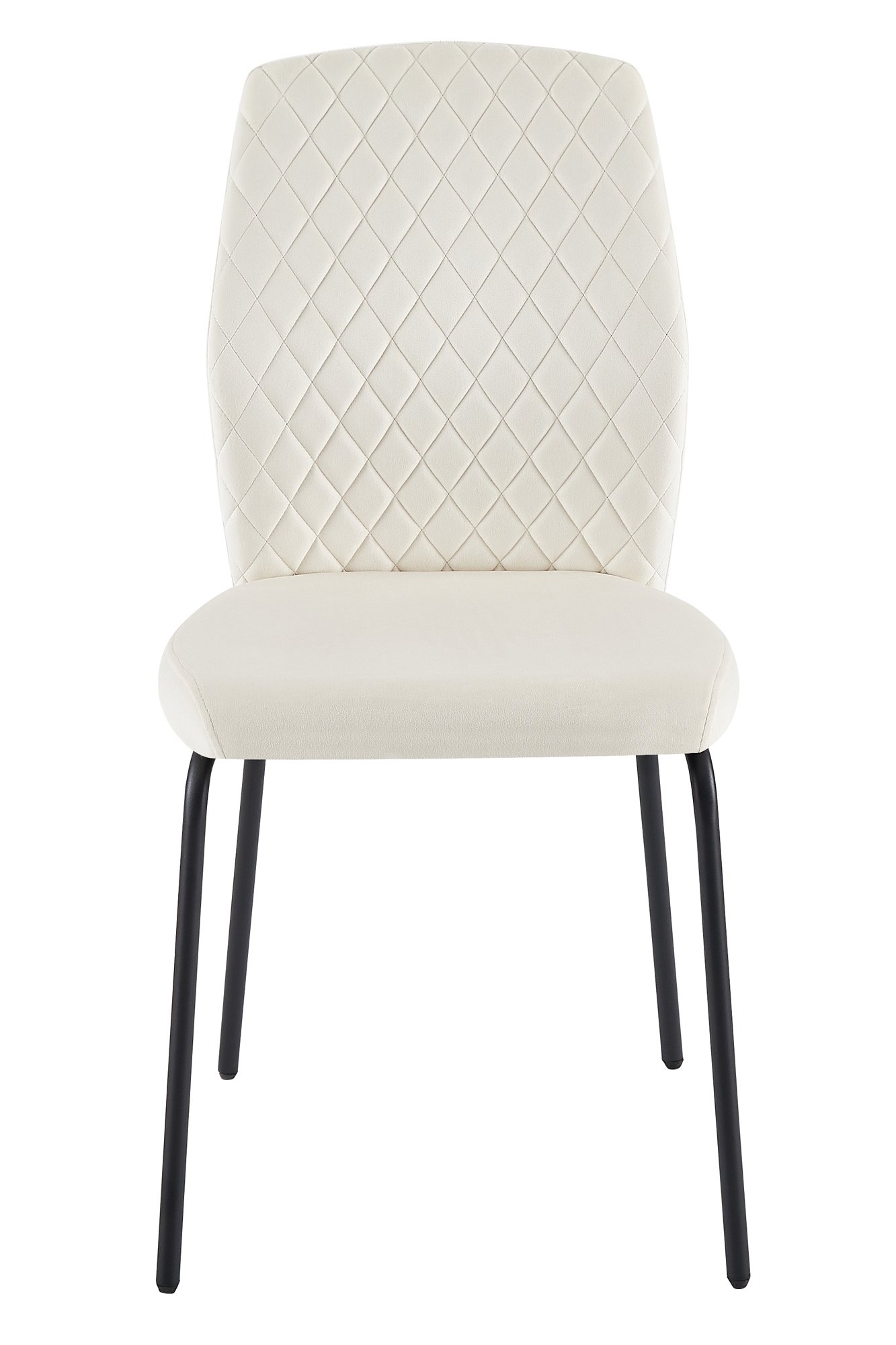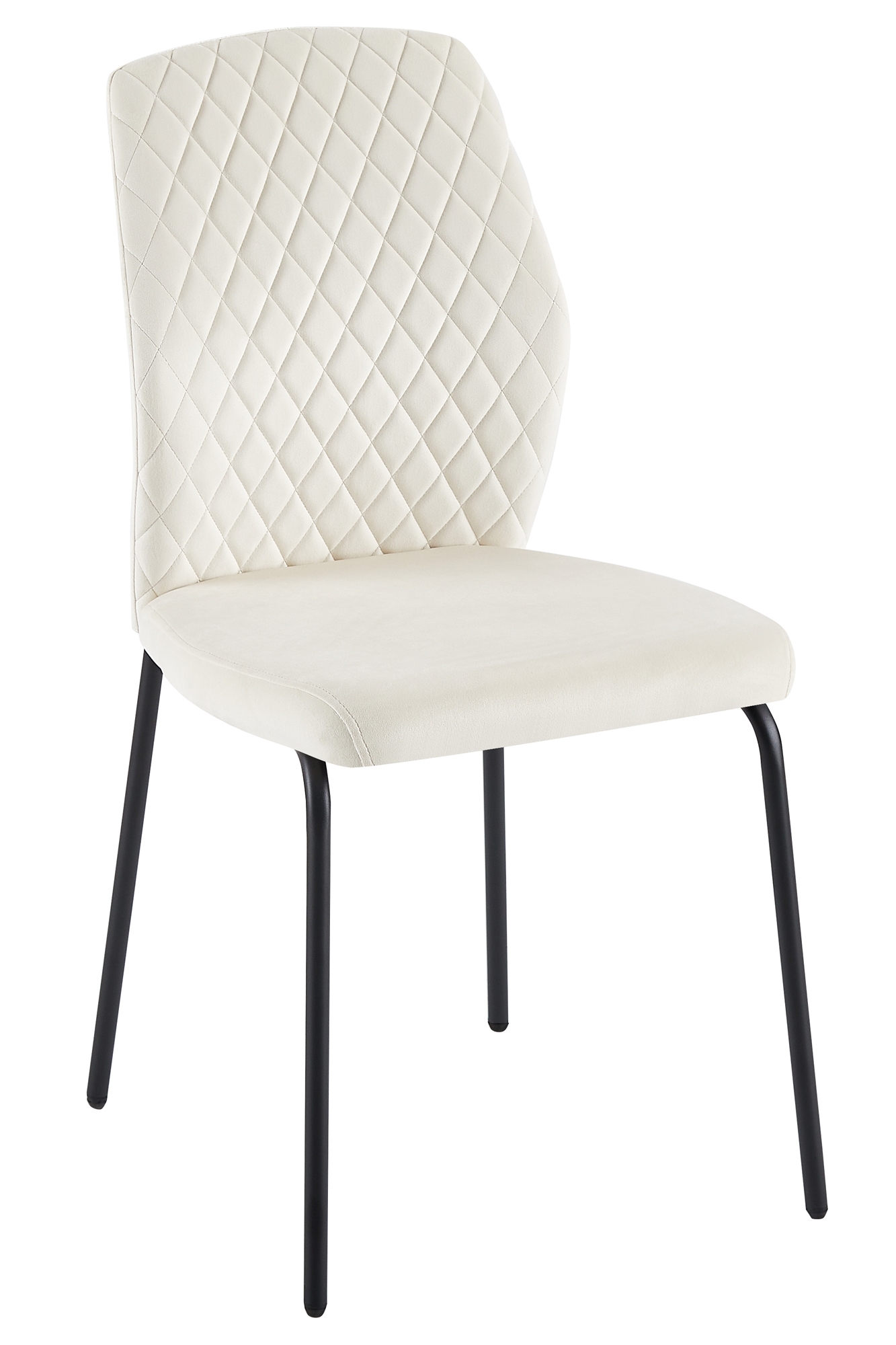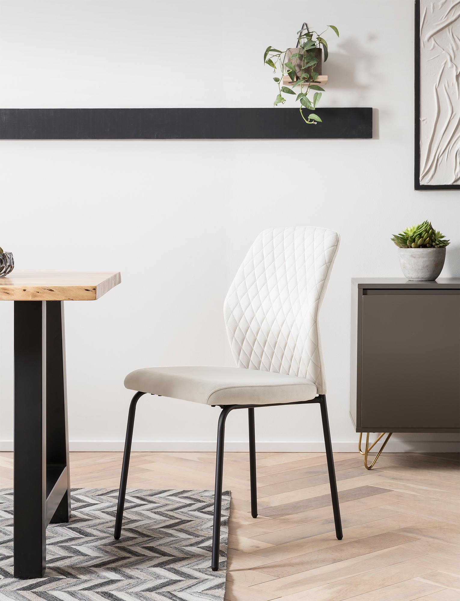 Cette chaise de salle à manger dans un design minimaliste sera du plus bel effet absolument partout. Le dossier matelassé avec surpiqûres soignées en forme de losanges confère à la chaise un charme particulier qui attire le regard. Le dossier légèrement incliné ne rend pas seulement cette chaise intéressante visuellement mais aussi en matière de confort d’assise. La chaise est revêtue d’un tissu aspect velours glamour et dispose d’un piètement 4 pieds stable d’aspect classique. Ce modèle est proposé par lot de 2 chaises qui facilitent l’intégration de différents coloris autour de la table dans un look « Mix & Match ». Avec cette chaise, vous ne pouvez pas vous tromper, que ce soit dans la salle à manger, comme siège de bureau ou pour la coiffeuse.