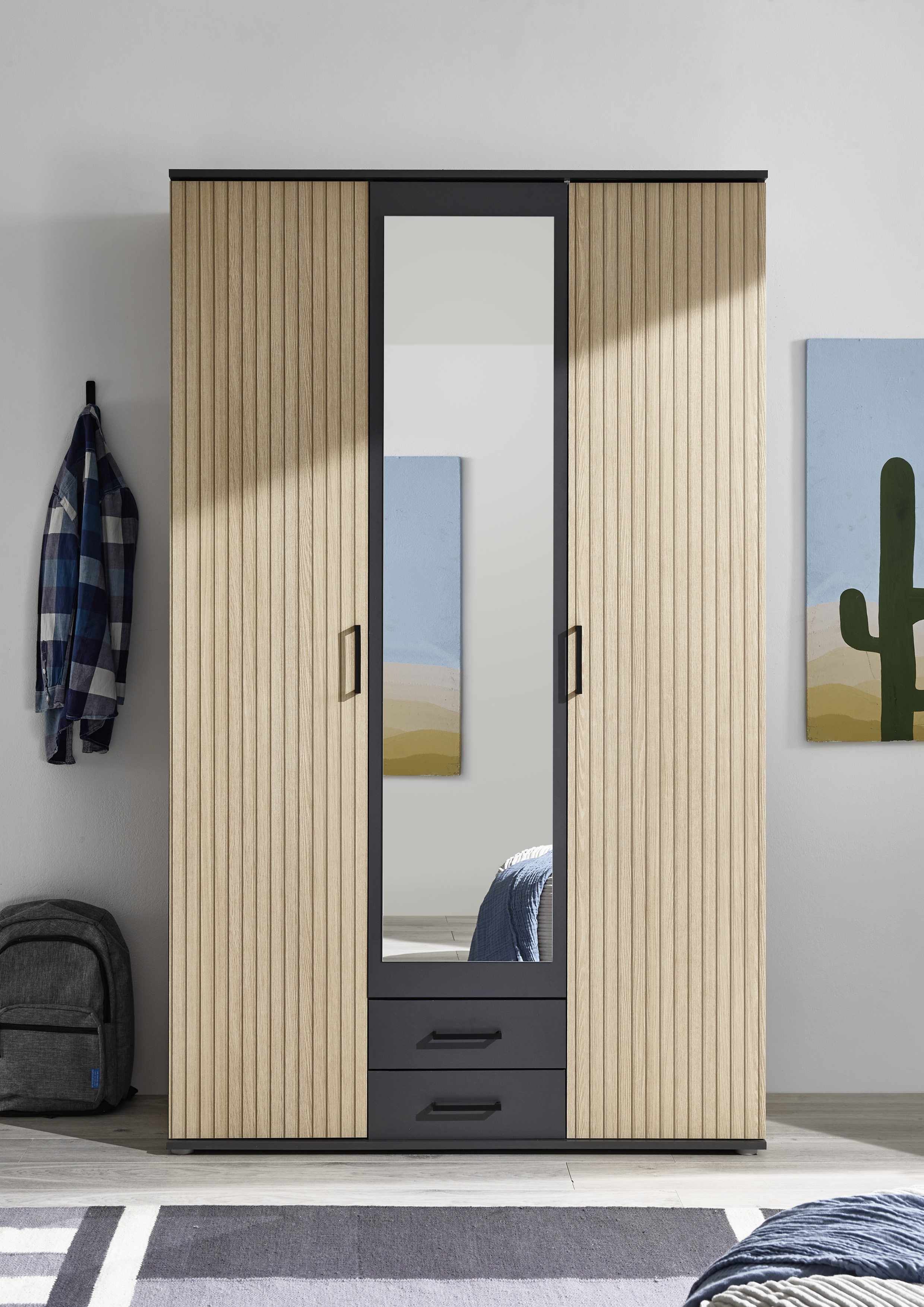 Ton graphite avec façade de porte décor lamelles de chêne, revêtement mélaminé / miroir