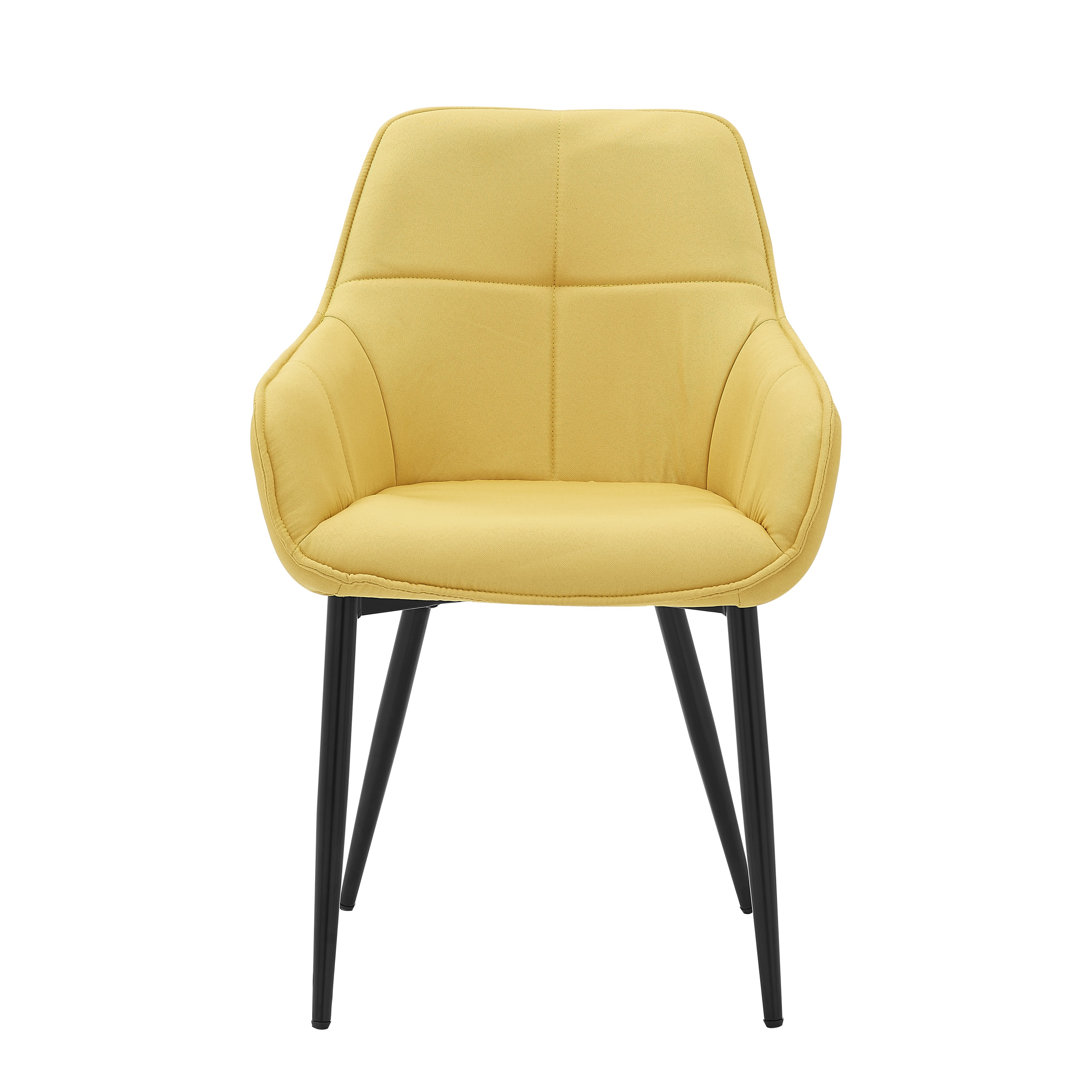 Cette chaise à accoudoirs tendance rend le séjour encore plus accueillant. Un tissu en lin de qualité ton jaune a été utilisé pour le revêtement. Le dossier, les accoudoirs, mais aussi le garnissage confortable, permettent de rester longtemps dans une position assise agréable. Le piètement en acier n'offre pas seulement stabilité et sécurité : il s'harmonise également parfaitement avec le revêtement en lin. Pour prendre le repas du soir en famille, le café avec une amie ou pour le télétravail, vous allez adorer votre nouveau siège. Une attention particulière a été portée au dossier pourvu de surpiqûres. Vous pouvez également détourner cette chaise de son utilisation initiale et la positionner dans une autre pièce : elle y sera également du plus bel effet.