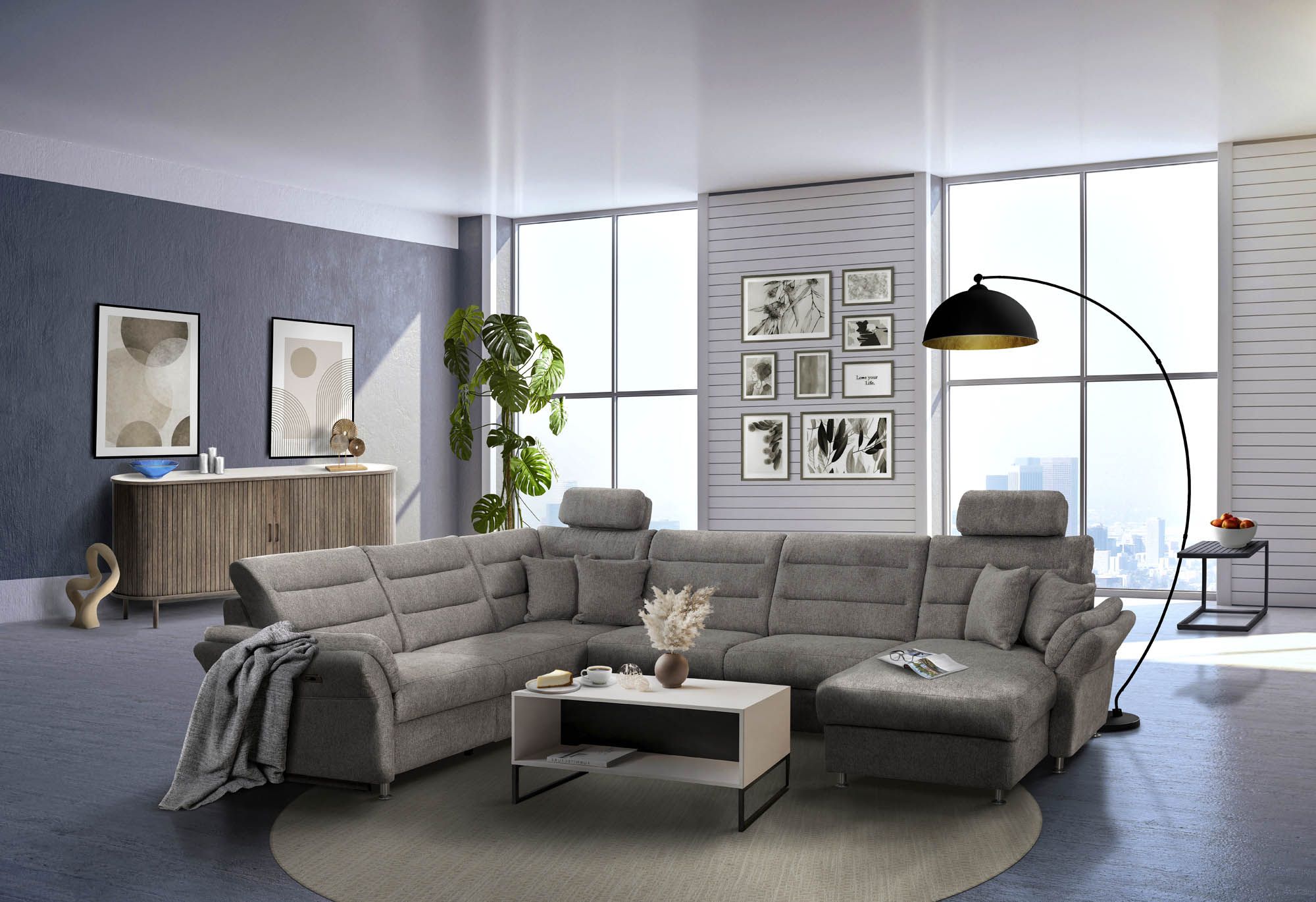L’appuie-tête peut être positionné à n’importe quel endroit ; il est assorti au canapé en U FORENO n° art. 532188.