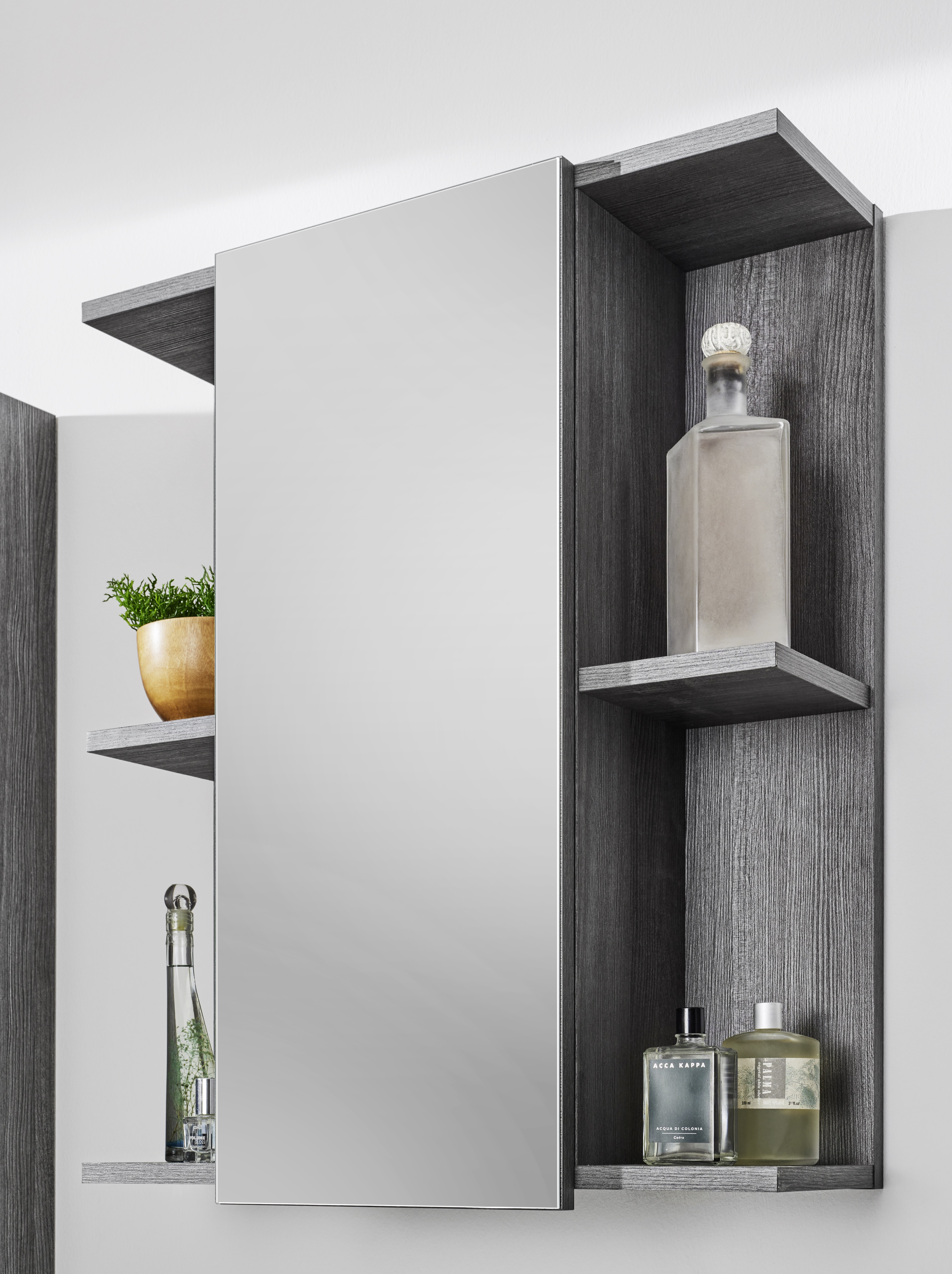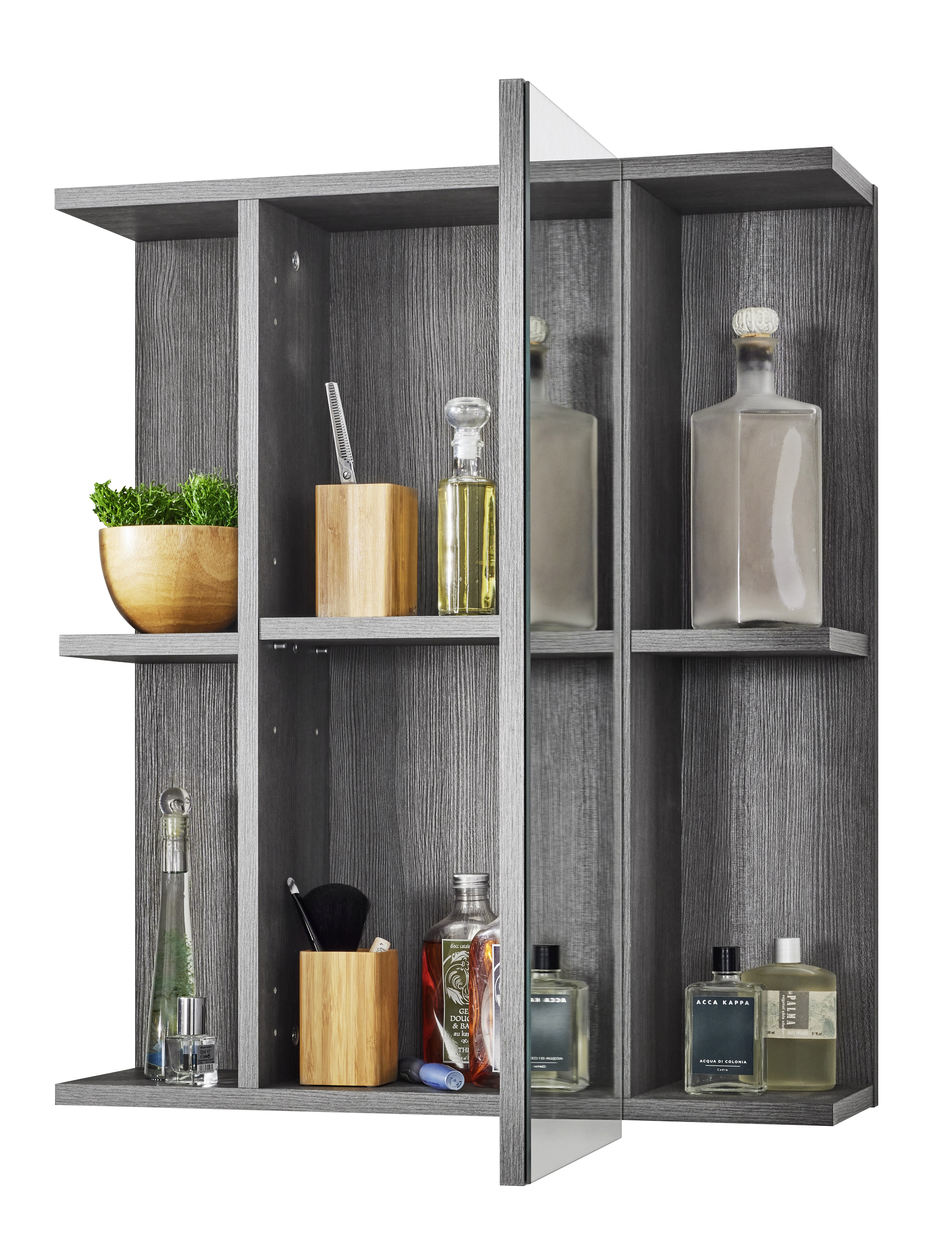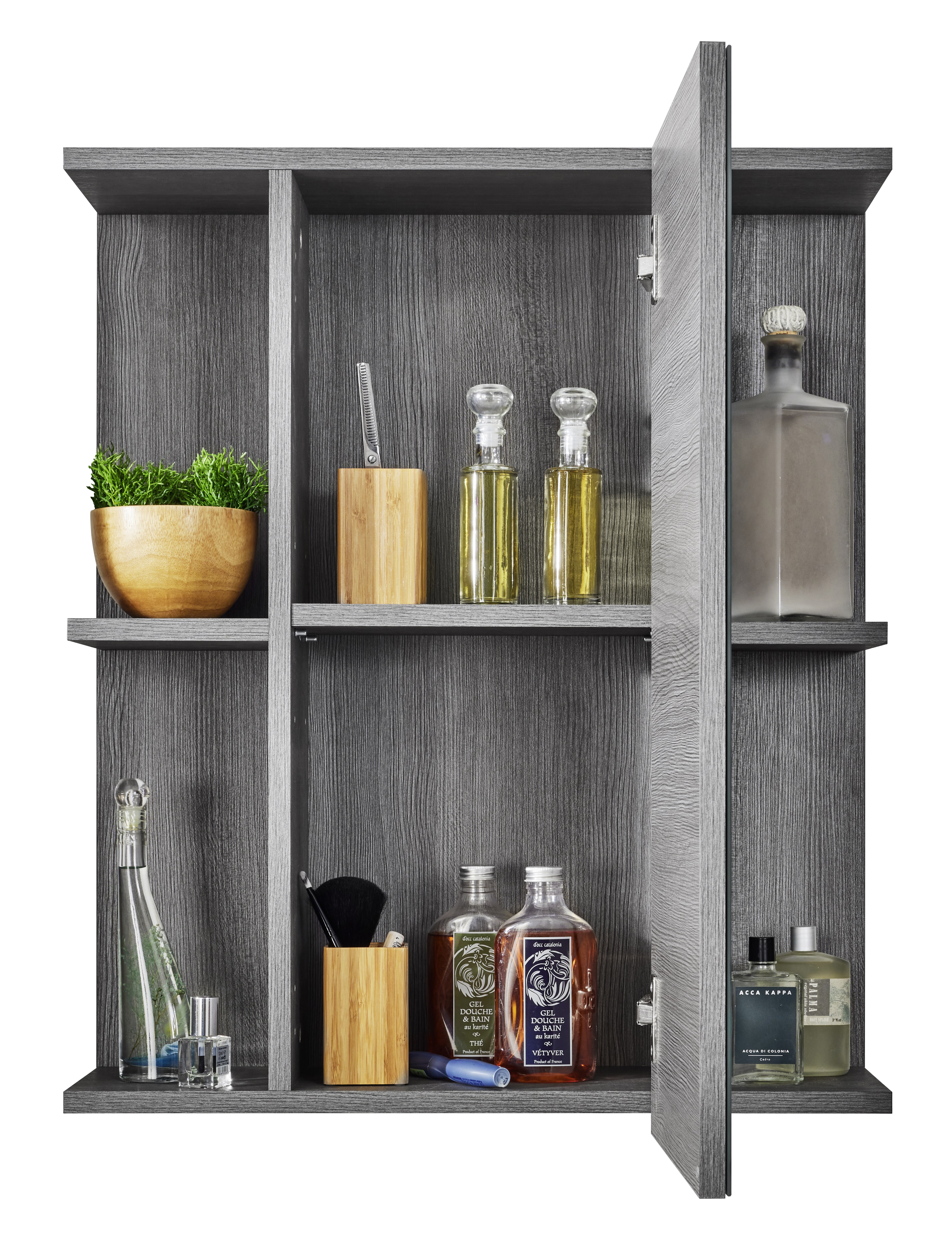 Cette armoire de toilette moderne en argent fumé allie un design élégant à une fonctionnalité pratique et constitue le complément idéal de toute salle de bains. Le corps et la façade en argent fumé lui confèrent un aspect élégant et intemporel, tandis que le miroir apporte une profondeur visuelle à la pièce. La porte miroir offre un confort d'utilisation au quotidien, tandis qu'une étagère et quatre compartiments ouverts offrent un espace de rangement suffisant pour les cosmétiques, les produits de soin et les accessoires de salle de bains. L'armoire à miroir est parfaite pour les concepts de salle de bains modernes et bien organisés.