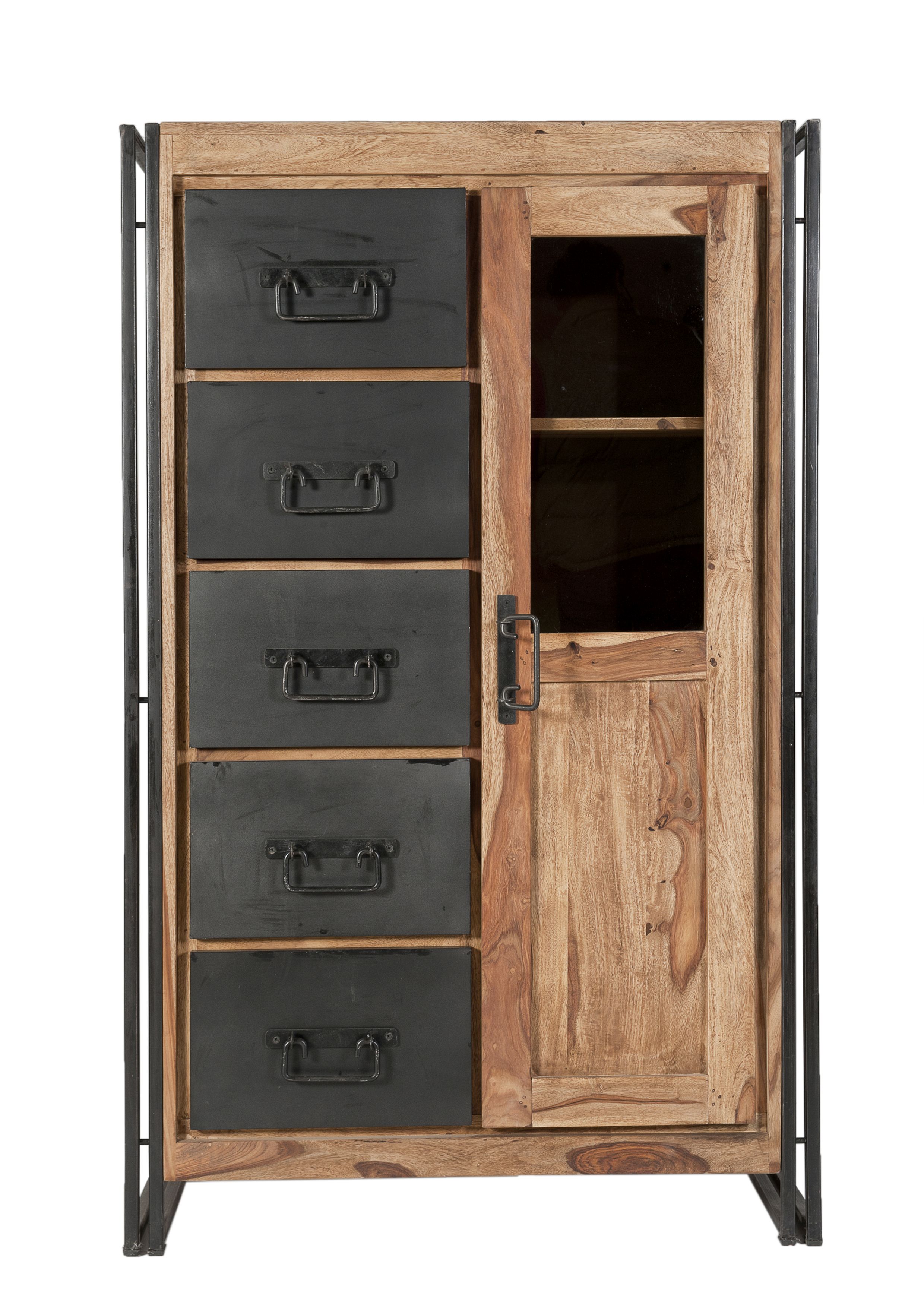Le métal et le bois sont patinés aspect vieilli ("used look"). La fabrication artisanale confère à ce meuble son caractère individuel.