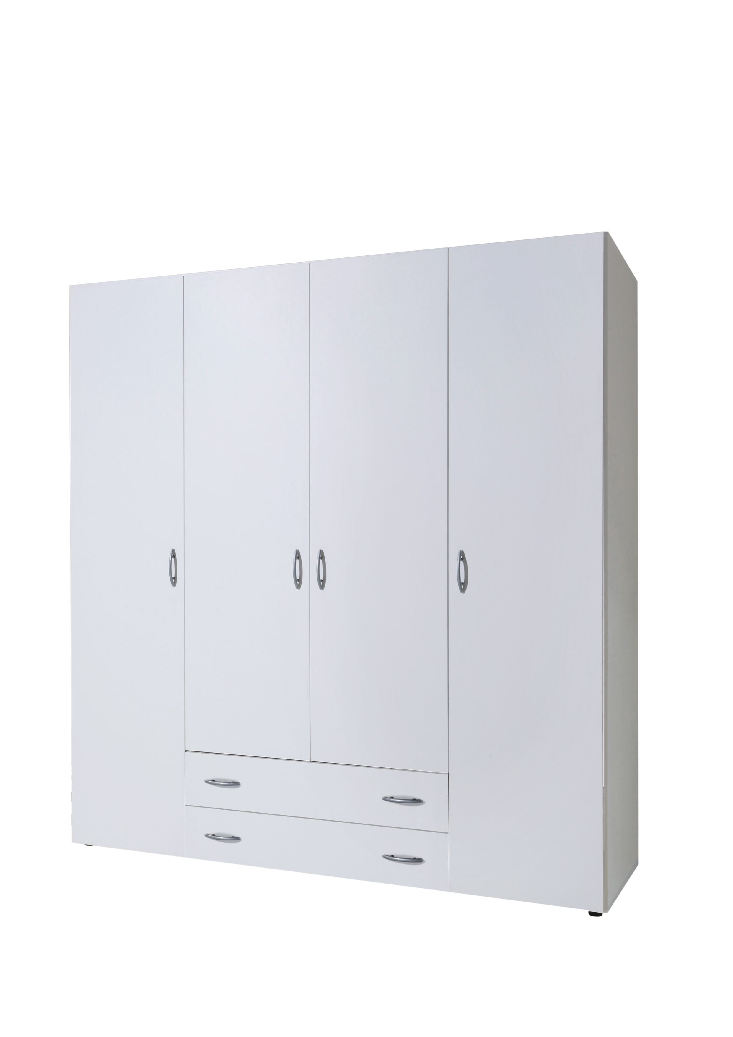 - SOBRIÉTÉ - L'armoire 4 portes ton blanc s'adapte parfaitement aux chambres à coucher minimalistes pour un espace de rangement sans fioritures.