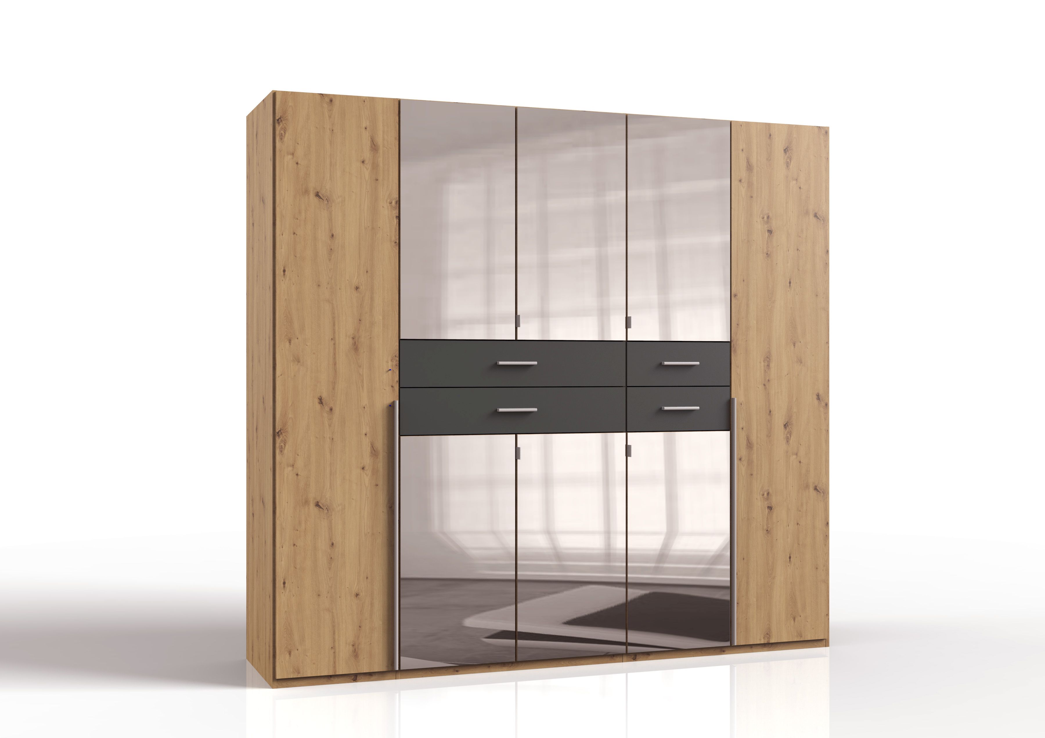 Caisson et façade : décor chêne Artisan et tiroirs ton graphite / miroir