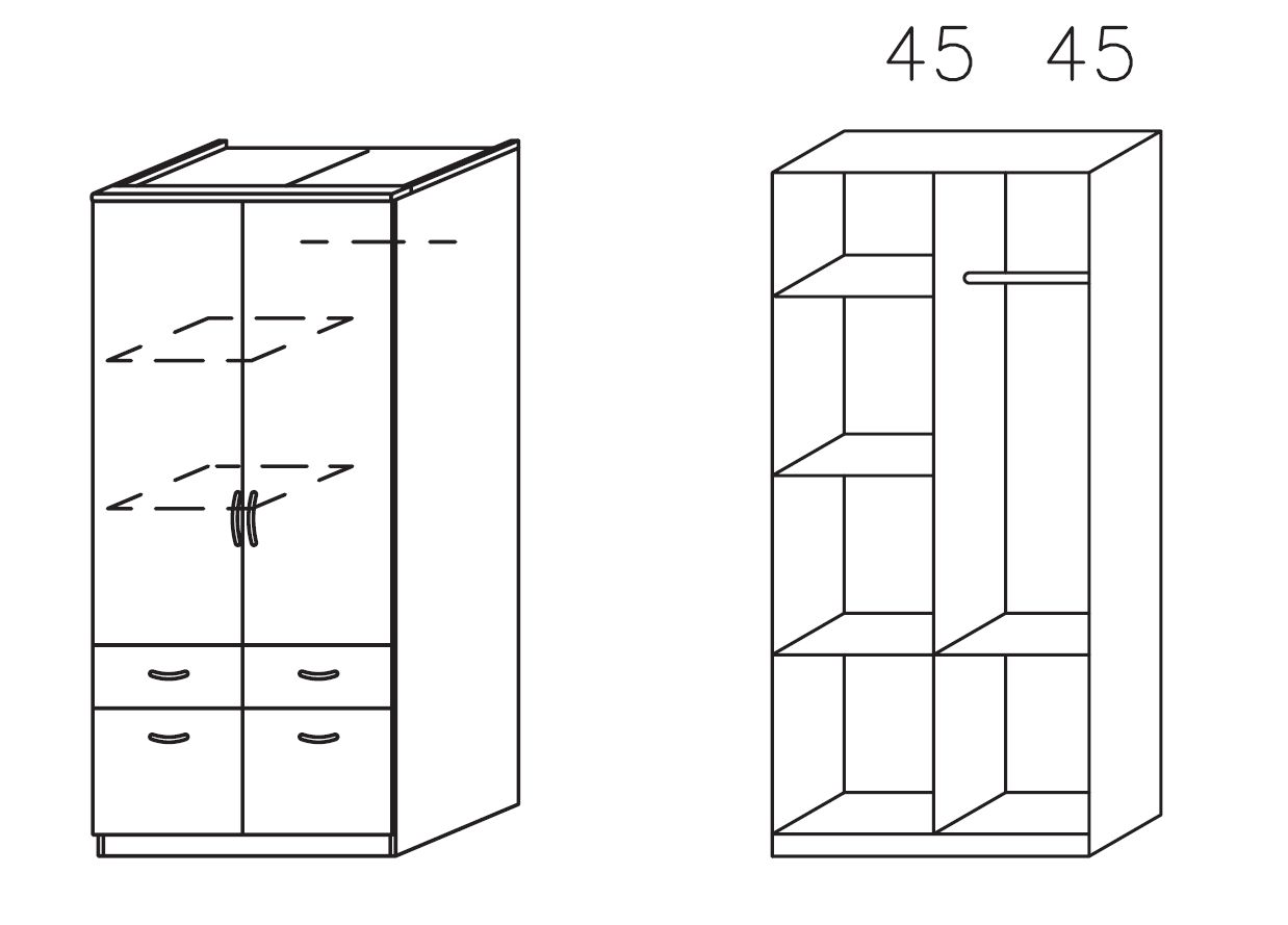 Vous pourrez ranger avec soin vos vêtements, accessoires et linge de lit derrière les deux portes battantes de cette armoire. Un espace de rangement supplémentaire est disponible dans les auqtre tiroirs.aménagez votre chambre avec goût dans un style moderne avec l'armoire BREMEN EXTRA.