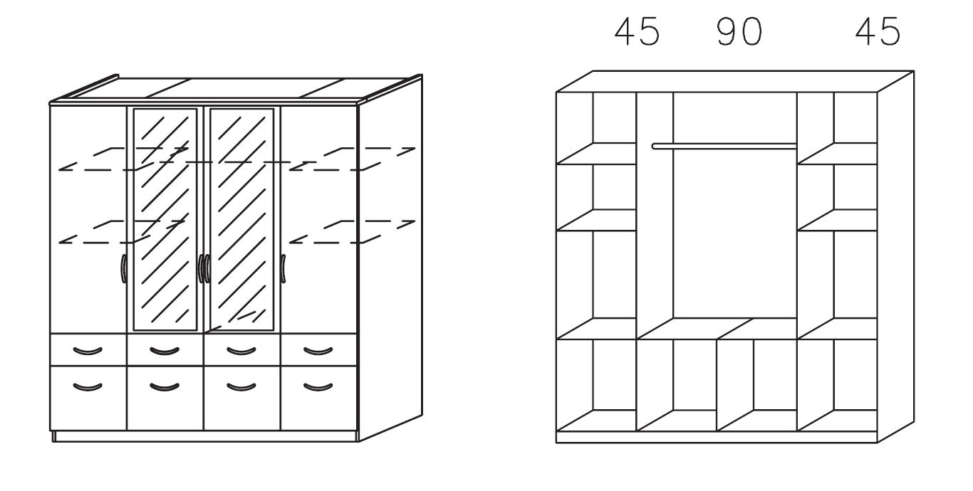Vous pourrez ranger avec soin vos vêtements, accessoires et linge de lit derrière les deux portes battantes de cette armoire. Un espace de rangement supplémentaire est disponible dans les auqtre tiroirs.aménagez votre chambre avec goût dans un style moderne avec l'armoire BREMEN EXTRA.