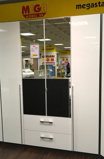 L'armoire à portes battantes ESSENSA avec ses six tablettes et ses trois barres de penderie est très bien équipée. Deux tiroirs offrent un espace de rangement supplémentaire. Les façades dans un ton blanc ultra brillant et les portes miroir créent une ambiance conviviale et confèrent à cette armoire un aspect élégant.