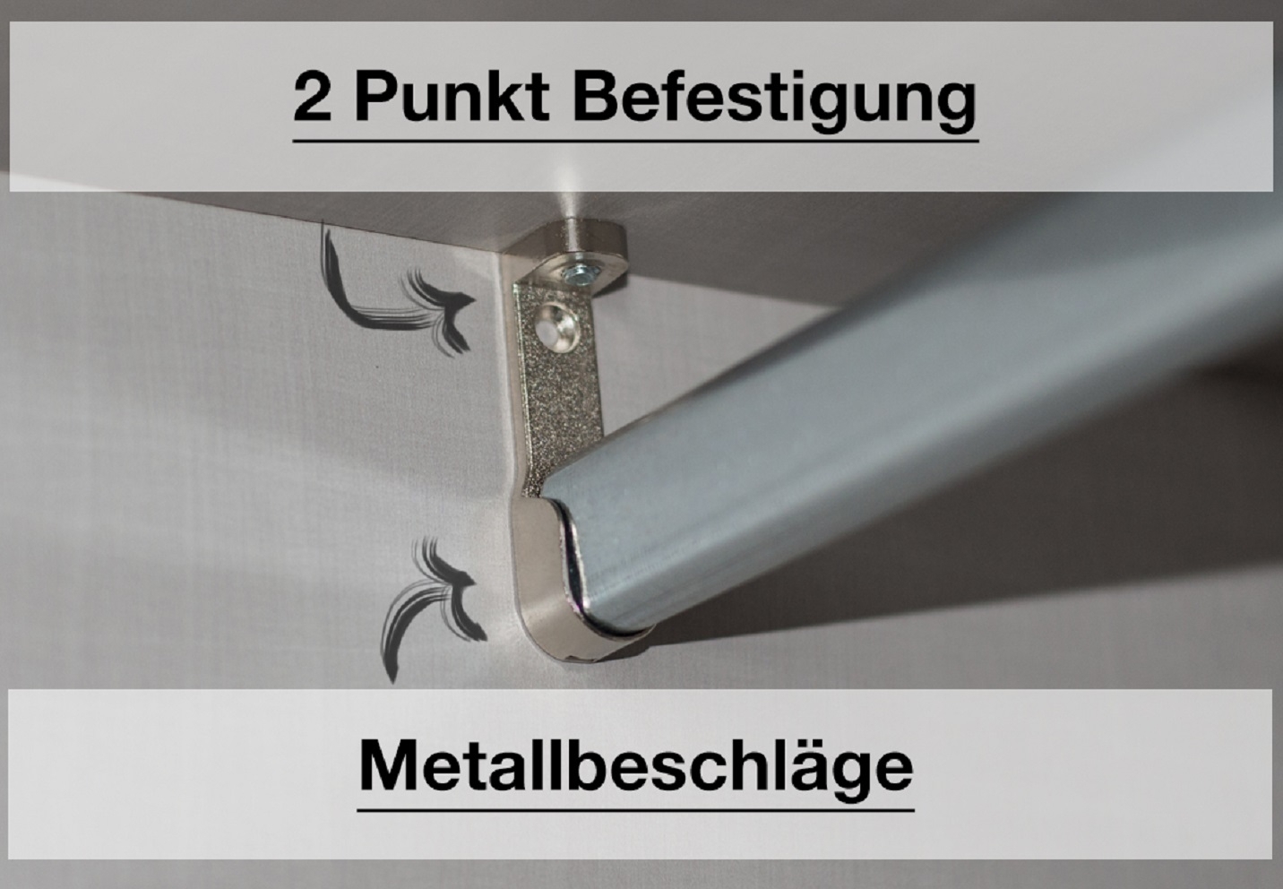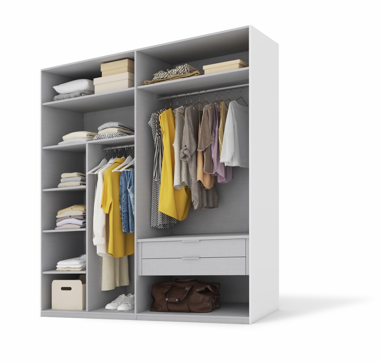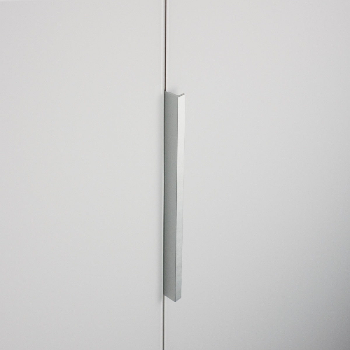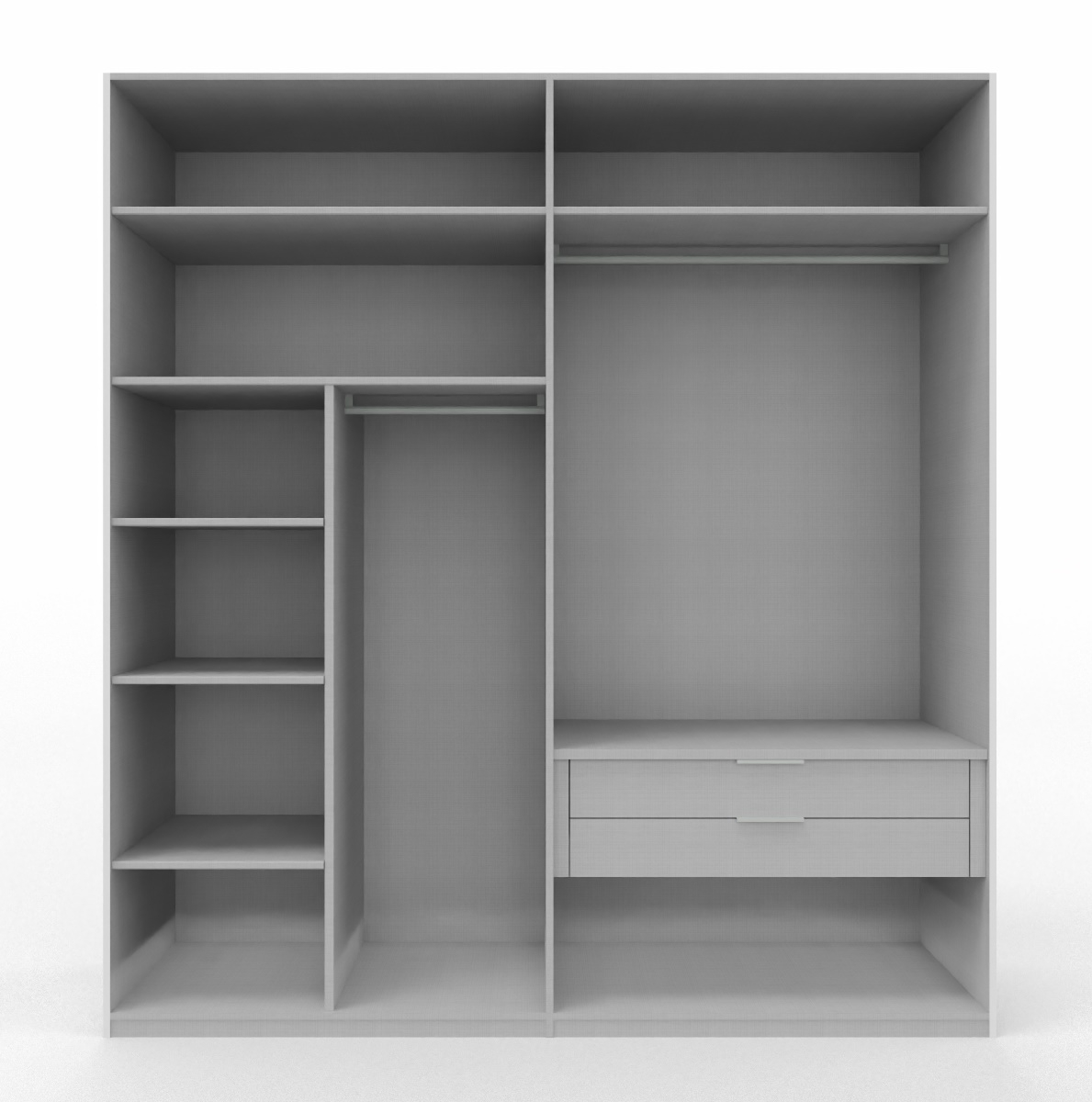 Les images détaillés (illustrant équipement intérieur, poignée et barre de penderie) montrent l'armoire dans une autre finition ; ces détails sont eux-mêmes identiques au modèle présenté.