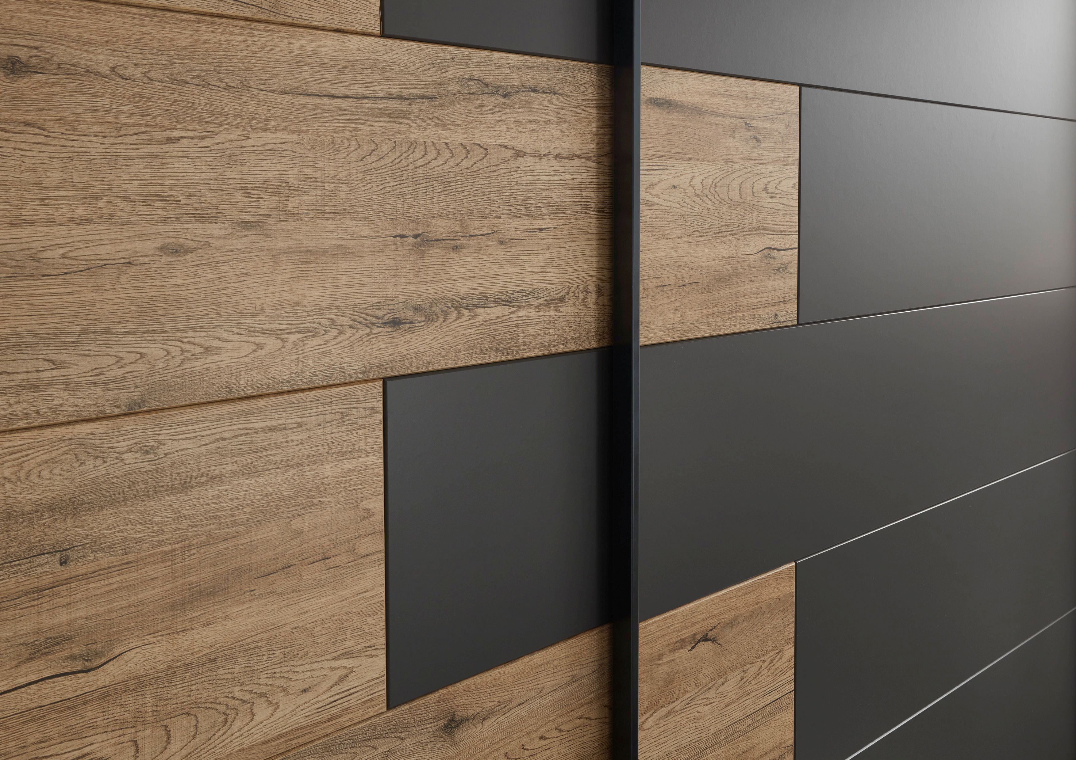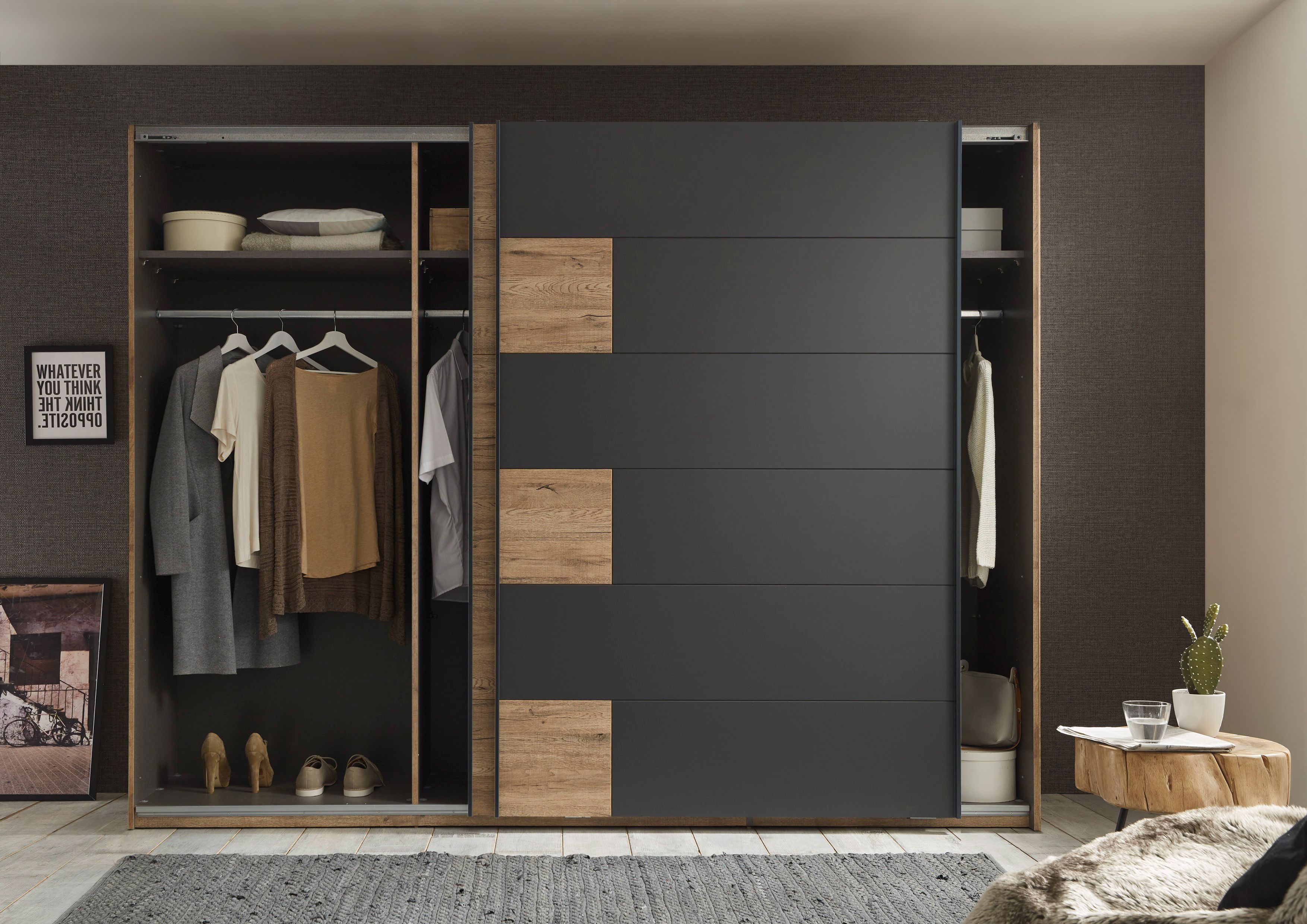 Armoire à vêtements modernes LINEA avec bel espace de rangement - Armoire à portes coulissantes polyvalente aspect chêne Bartex, ton graphite - 270 x 211 x 58 cm (L/H/P)