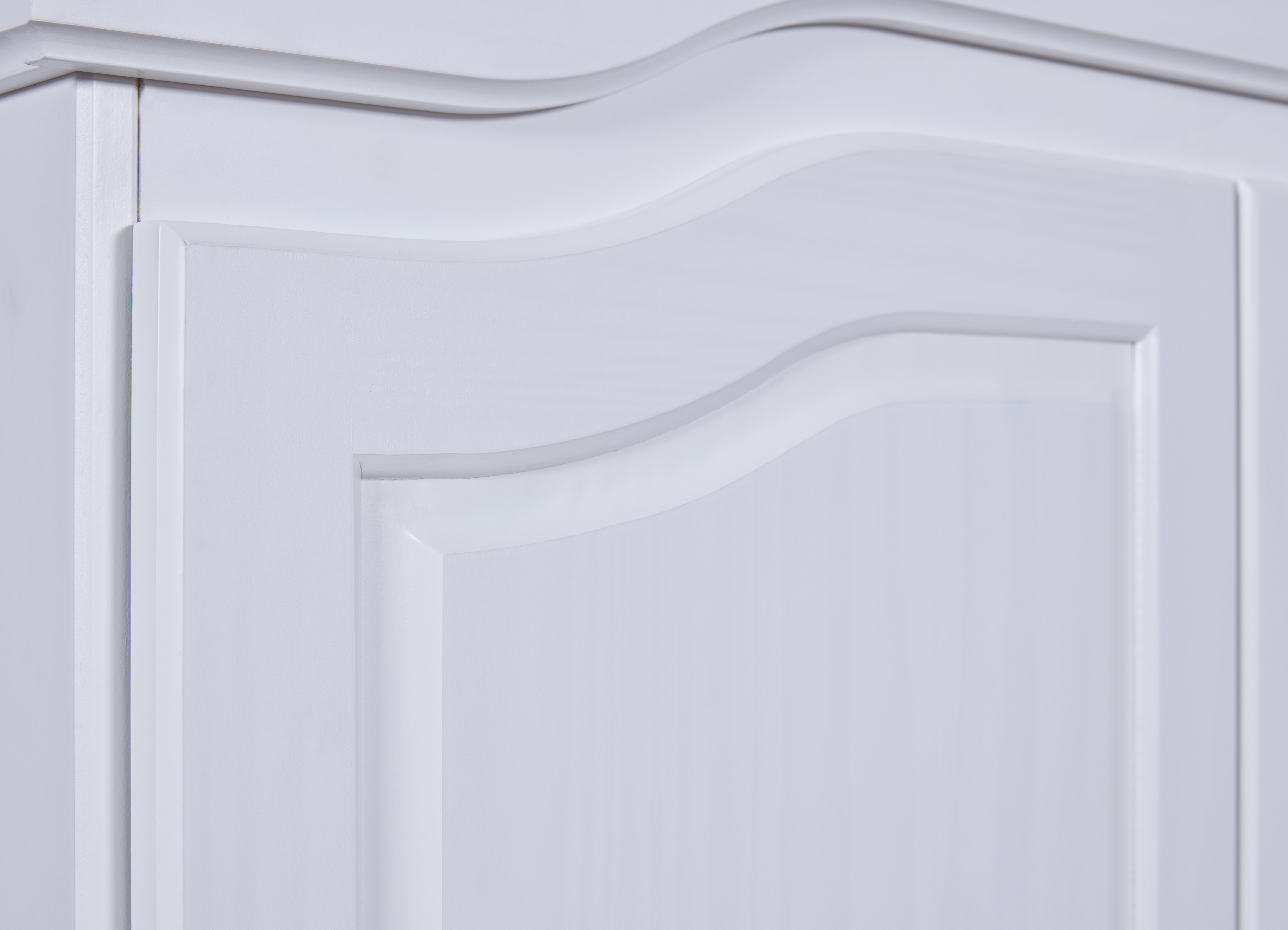 Le vernis transparent blanc de l’armoire 3 portes laisse apparaître les veines naturelles du bois massif.