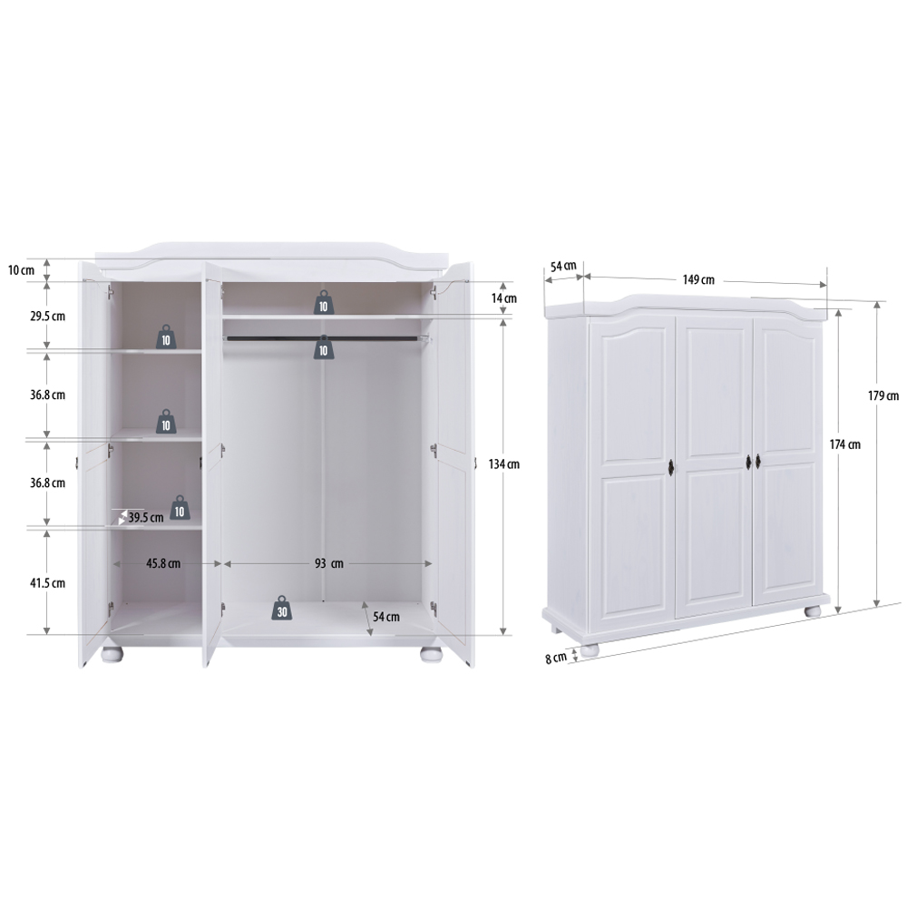 L’armoire Bastian est le choix idéal pour tous les amateurs de style campagne en blanc.