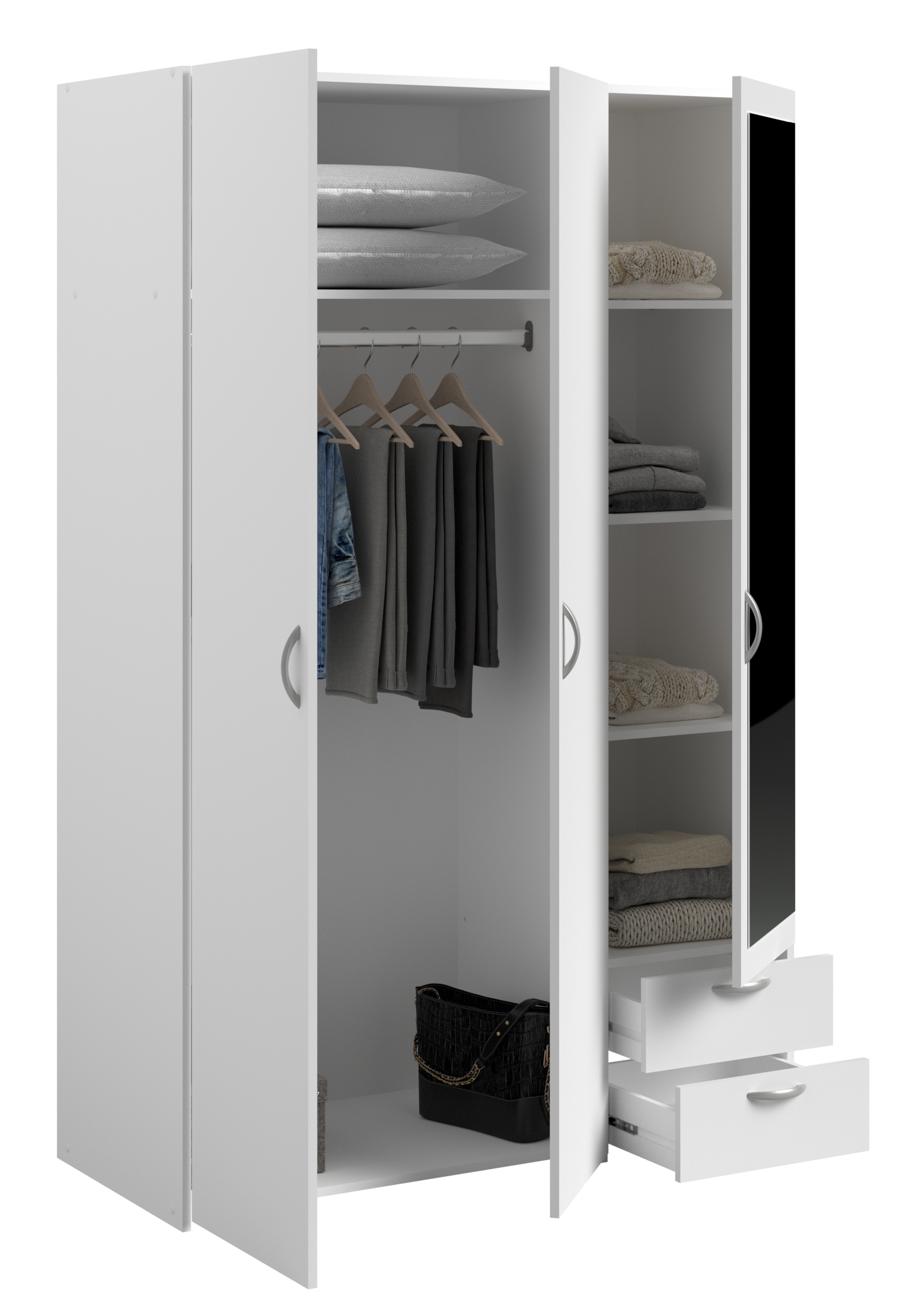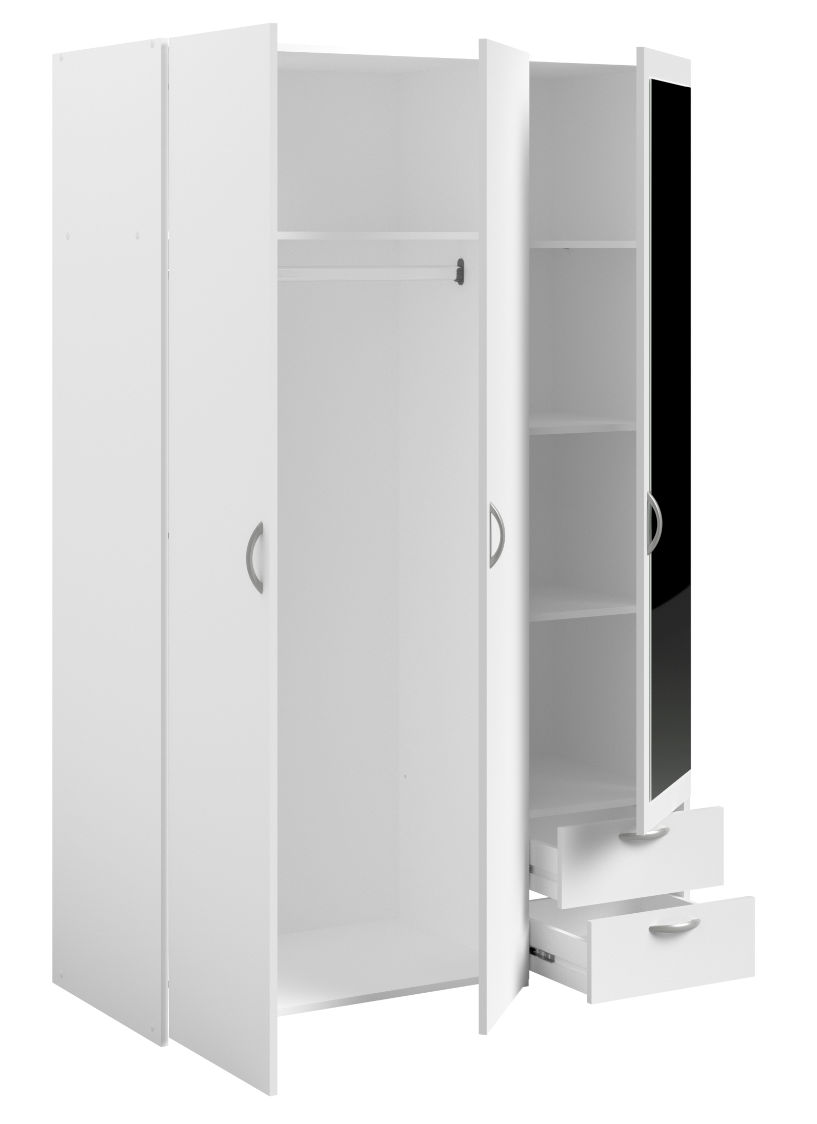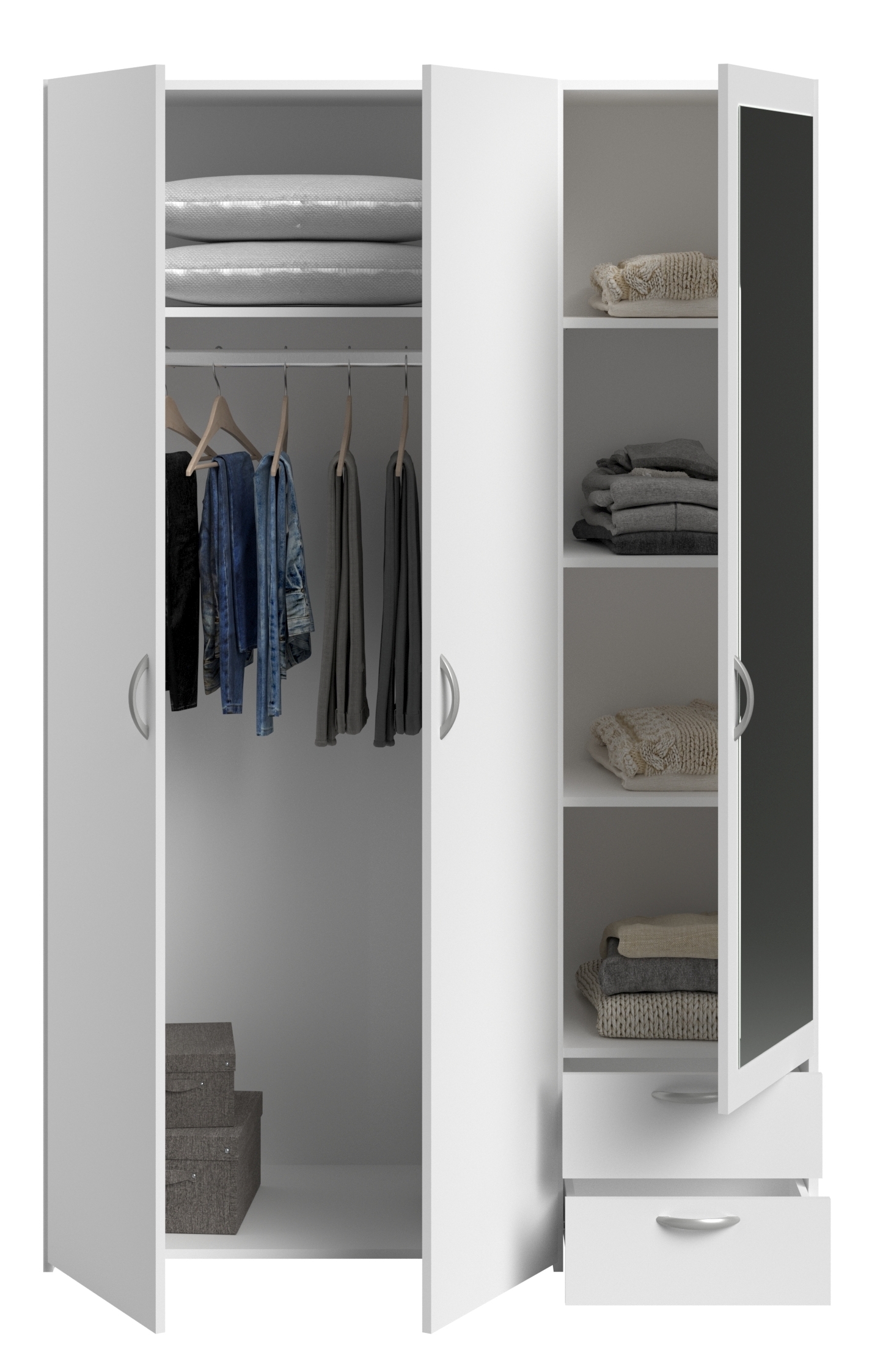À gauche : 2 grandes portes avec, derrière elles, 1 casier et 1 barre de penderie