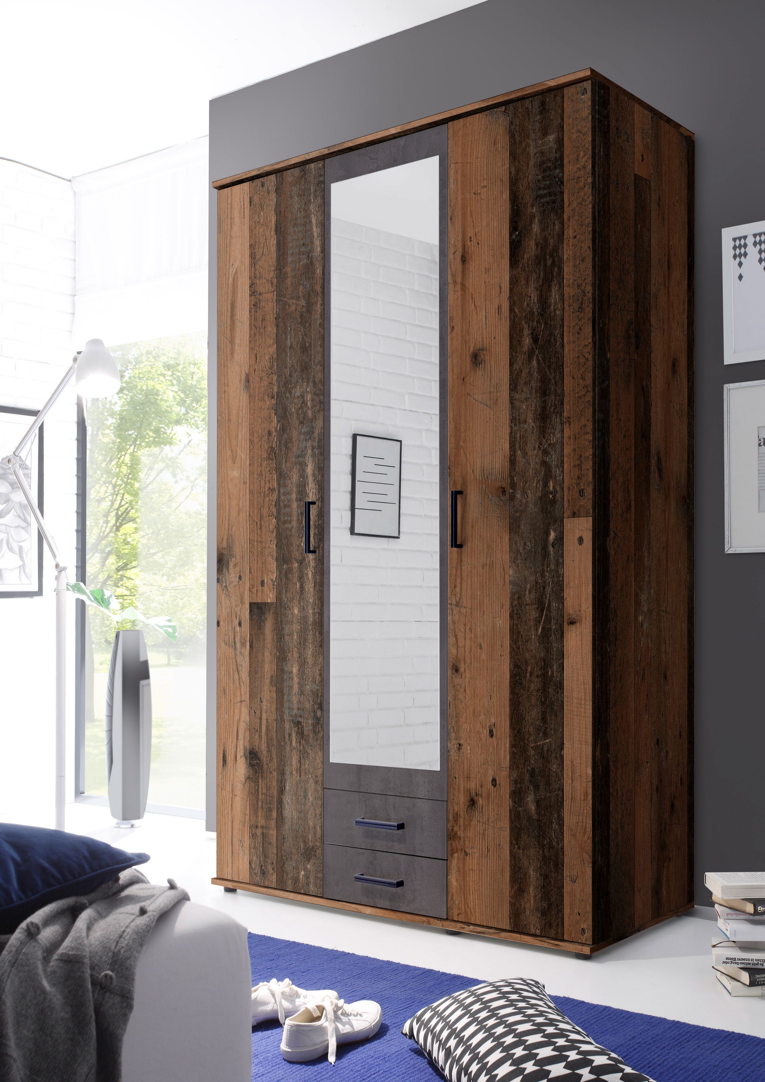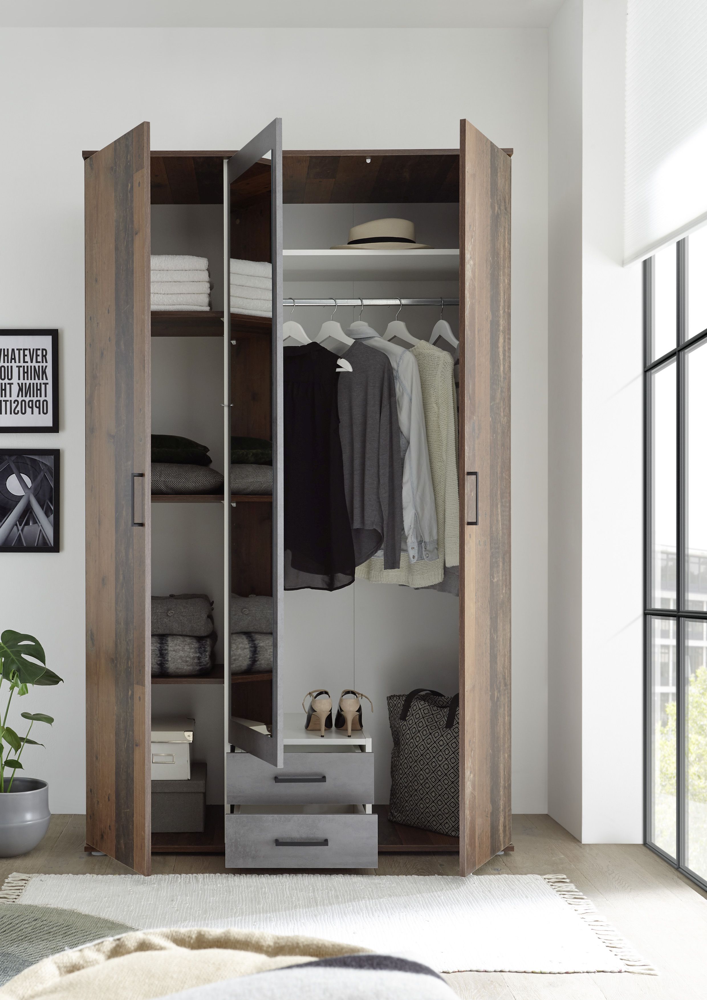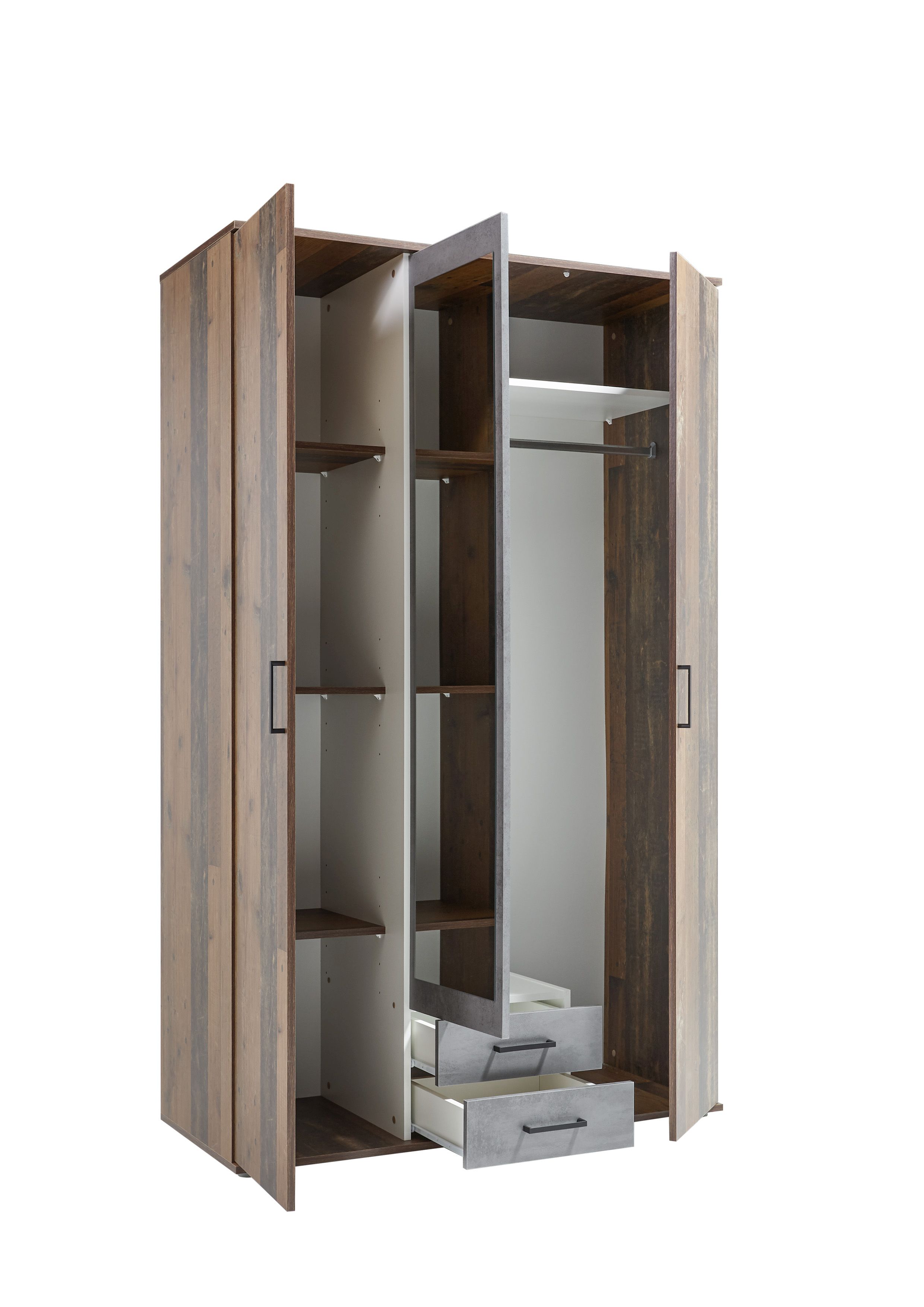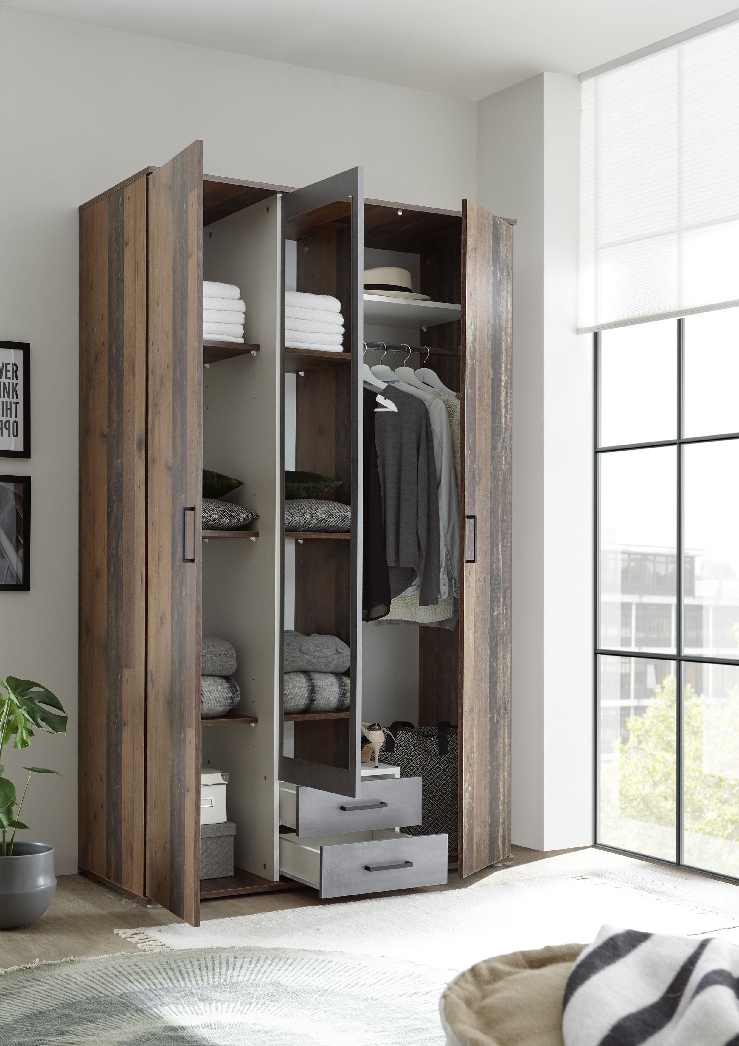 Élégante armoire à vêtements CHICAGO avec bel espace de rangement - Armoire à portes battantes ton Old Style et aspect béton - 120 x 197 x 54 cm (L/H/P)
