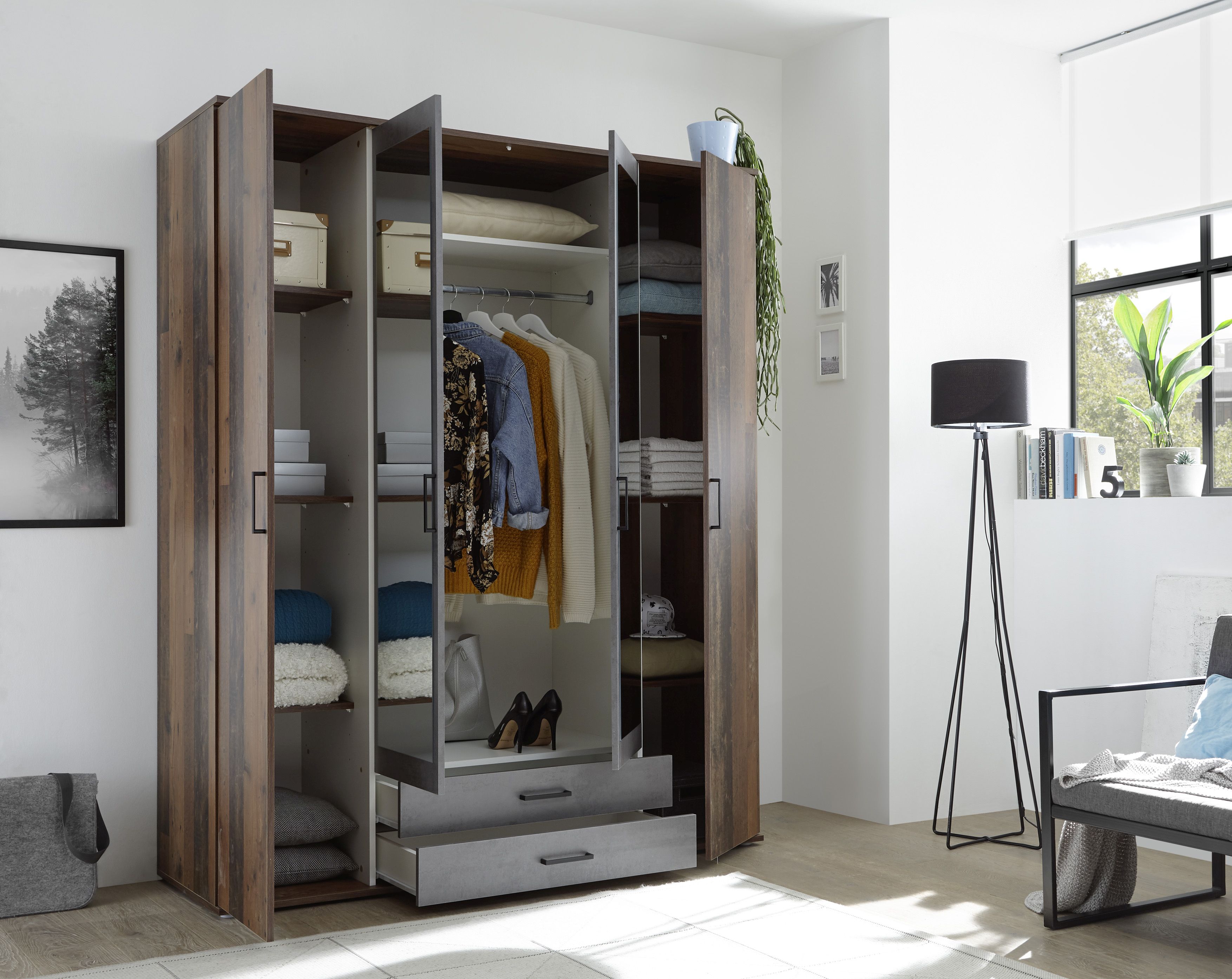 - DIFFÉRENTES TAILLES - Vous avez le choix : plutôt trois ou quatre portes ? Vous pouvez choisir individuellement selon vos besoins. L'armoire à vêtements s'intègre ainsi à coup sûr dans votre chambre à coucher.