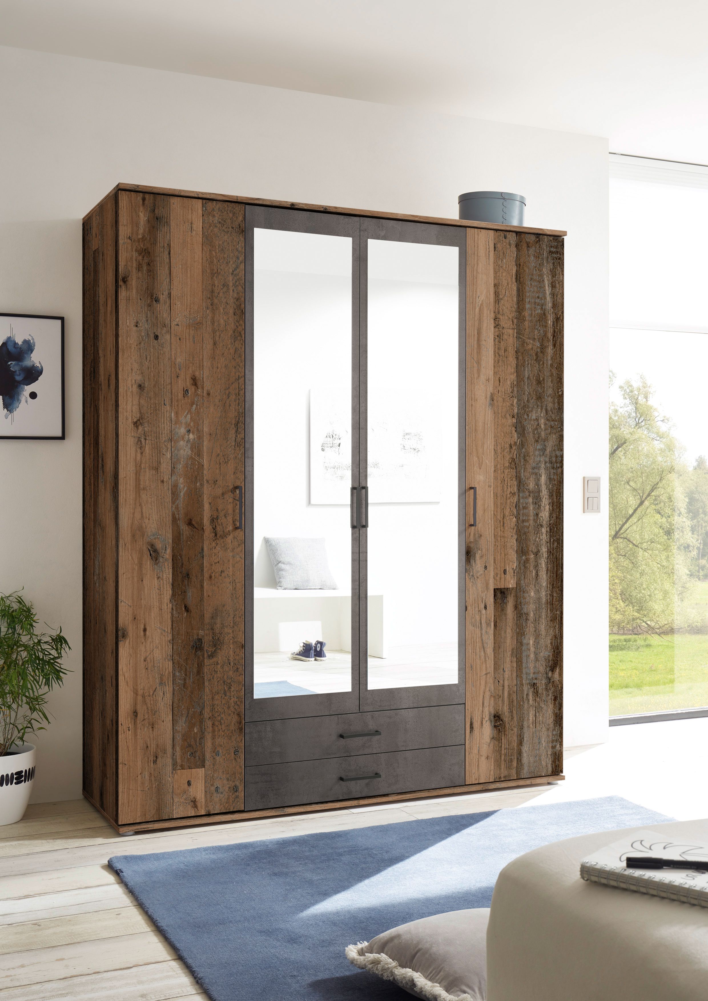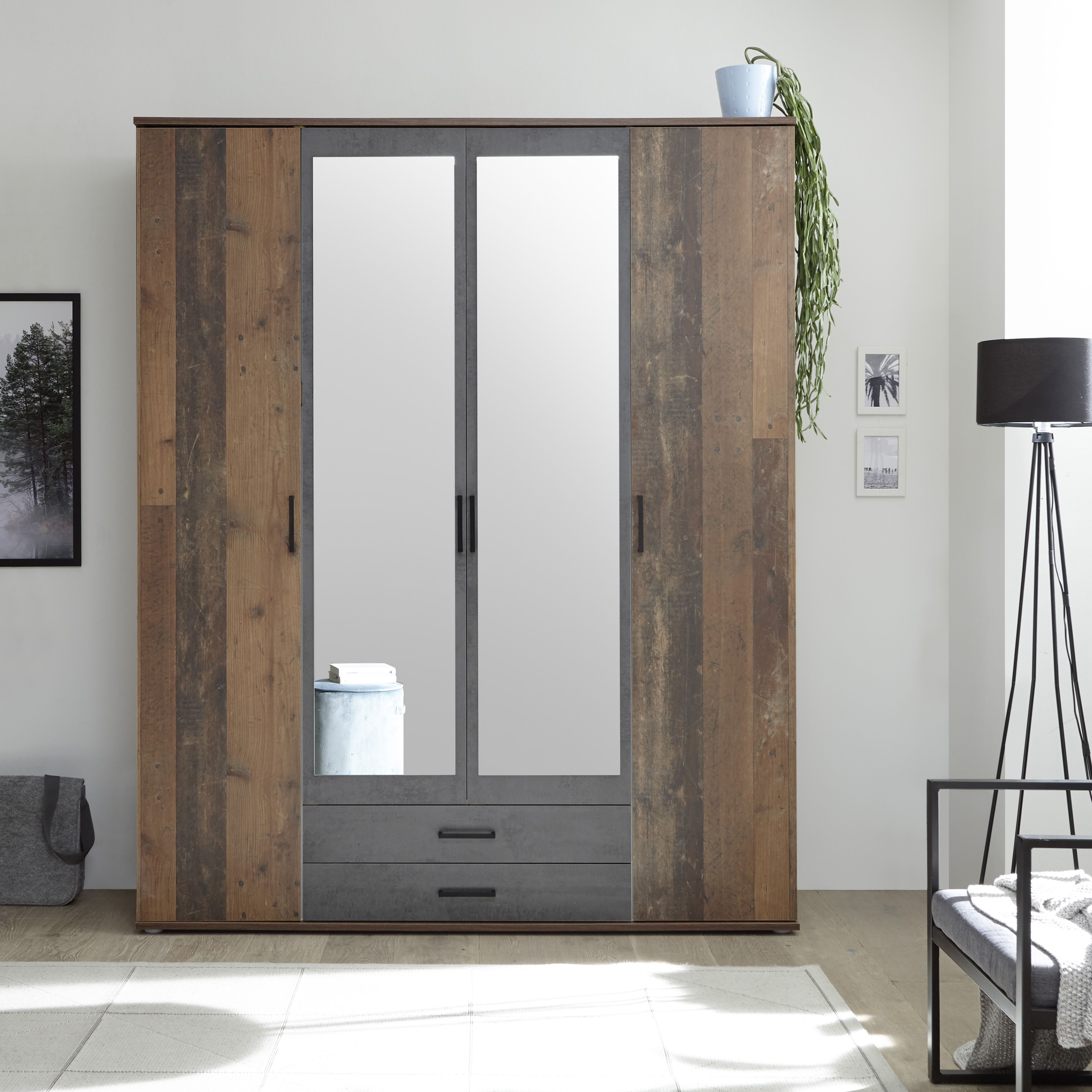 Cette armoire à vêtements tendance permet d'aménager avec goût la chambre parentale ou la chambre d'ado. Cette jolie armoire à vêtements avec miroir sur la porte centrale correspond à un style d'ameublement indémodable. Dans les tiroirs et derrière les portes, on trouve un grand espace de rangement pour les vêtements et accessoires.L'armoire à vêtements est pratique pour aménager la chambre à coucher, la chambre d'ado ou pour le premier appartement. Vous avez le choix : 3 ou 4 portes ?