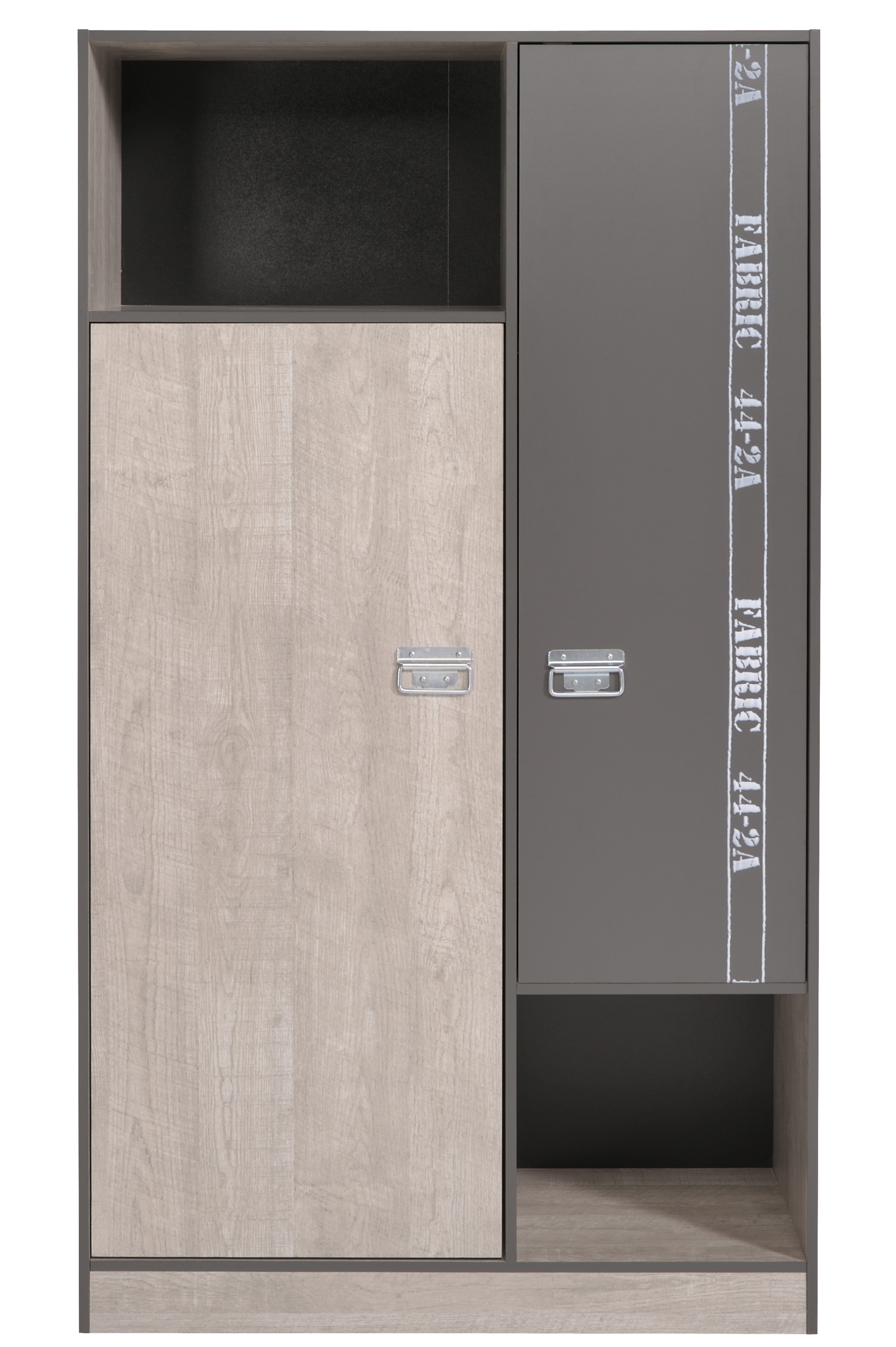 L'armoire à portes battantes FABRIC 6 comprend 2 portes de largeurs différentes ainsi que deux casiers ouverts. A l'intérieur, elle offre suffisamment de place pour vos habits et différents accessoires. Cette armoire à vêtements marque des points également par son design frais et tendance dans un style industriel.