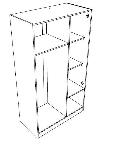 à gauche : 1 grand casier ouvert en haut avec 1 porte en dessous et 1 barre de penderie derrière