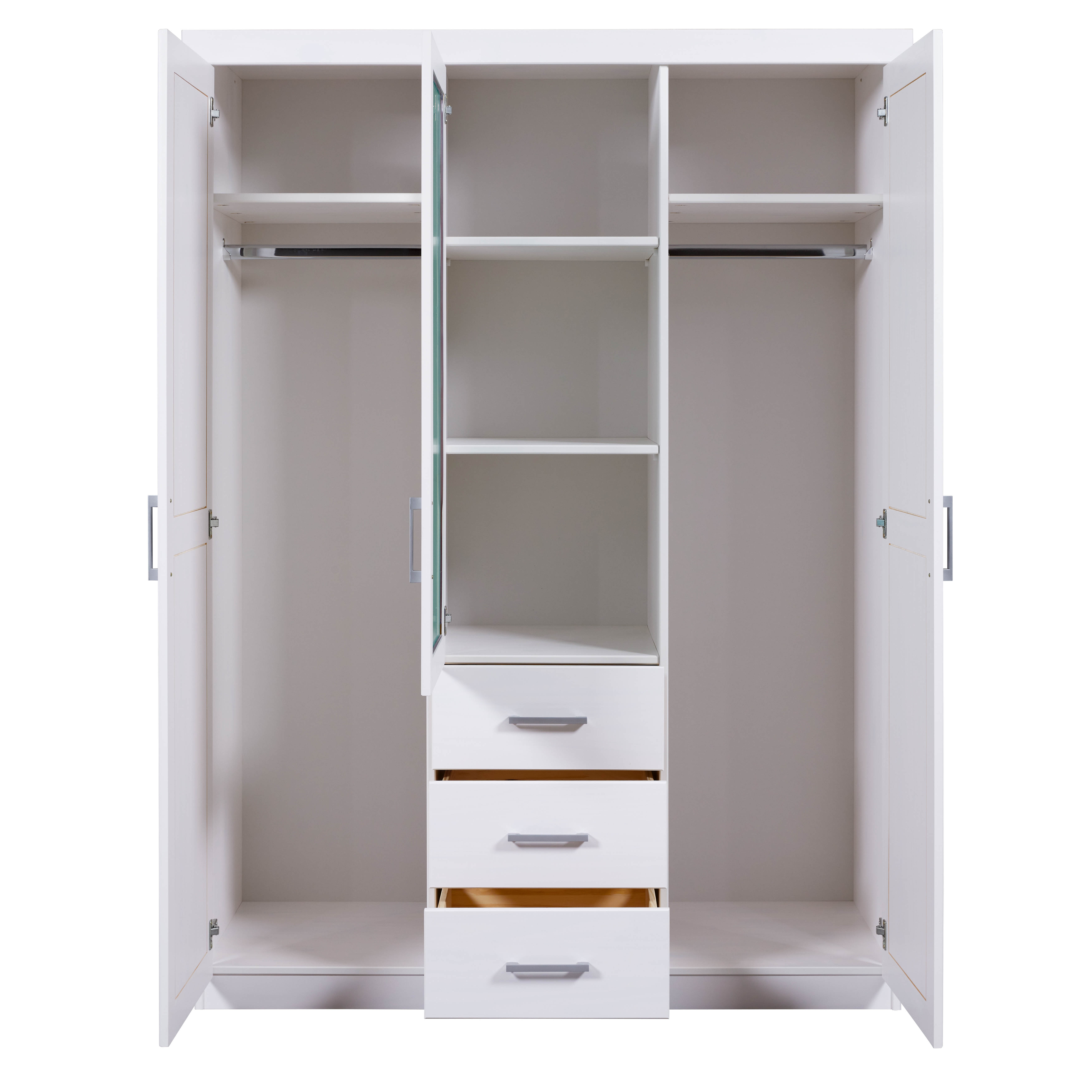 Cette armoire à 3 portes séduit par sa surface blanche et offre, avec ses 5 t ablettes et ses 2 barres de penderie, un espace généreux pour vos vêtements préférés.