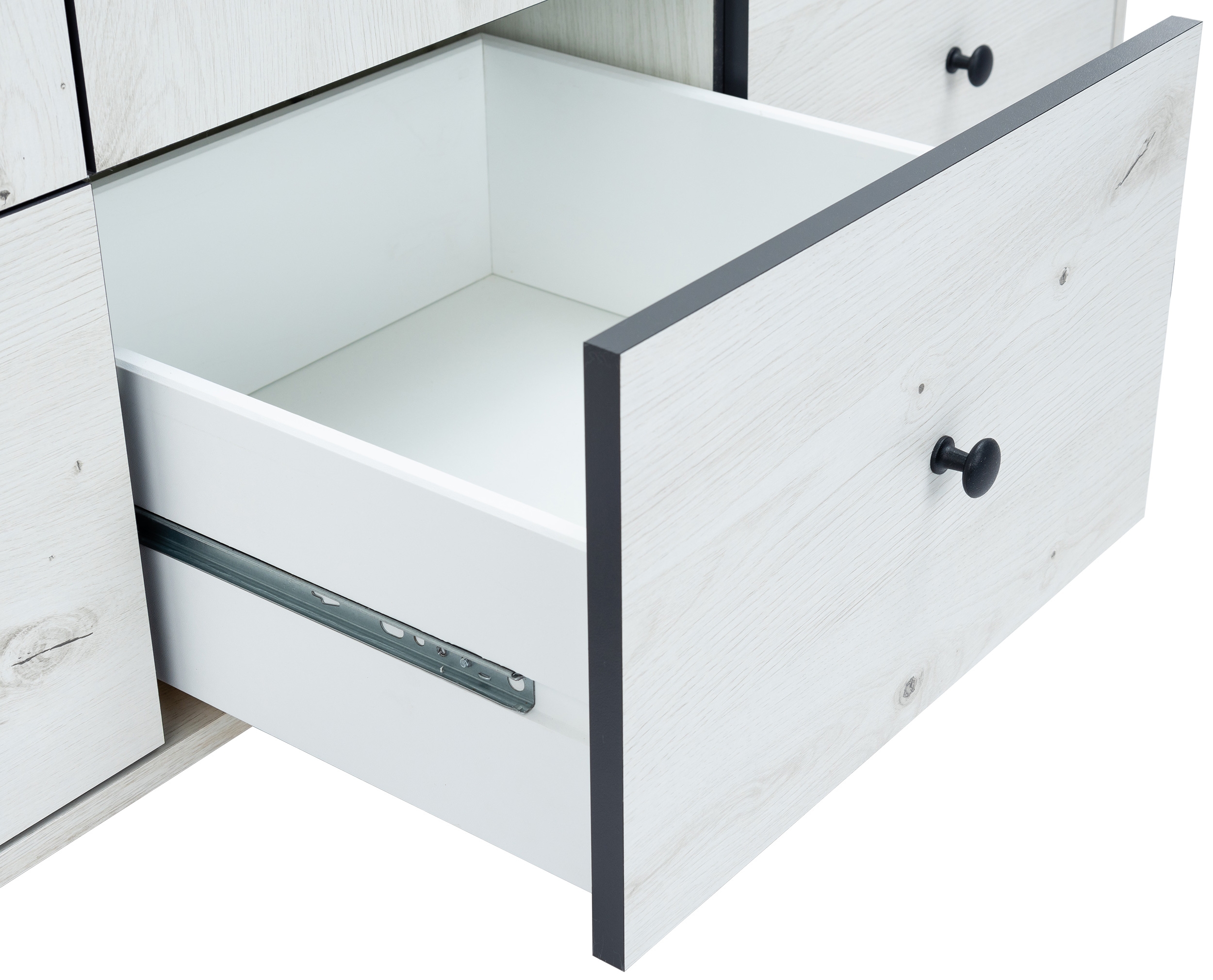 À gauche et au centre : à chaque fois, 3 tablettes amovibles et 1 tiroir
