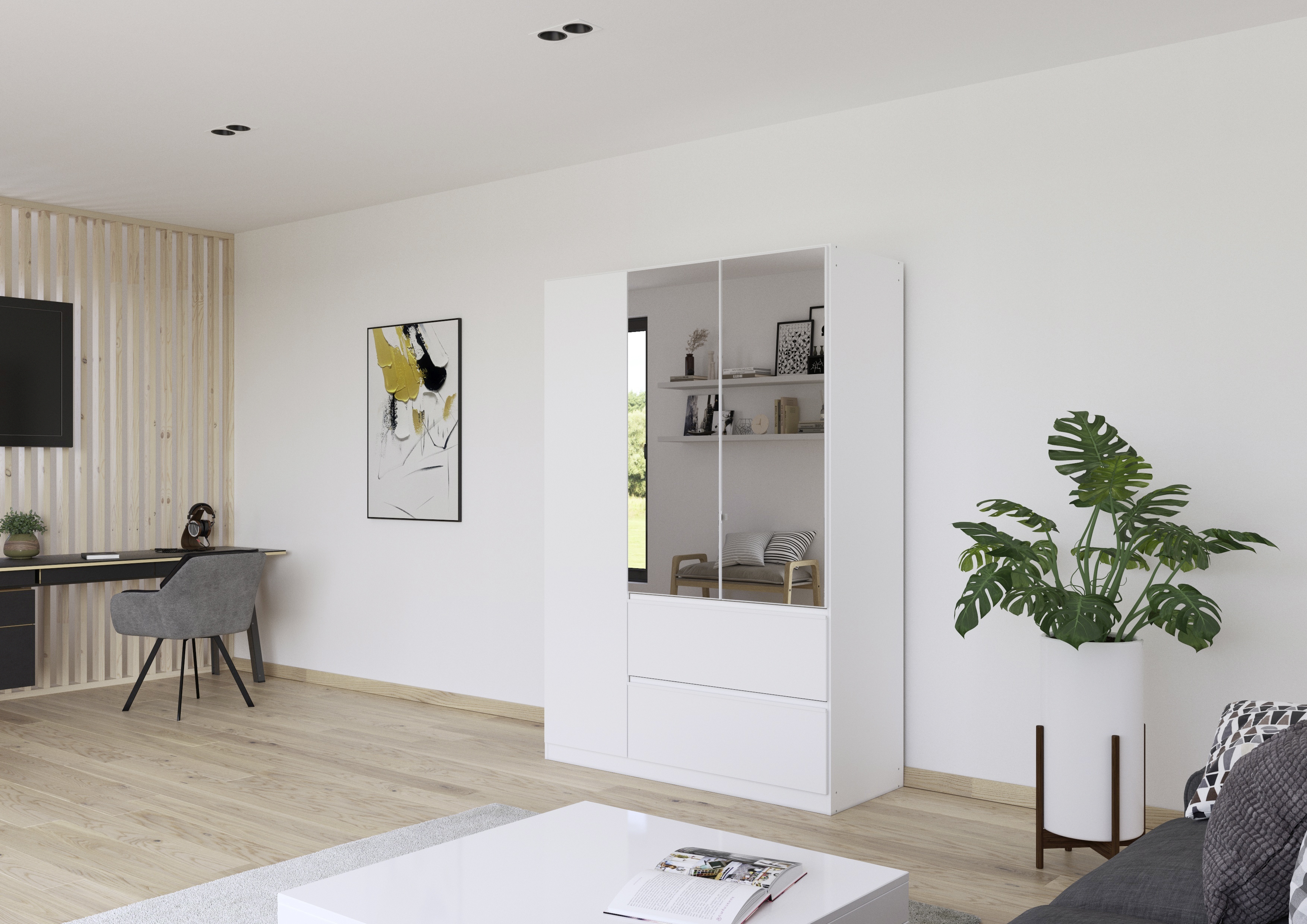 | Equipement armoires: | Miroir, Tiroirs | ||