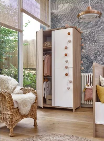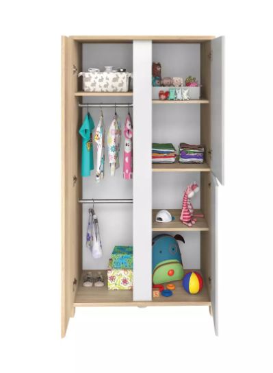 derrière la porte de gauche se trouvent 1 tablette et 2 barres de penderie