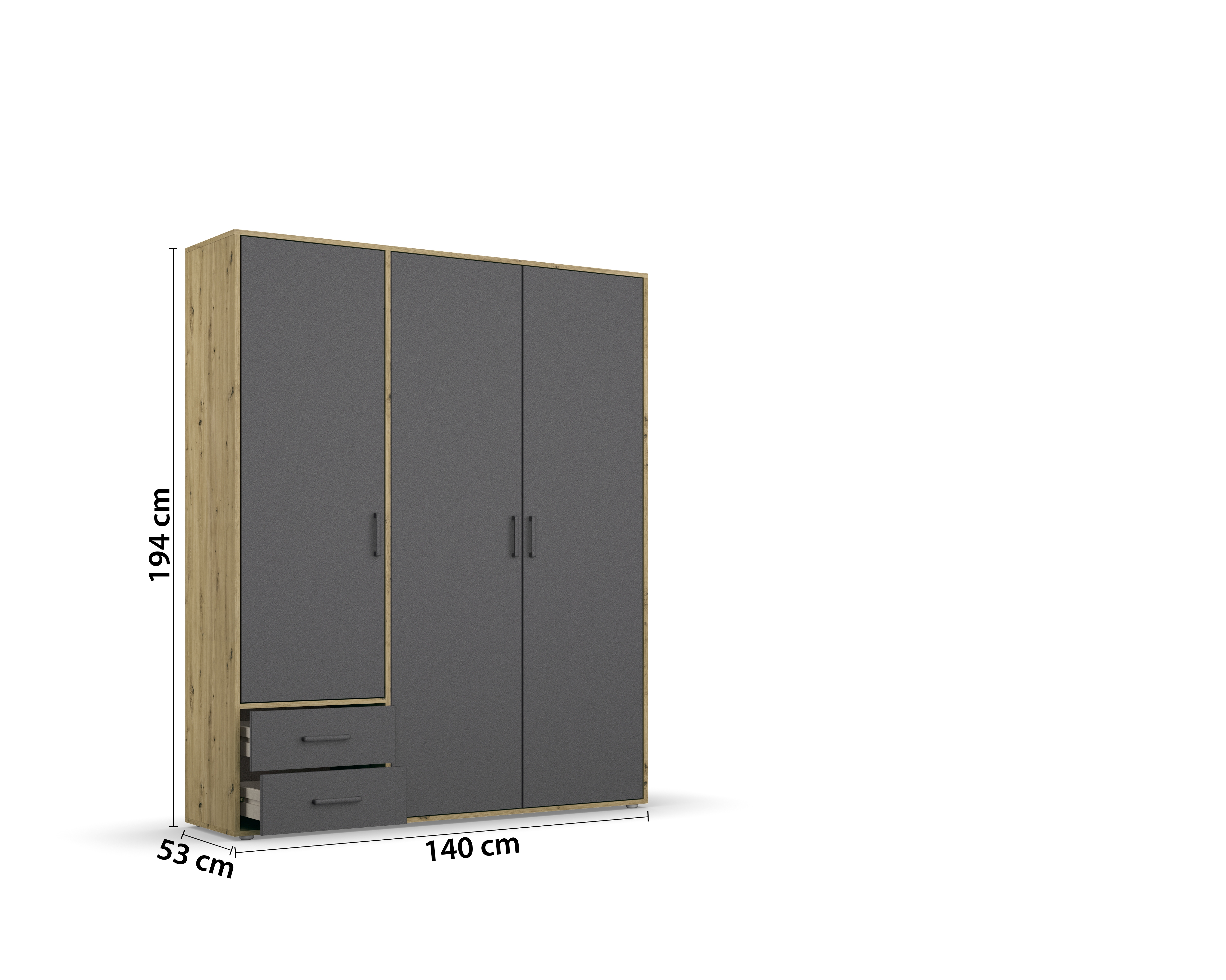 | Dimensions : | L/H/P env. 140/194/53 cm | ||