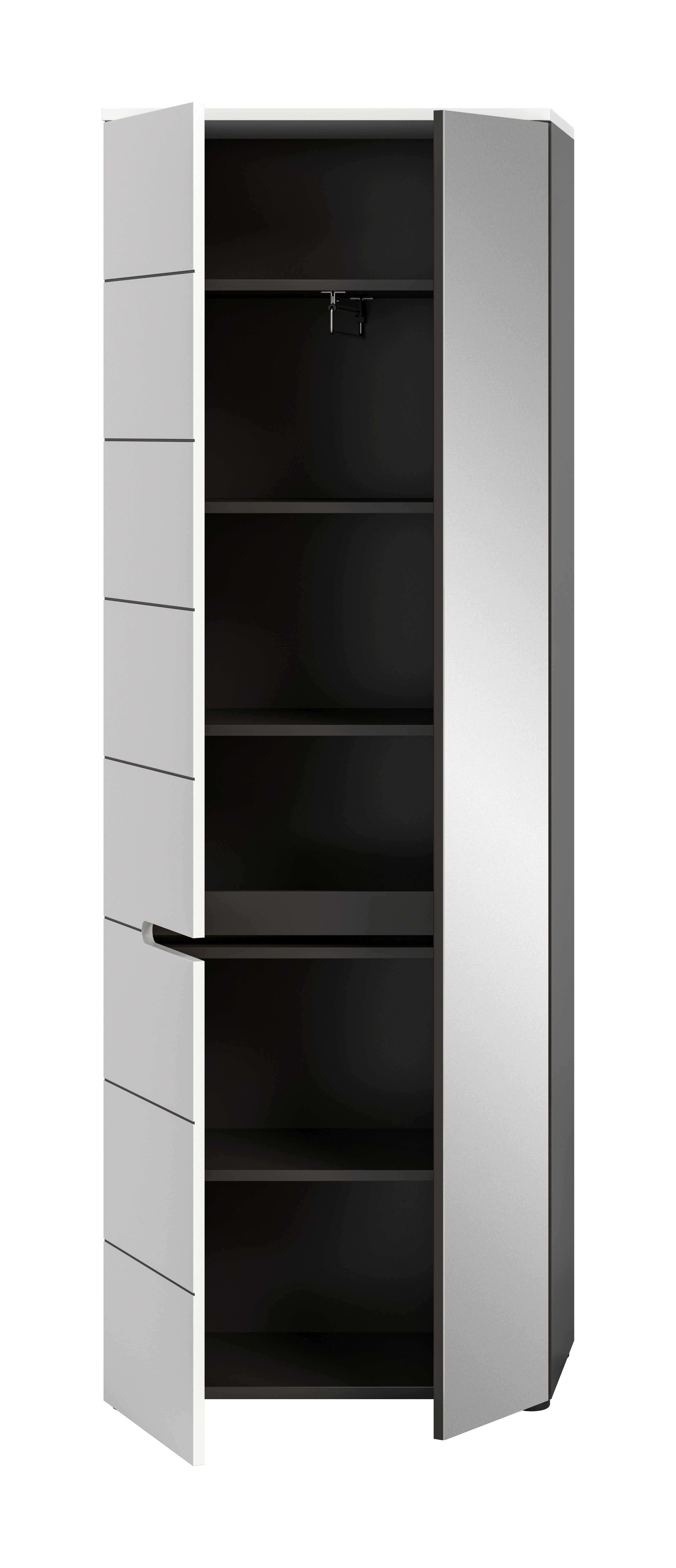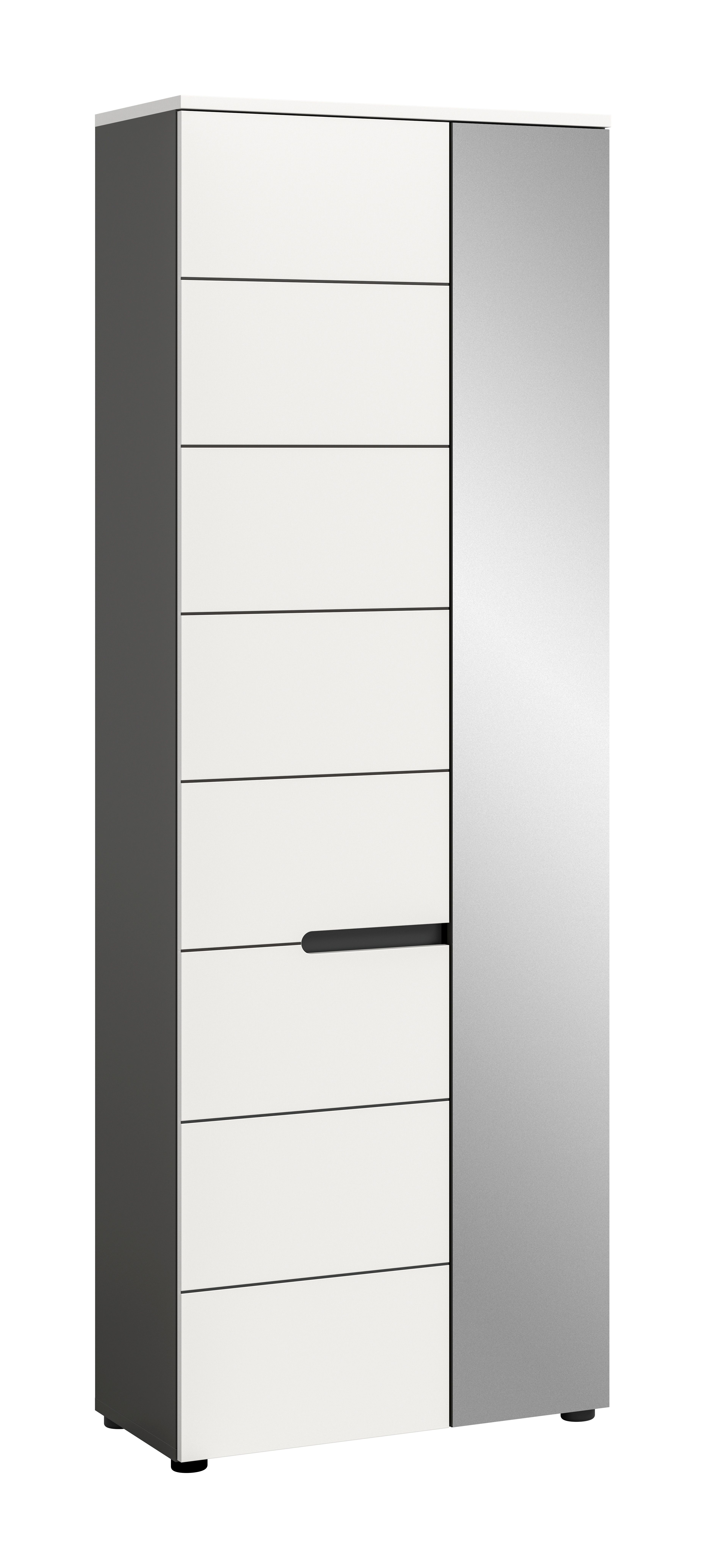 Notre armoire d’entrée (dimensions : 65x190x37 cm) est proposée dans des teintes élégantes : décor gris basalte et ton blanc. Elle conférera ainsi une note stylée et tendance à votre intérieur. Avec un bel espace de rangement pour les vestes, chaussures et accessoires, cette armoire est la solution idéale pour une entrée bien ordonnée. Découvrez dès maintenant ce meuble beau et pratique pour la maison.