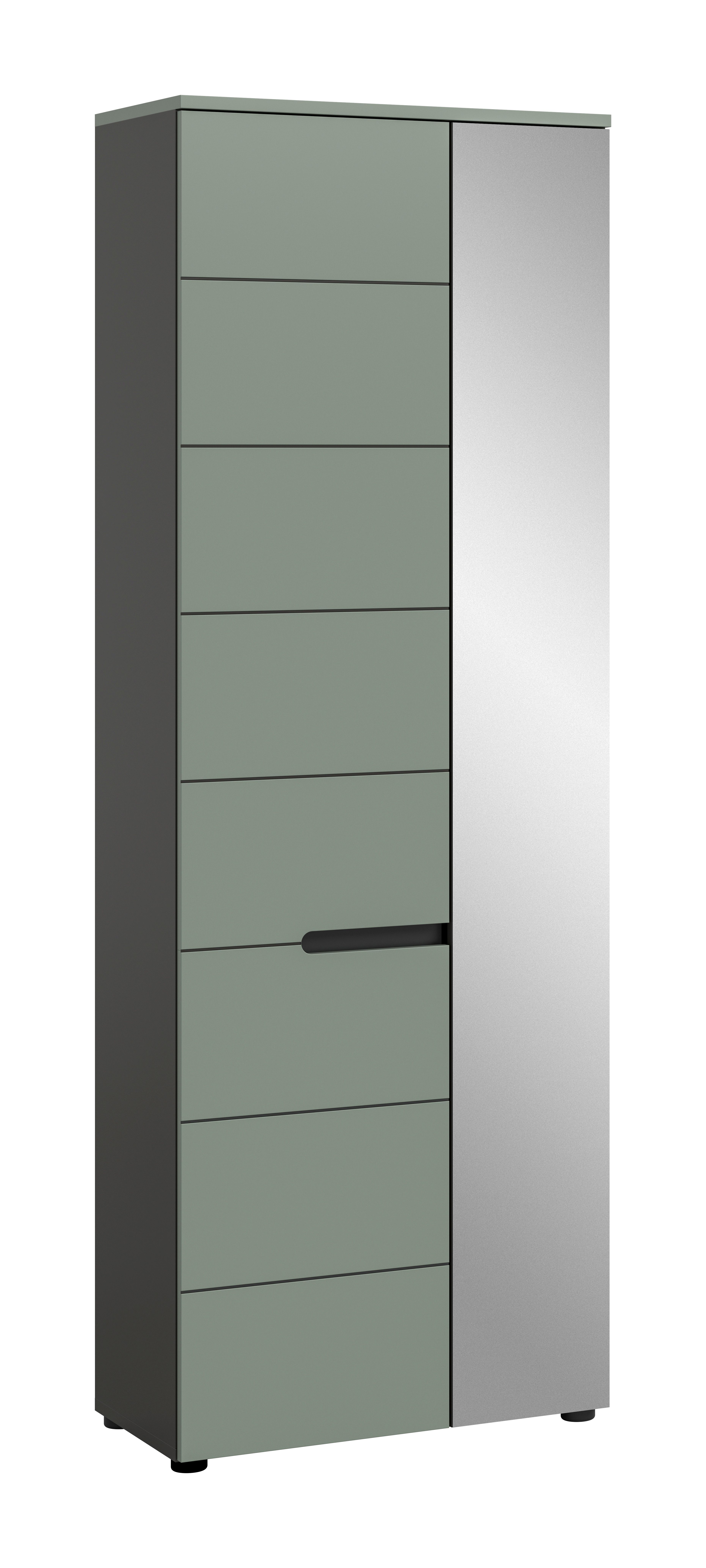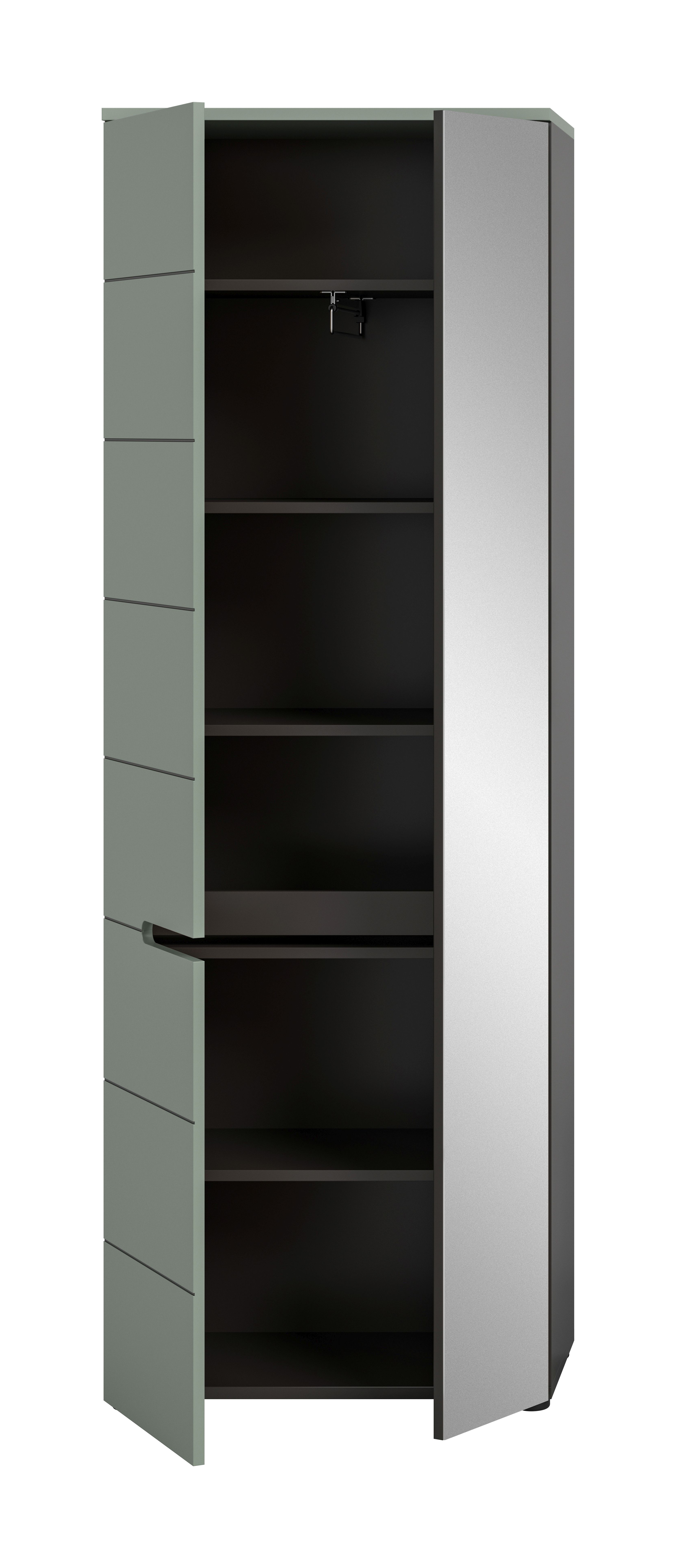 Notre armoire d’entrée (dimensions : 65x190x37 cm) est proposée dans des teintes élégantes : décor gris basalte et ton smoke green. Elle conférera ainsi une note stylée et tendance à votre intérieur. Avec un bel espace de rangement pour les vestes, chaussures et accessoires, cette armoire est la solution idéale pour une entrée bien ordonnée. Découvrez dès maintenant ce meuble beau et pratique pour la maison.