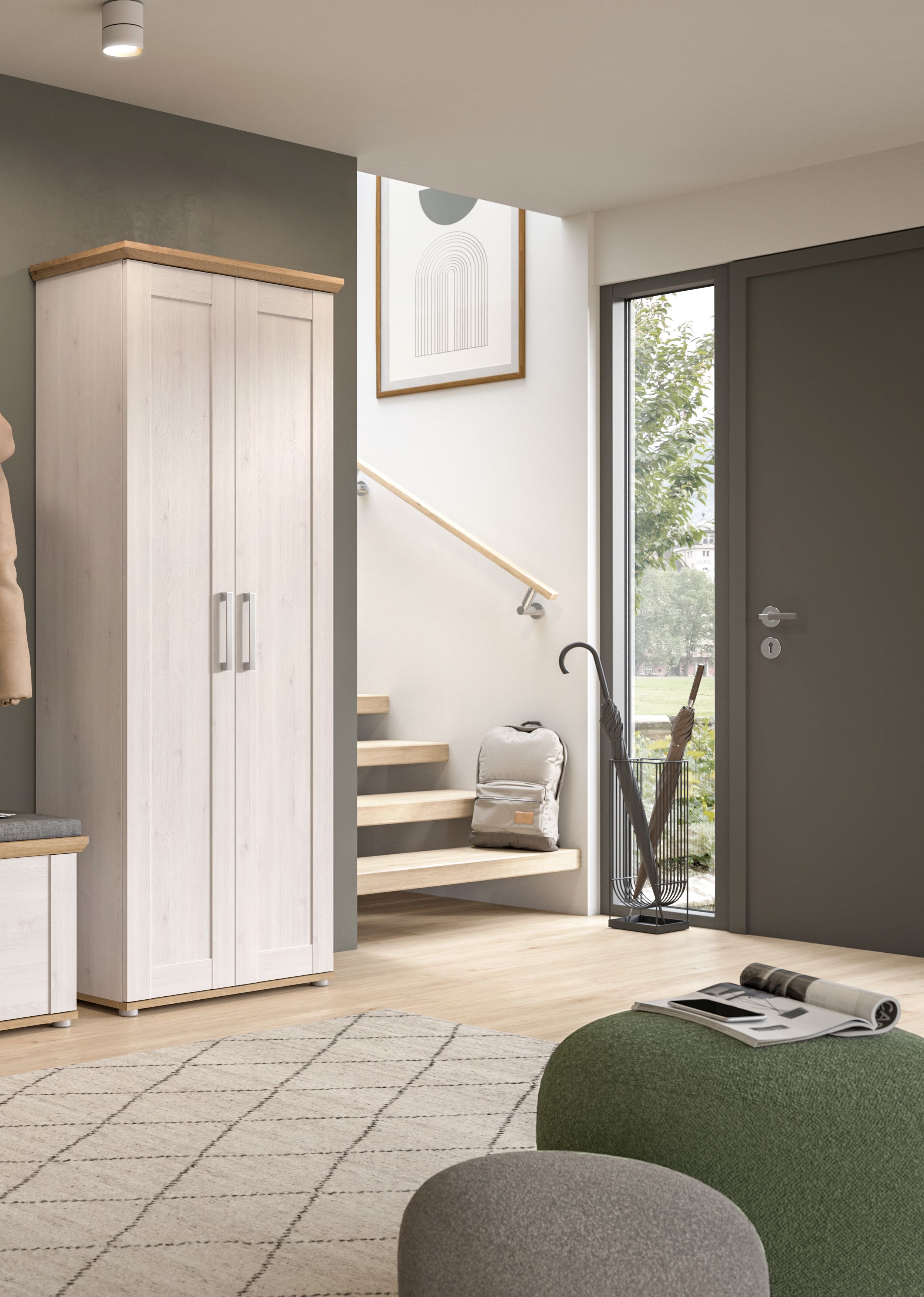 - Fonctionnalité : grâce à son espace de rangement spacieux, l’armoire de penderie offre suffisamment de place pour stocker les vestes, manteaux, chaussures ou accessoires tandis que le plateau supérieur dispose d'un espace de rangement supplémentaire.