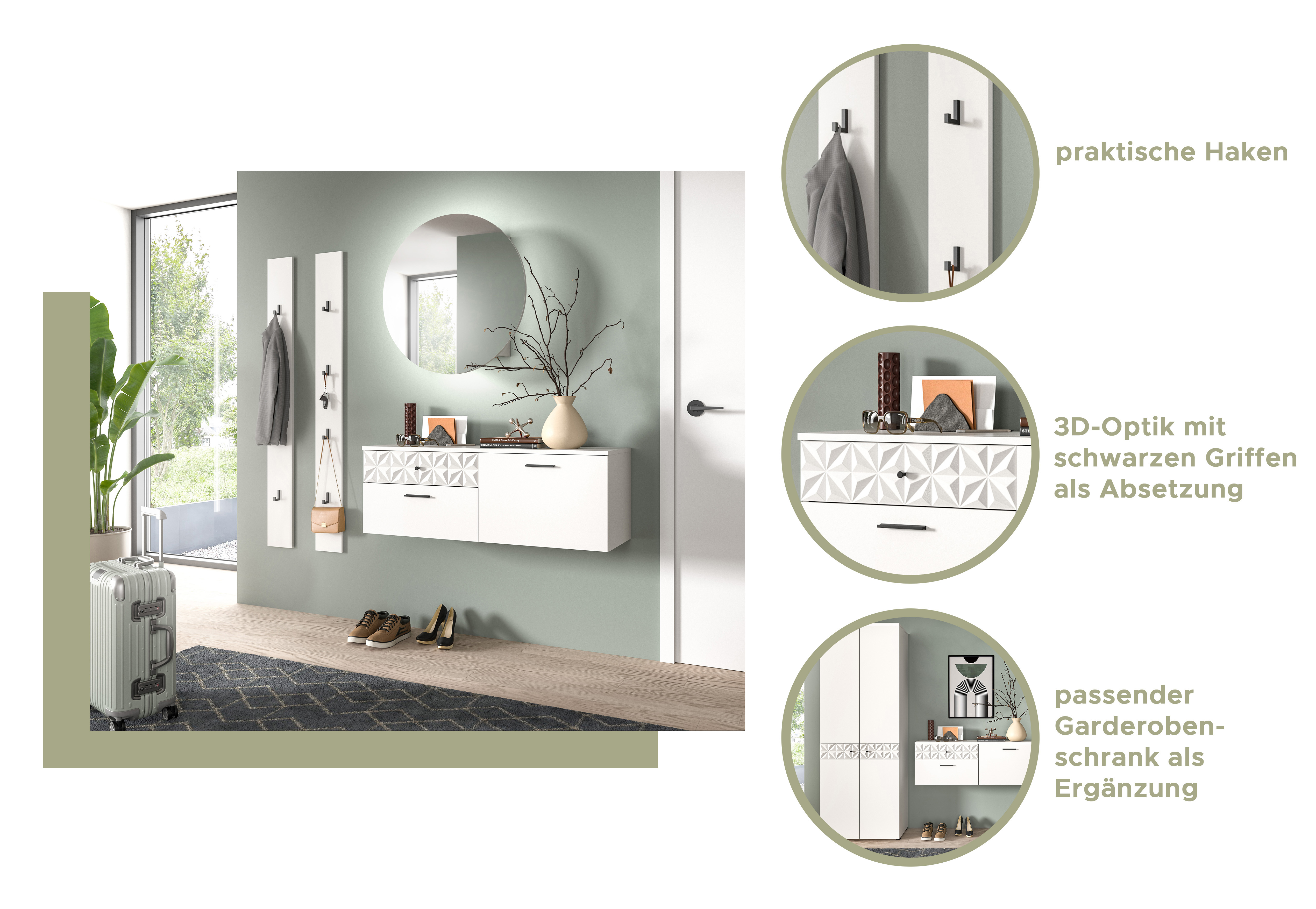 Associant design moderne et côté pratique, cette armoire de penderie constitue un véritable atout dans chaque entrée. Une combinaison parfaite entre style, espace de rangement et qualité.