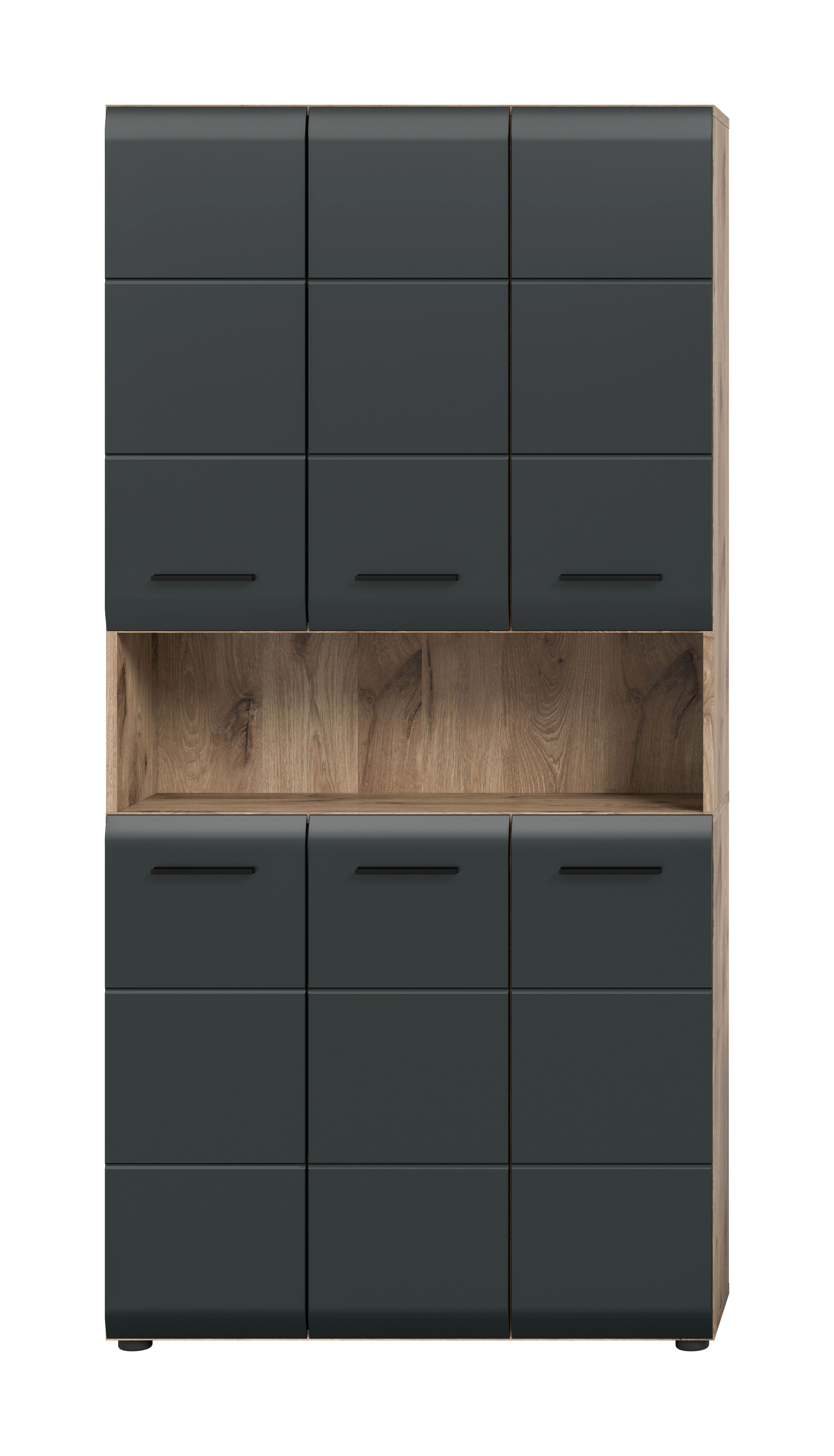 Optimisez votre espace de rangement grâce à cette armoire de salle de bains spacieuse (dimensions : 90 x 185 x 30 cm) ! Dotée de six portes, elle offre une solution de stockage pratique avec huit tablettes amovibles réglables en hauteur, deux tablettes fixes et un total de douze compartiments pour organiser efficacement vos effets personnels. Un casier ouvert vient compléter l’ensemble pour un accès facile à vos objets du quotidien. Sa façade en MDF avec finition rainurée lui confère un look tendance et une durée de vie accrue.