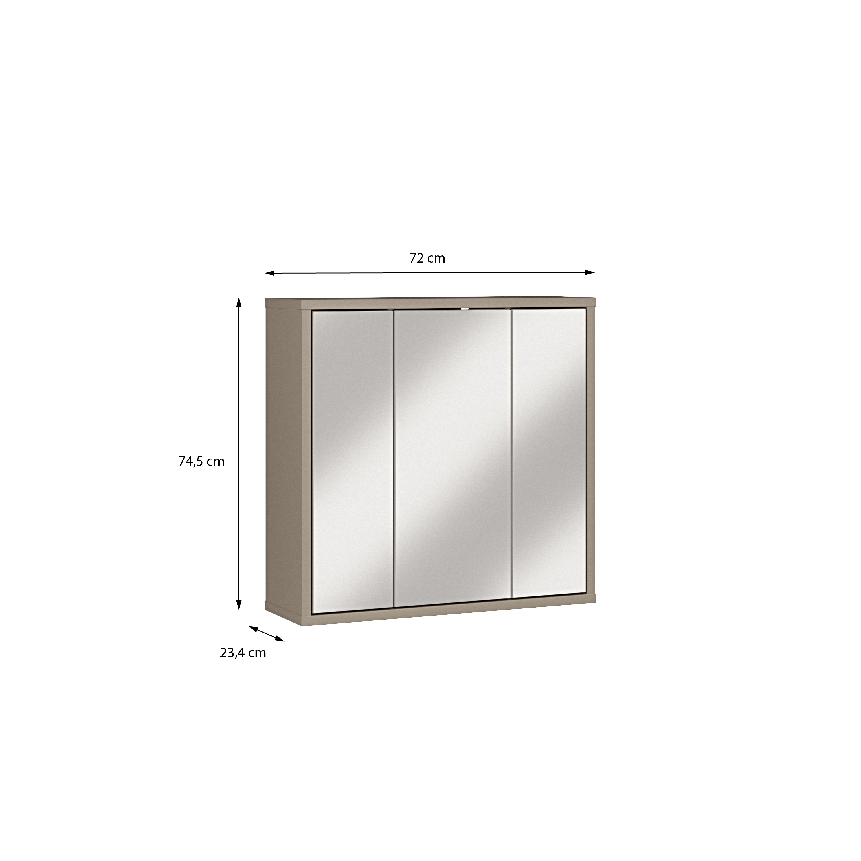 Cette armoire de toilette avec corps taupe (U88) combine un espace de rangement fonctionnel et un reflet clair pour une utilisation quotidienne dans la salle de bains. Derriere trois portes miroir, cinq etageres offrent suffisamment d'espace pour ranger les produits de soin, les cosmetiques et les articles d'hygiene. La facade miroir confere une profondeur optique a la piece et garantit un aspect general ordonne. Le design sobre s'harmonise facilement avec les meubles de salle de bains existants. L'armoire est ideale pour les clients soucieux de leur budget qui accordent de l'importance a la fonctionnalite et a l'ordre dans la salle de bains. Disponible des maintenant en ligne ou dans votre magasin MEGA Möbel, avec un rapport qualite-prix fiable.
