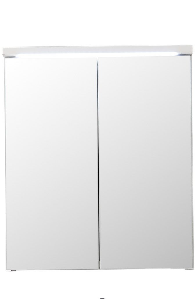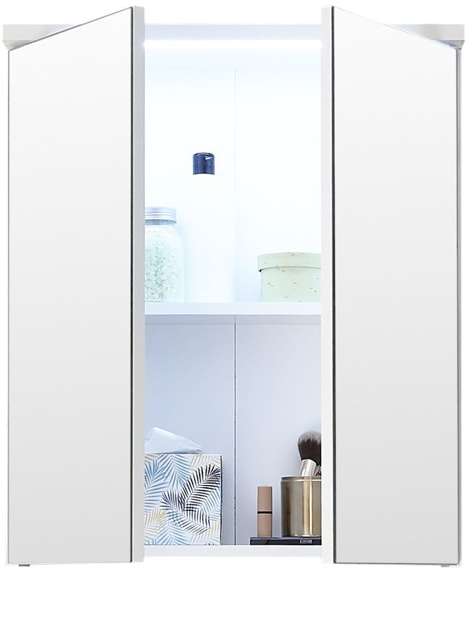 2 portes miroir avec, derrière chacune d'elles, 1 tablette