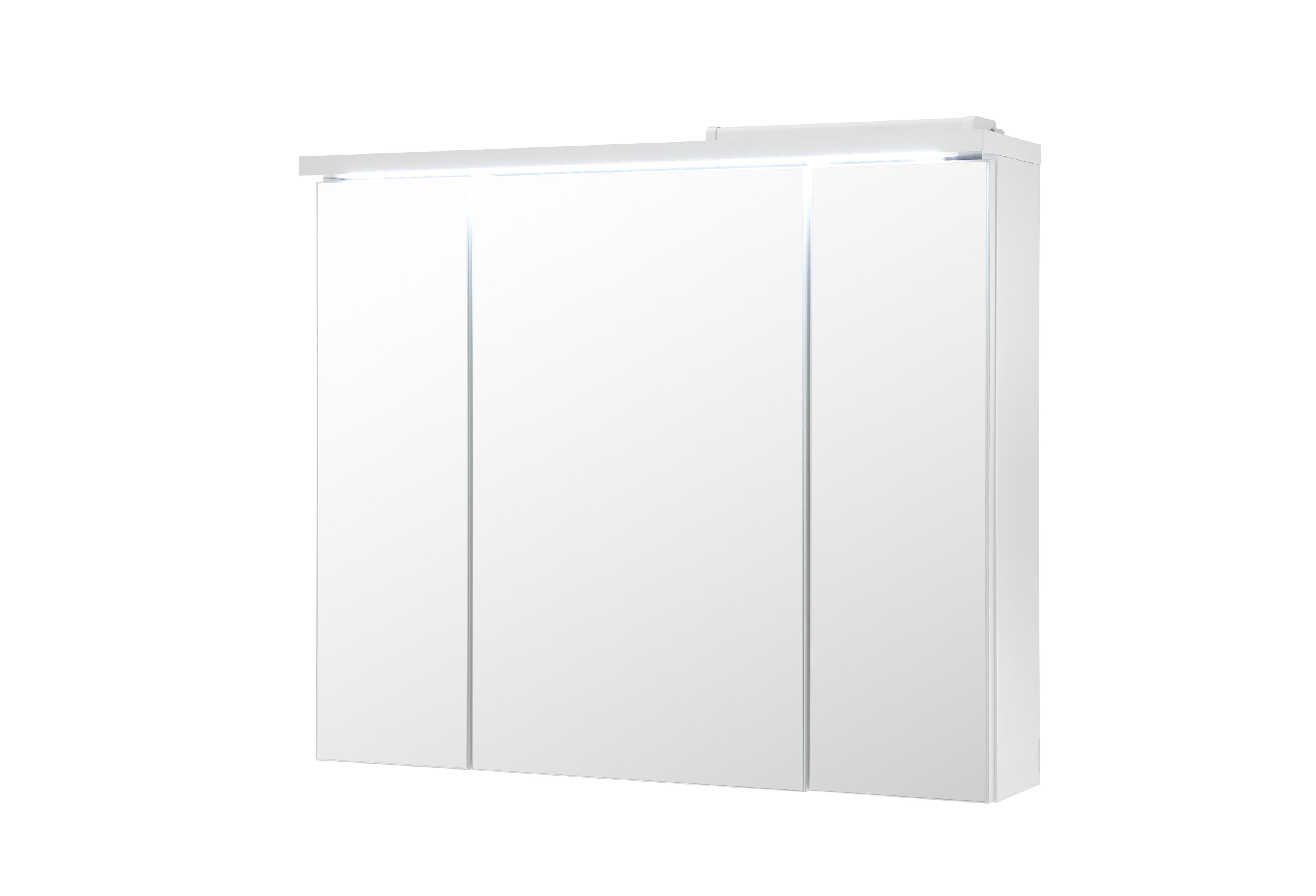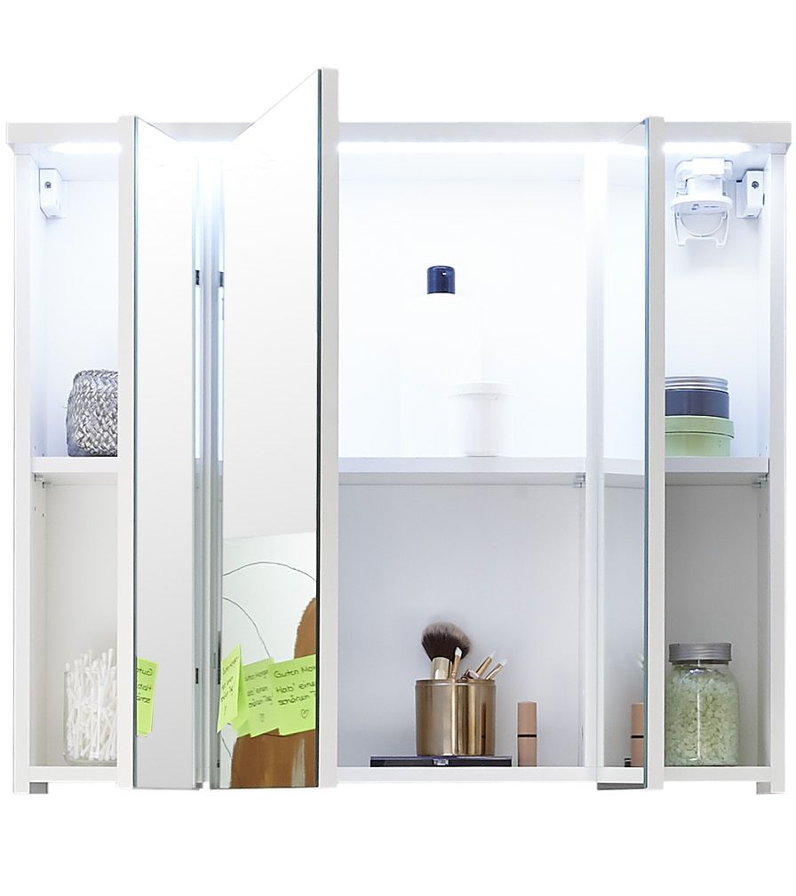 3 portes miroir avec, derrière chacune d'elles, 1 tablette