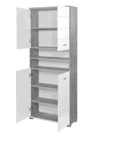 L'armoire haute « Pool » est un véritable atout pour l'organisation de votre salle de bains. Avec sa charnière à montage flexible et ses étagères réglables, elle s'adapte parfaitement à vos besoins et vous offre un espace de rangement bien structuré.