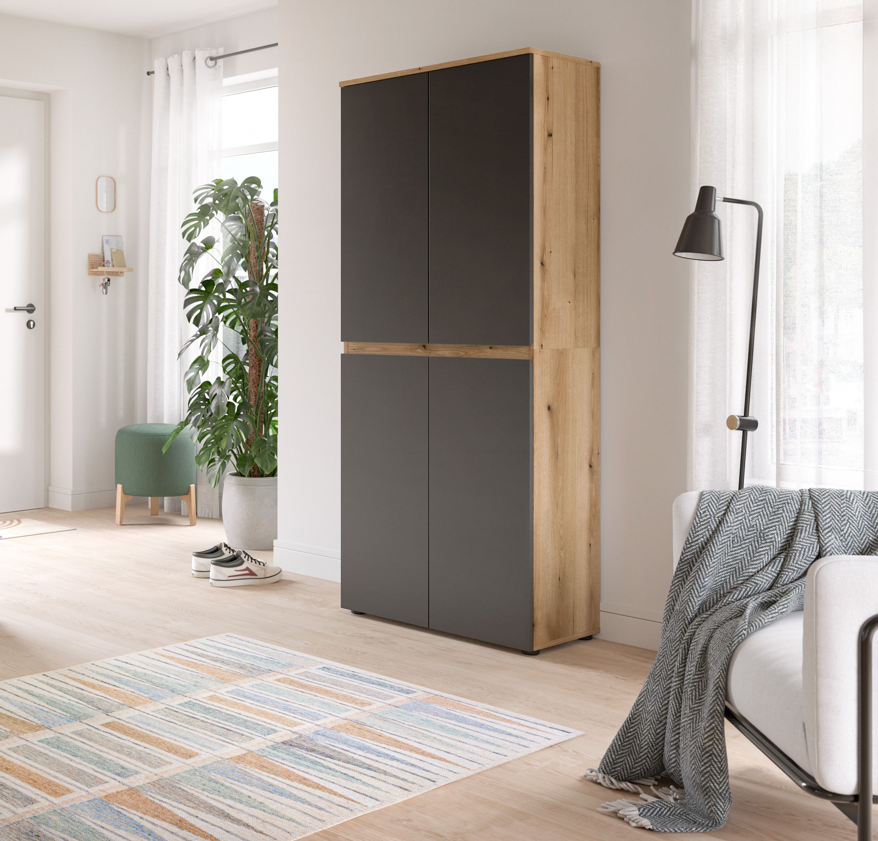 Cette armoire multifonction pratique dans un décor chêne Evoke et ton anthracite combine intelligemment rangement et organisation (dimensions : 70 x 175 x 37 cm). Grâce à sa barre de penderie robuste, les vestes, les manteaux et les chemises y trouveront facilement leur place, tandis que 7 tablettes amovibles réglables en hauteur assurent une flexibilité maximale en matière de répartition intérieure. Cette armoire s’adaptera aisément à vos besoins pour ranger chaussures, textiles, classeurs ou accessoires ménagers. Avec son design intemporel, elle s’intègre harmonieusement dans n’importe quelle pièce, mais trouvera aussi sa place dans l’entrée ou à la cave. Vous cherchez un rangement peu encombrant ? Cette armoire est faite pour vous !
