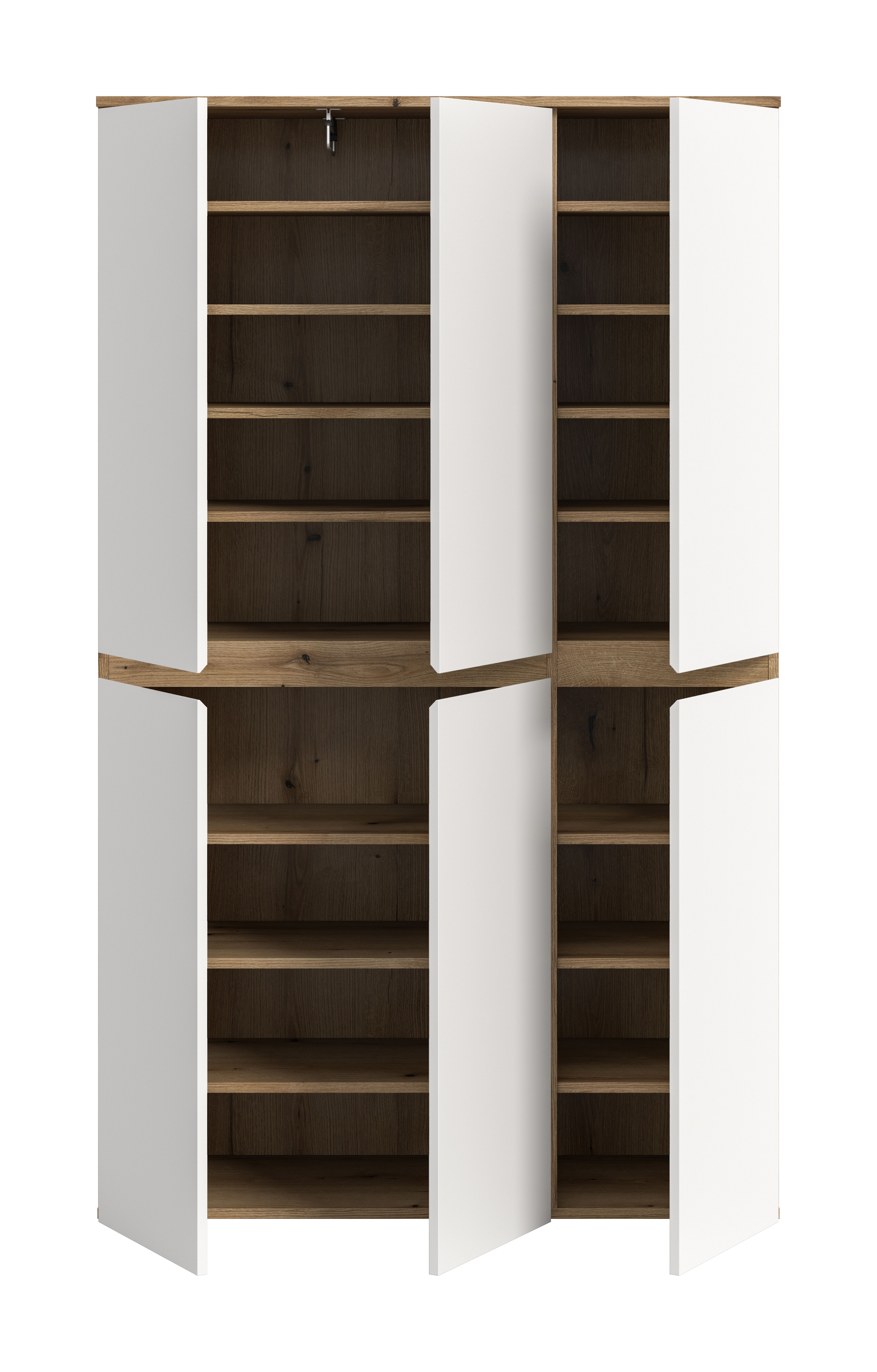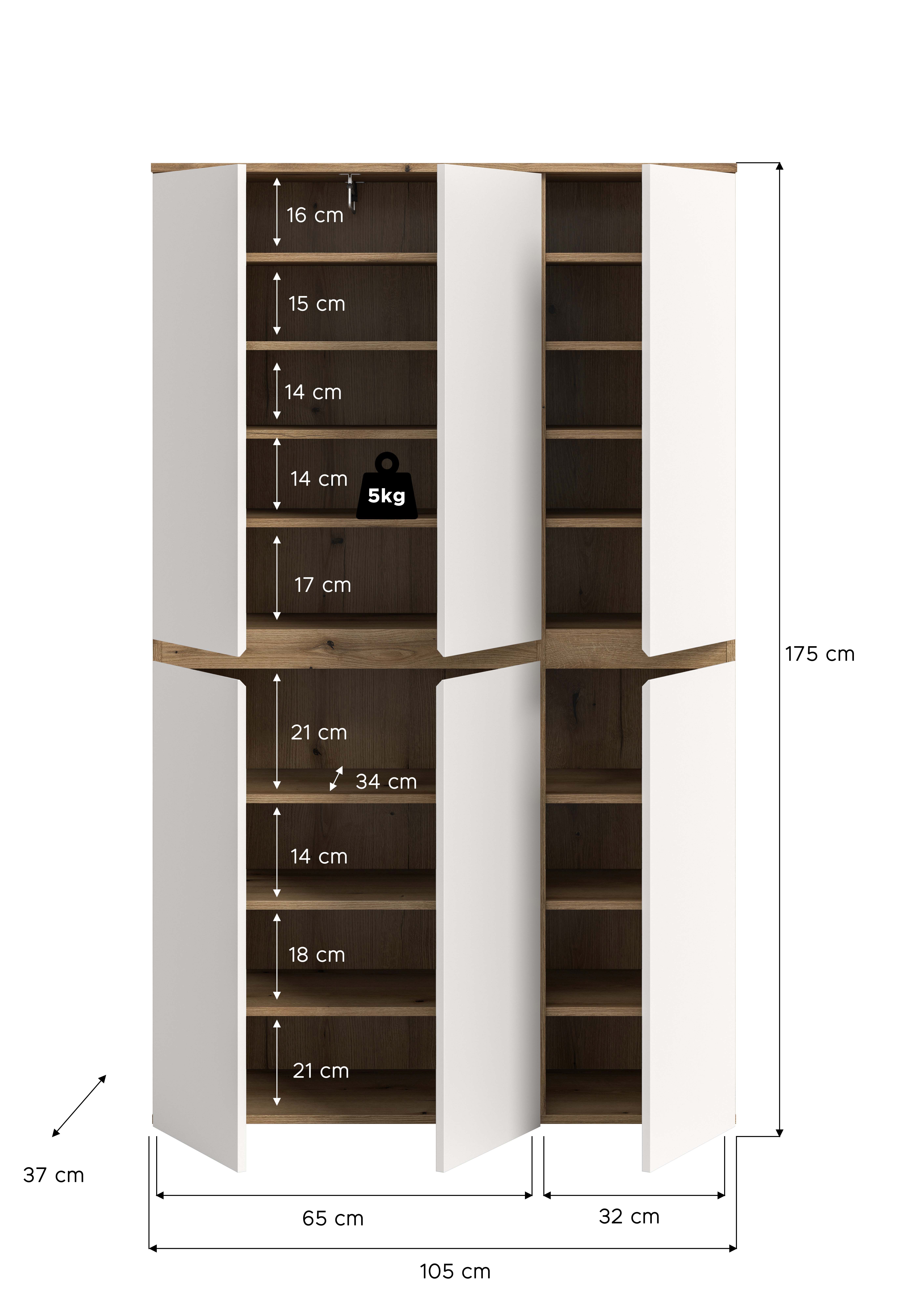 Cette armoire multifonction pratique dans un décor chêne Evoke et ton blanc combine intelligemment rangement et organisation (dimensions : 105 x 175 x 37 cm). Grâce à sa barre de penderie robuste, les vestes, les manteaux et les chemises y trouveront facilement leur place, tandis que 14 tablettes amovibles réglables en hauteur assurent une flexibilité maximale en matière de répartition intérieure. Cette armoire s’adaptera aisément à vos besoins pour ranger chaussures, textiles, classeurs ou accessoires ménagers. Avec son design intemporel, elle s’intègre harmonieusement dans n’importe quelle pièce, mais trouvera aussi sa place dans l’entrée ou à la cave. Vous cherchez un rangement peu encombrant ? Cette armoire est faite pour vous !