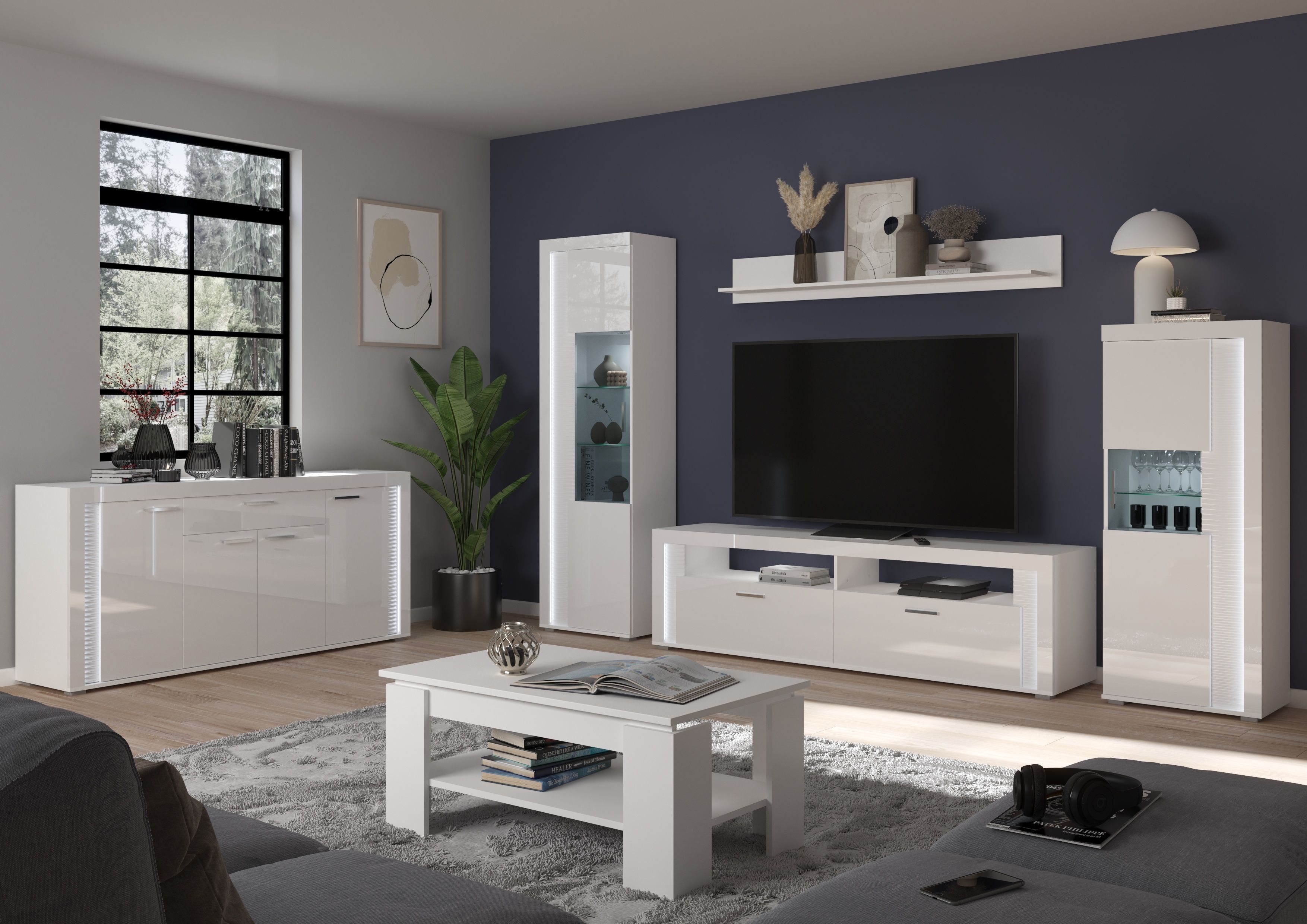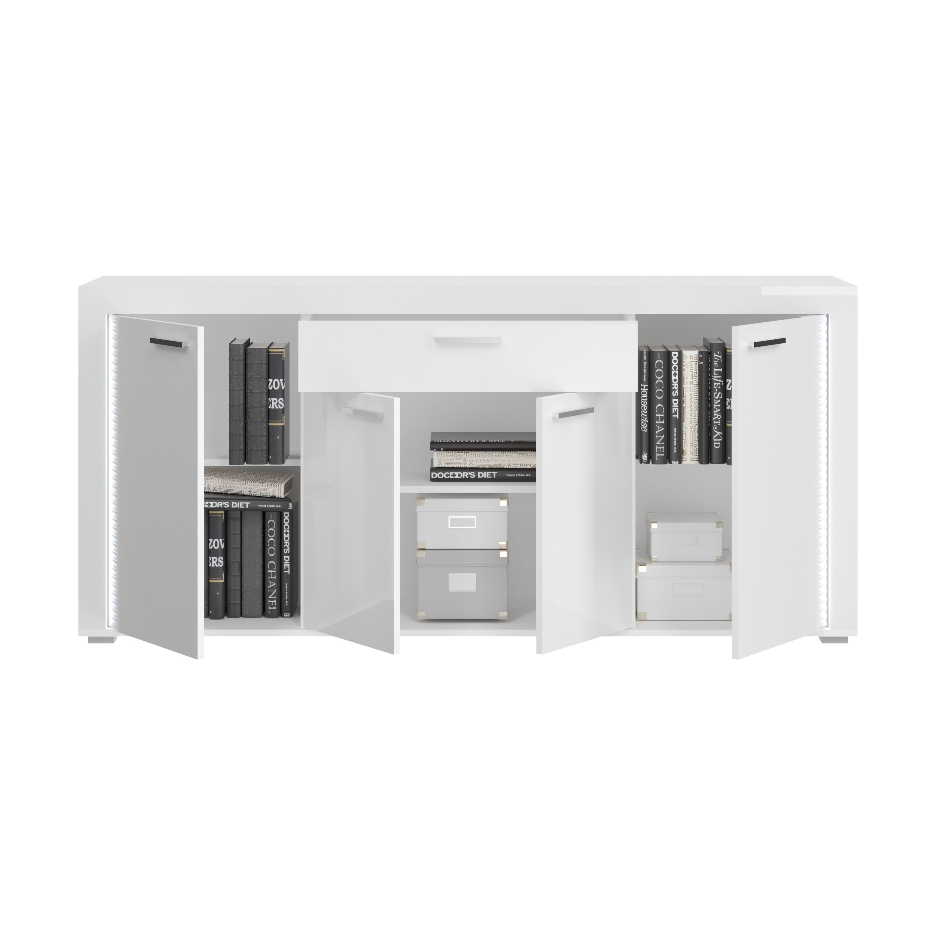• Design/style : le bahut décor blanc avec finition thermoformée ton blanc ultra brillant est proposé dans un design moderne et élégant qui, grâce à sa surface brillante et à ses lignes épurées, crée une esthétique contemporaine et attrayante dans le salon.