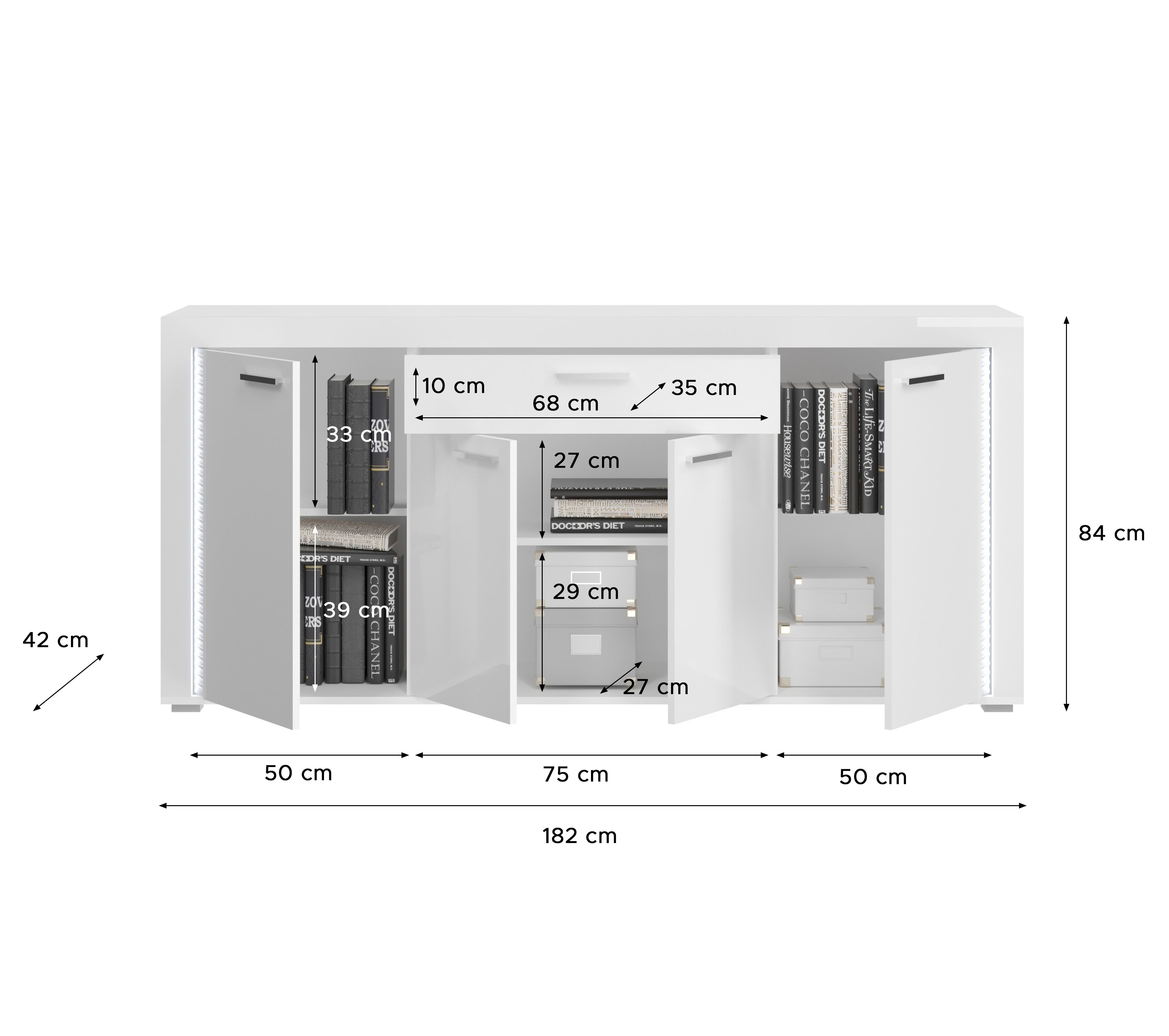 Avec ses dimensions généreuses (182x84x42 cm), il offre non seulement un vaste espace de rangement, mais constitue également un élément marquant dans chaque pièce. Découvrez dès maintenant l’alliance parfaite entre fonctionnalité et style pour votre décoration !