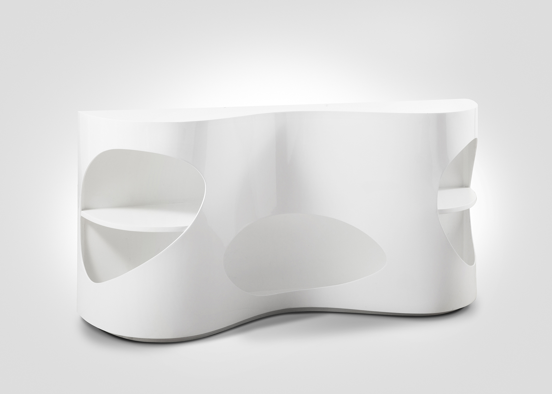 Le bahut de la série de mobilier Allant est proposé dans un design exceptionnel. La surface blanche contraste avec la surface mate à l'intérieur. Les ouvertures asymétriques dans une forme légèrement incurvée offrent de la place pour des livres, des objets de décoration et bien plus encore.
