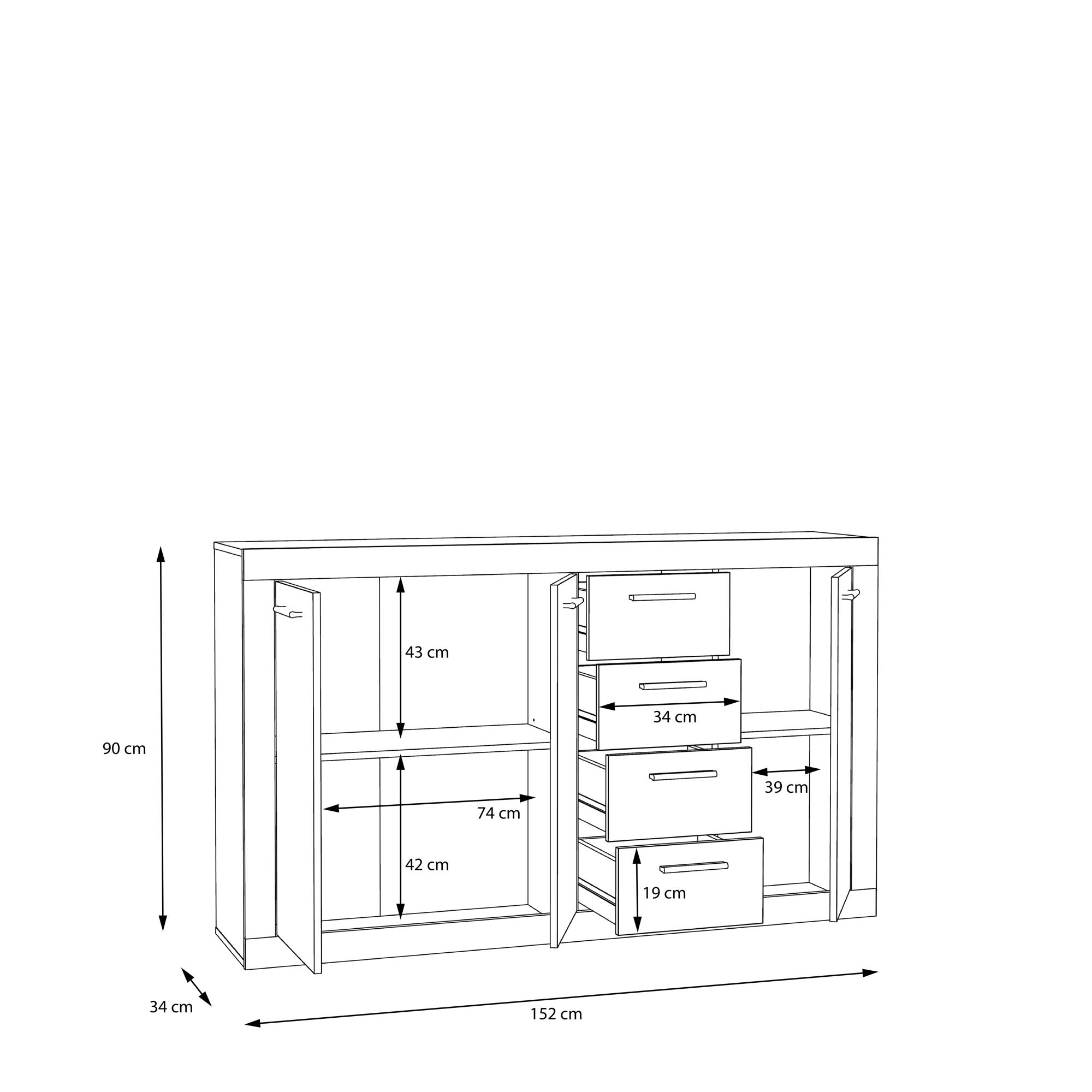 | Dimensions : | L/H/P env. 153/91,5/34 cm | ||