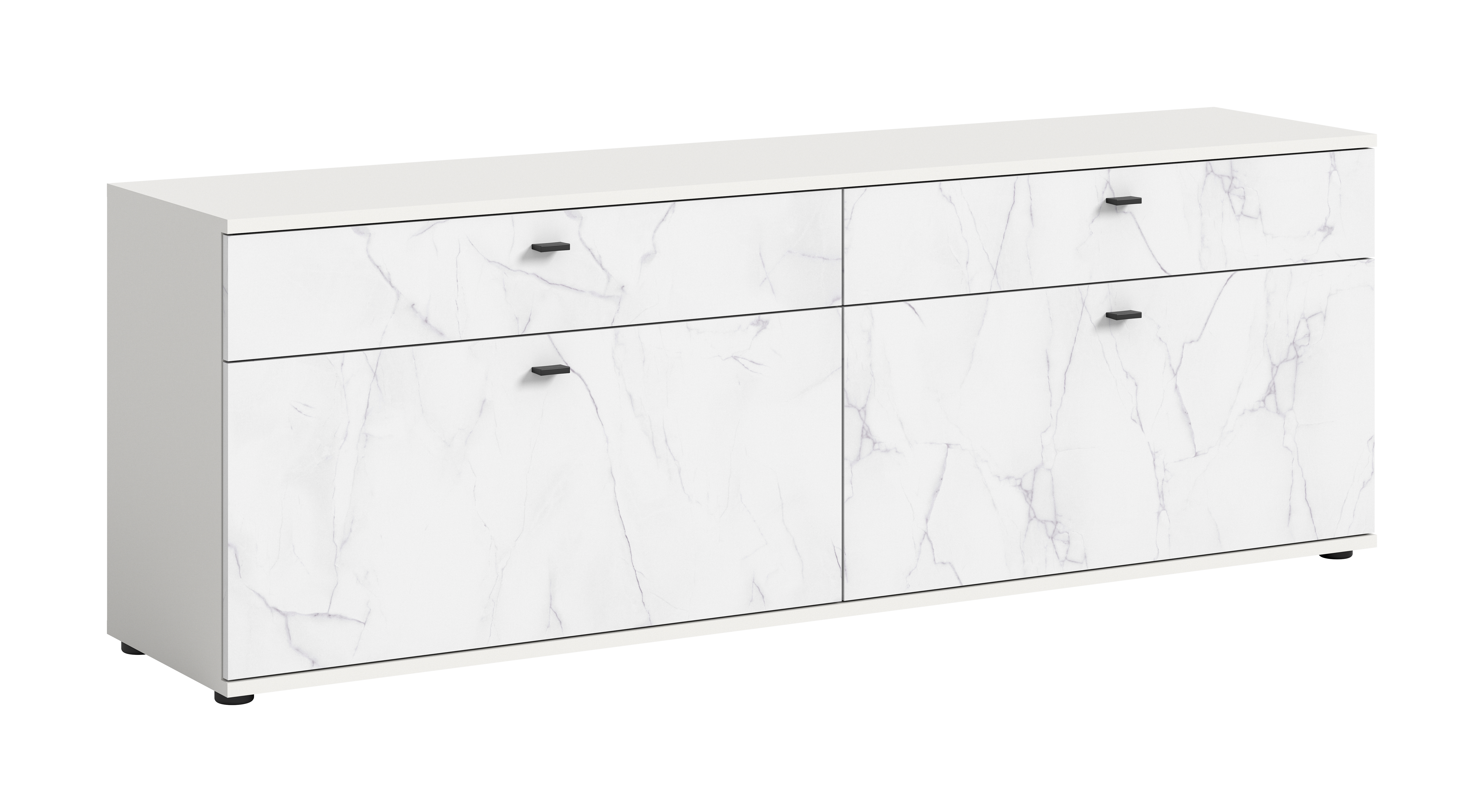 Découvrez cet élégant bahut bas en décor marbre blanc au format idéal pour votre intérieur !