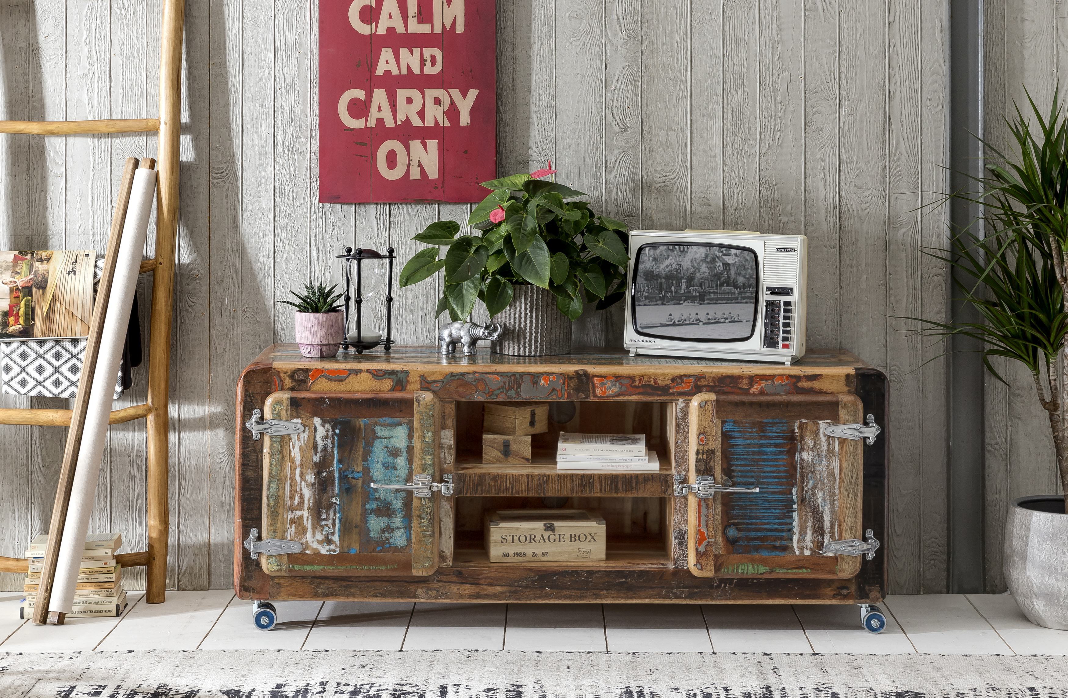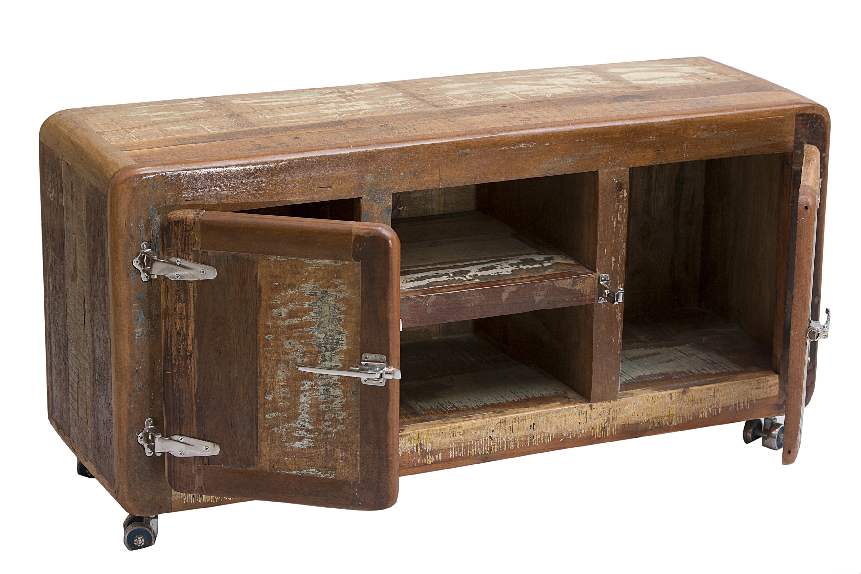 Vieux bois recyclé massif (Inde) laqué ton multicolore