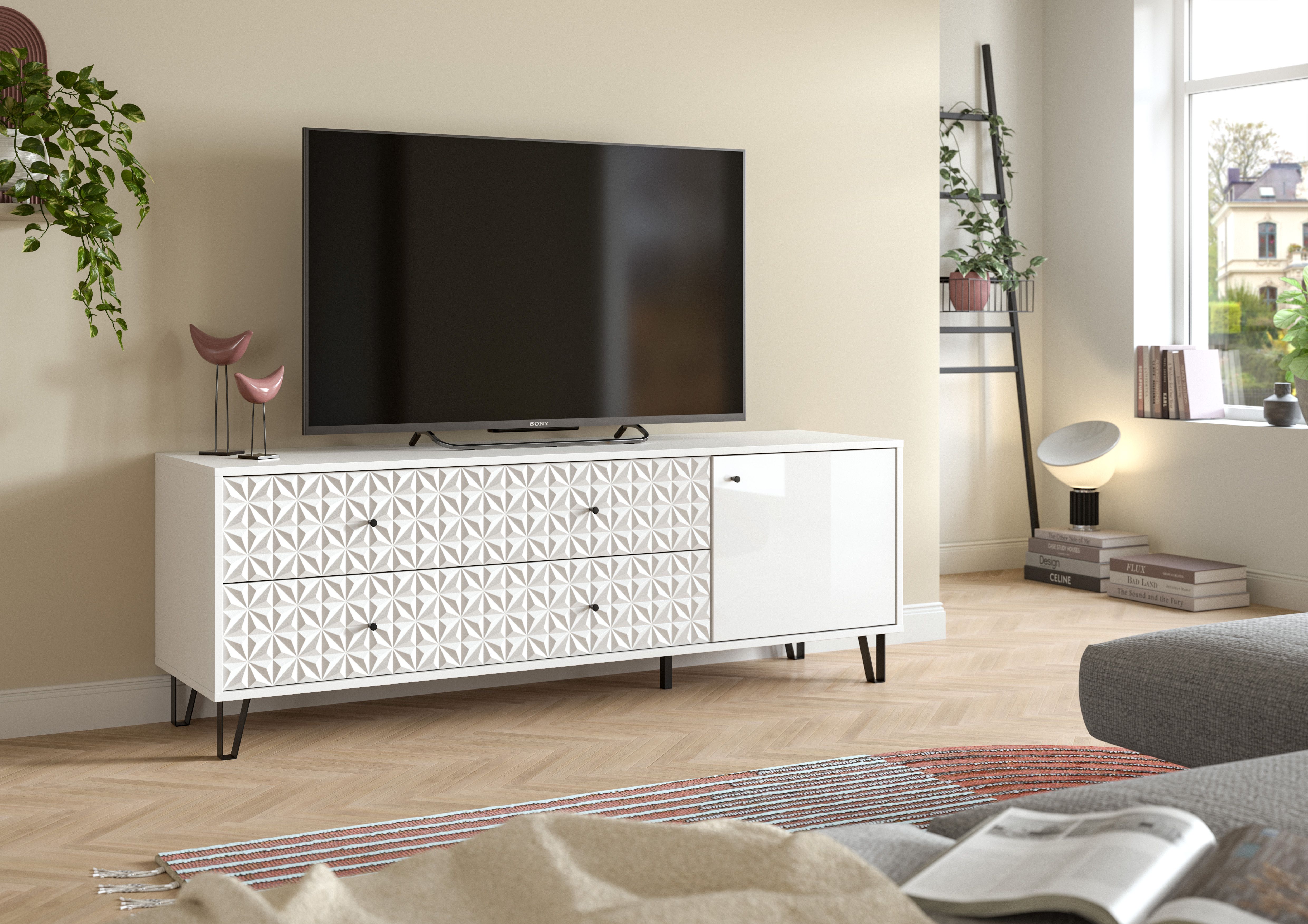 - Le banc TV attire les regards tout en offrant un grand espace pour poser et ranger les objets (panneau supérieur et tiroirs)